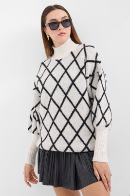 15889 Balıkçı Yaka Oversize Triko Kazak - Siyah