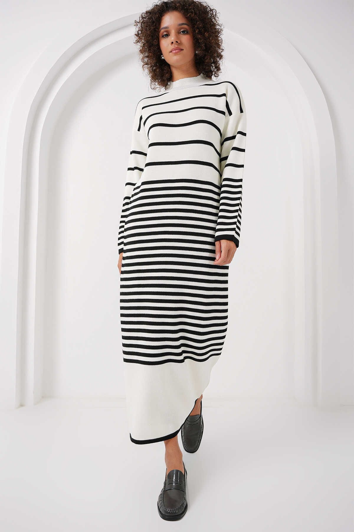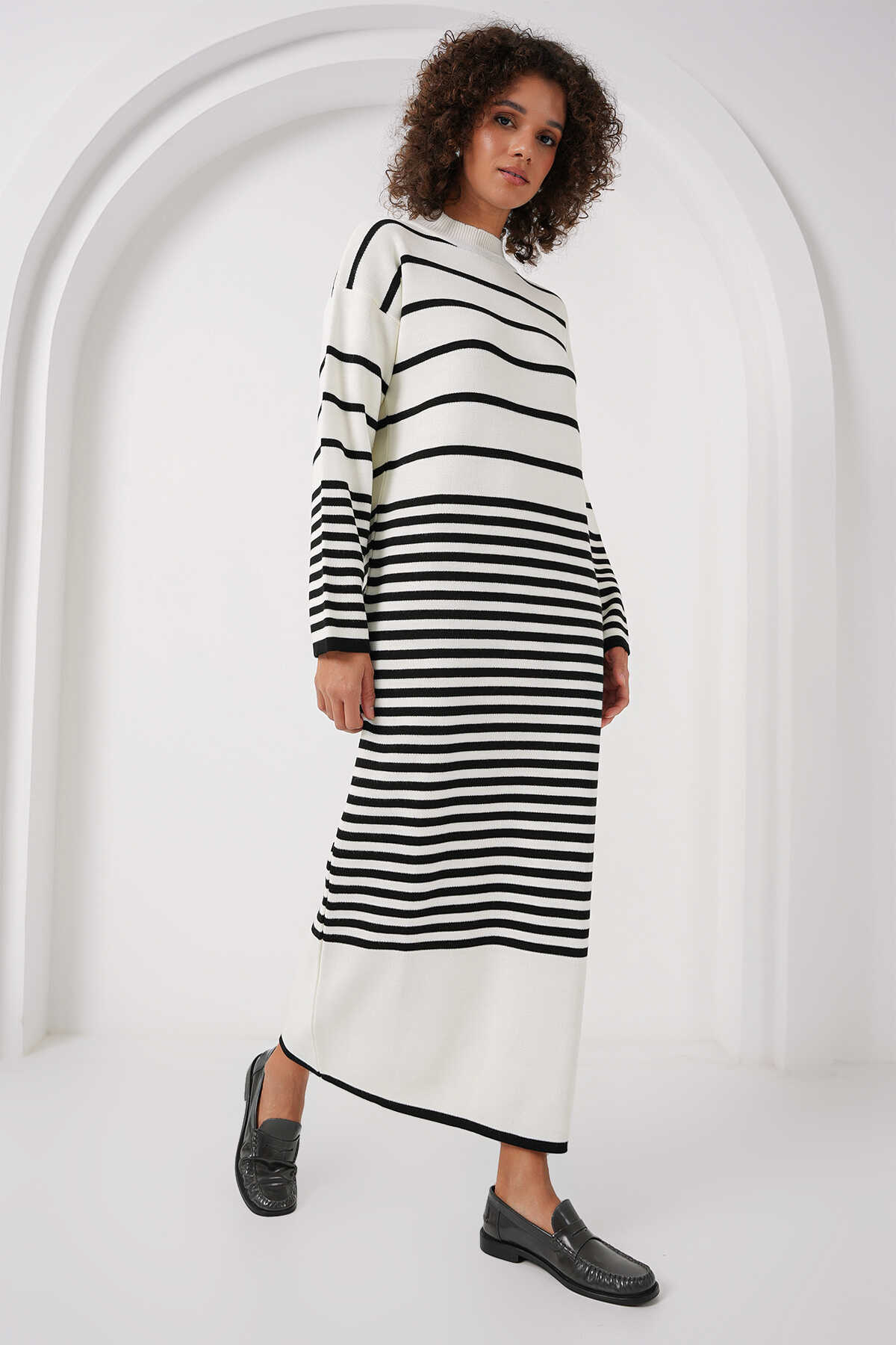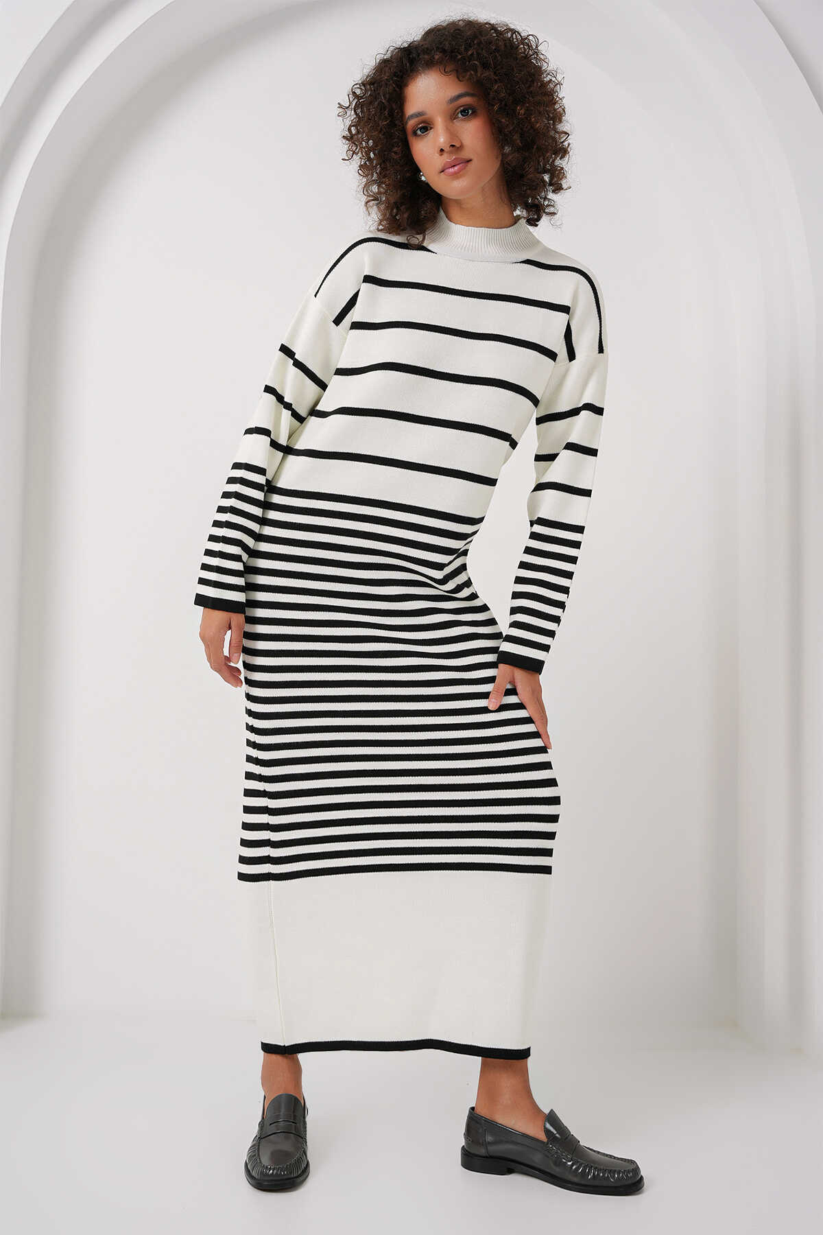 15890 Uzun Triko Elbise - B.Beyaz - Kombin