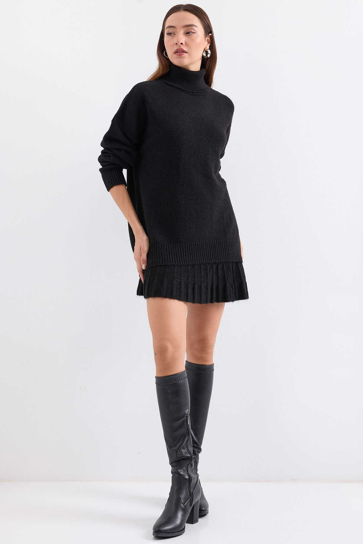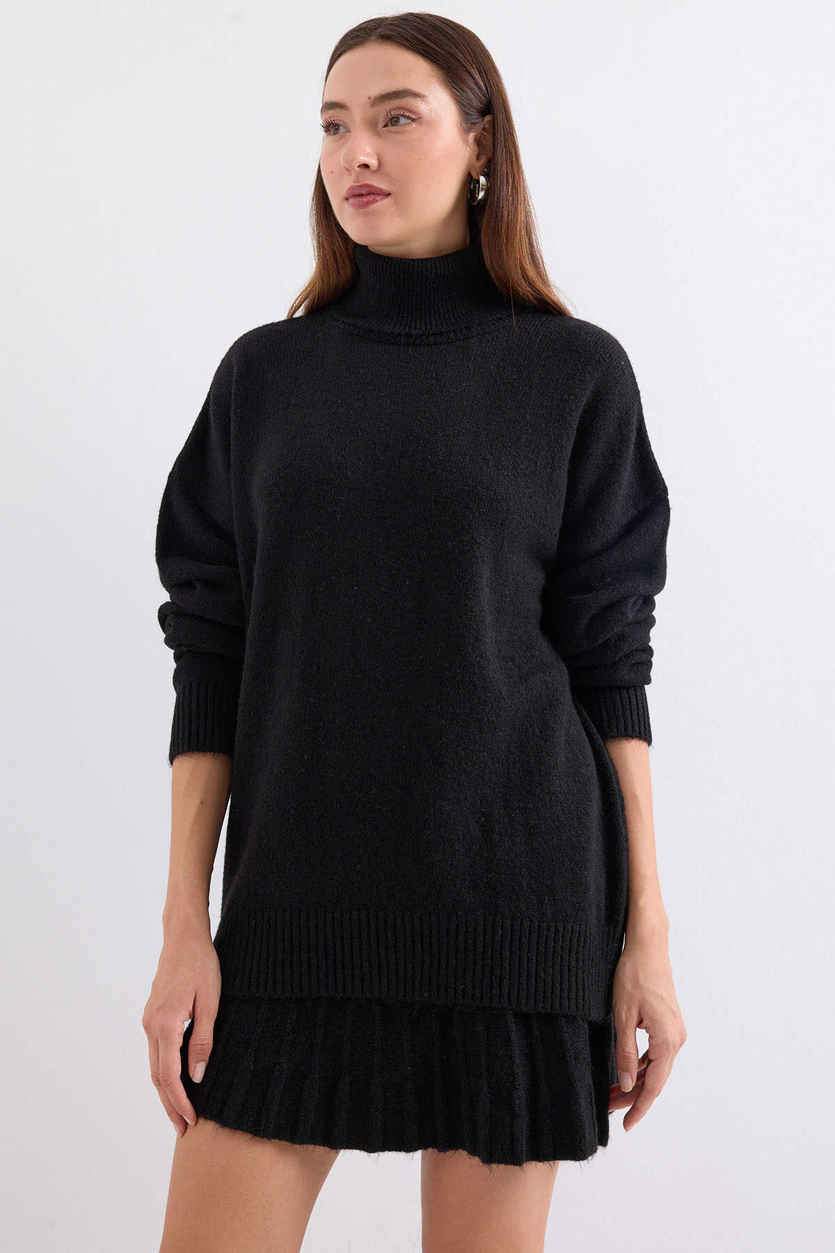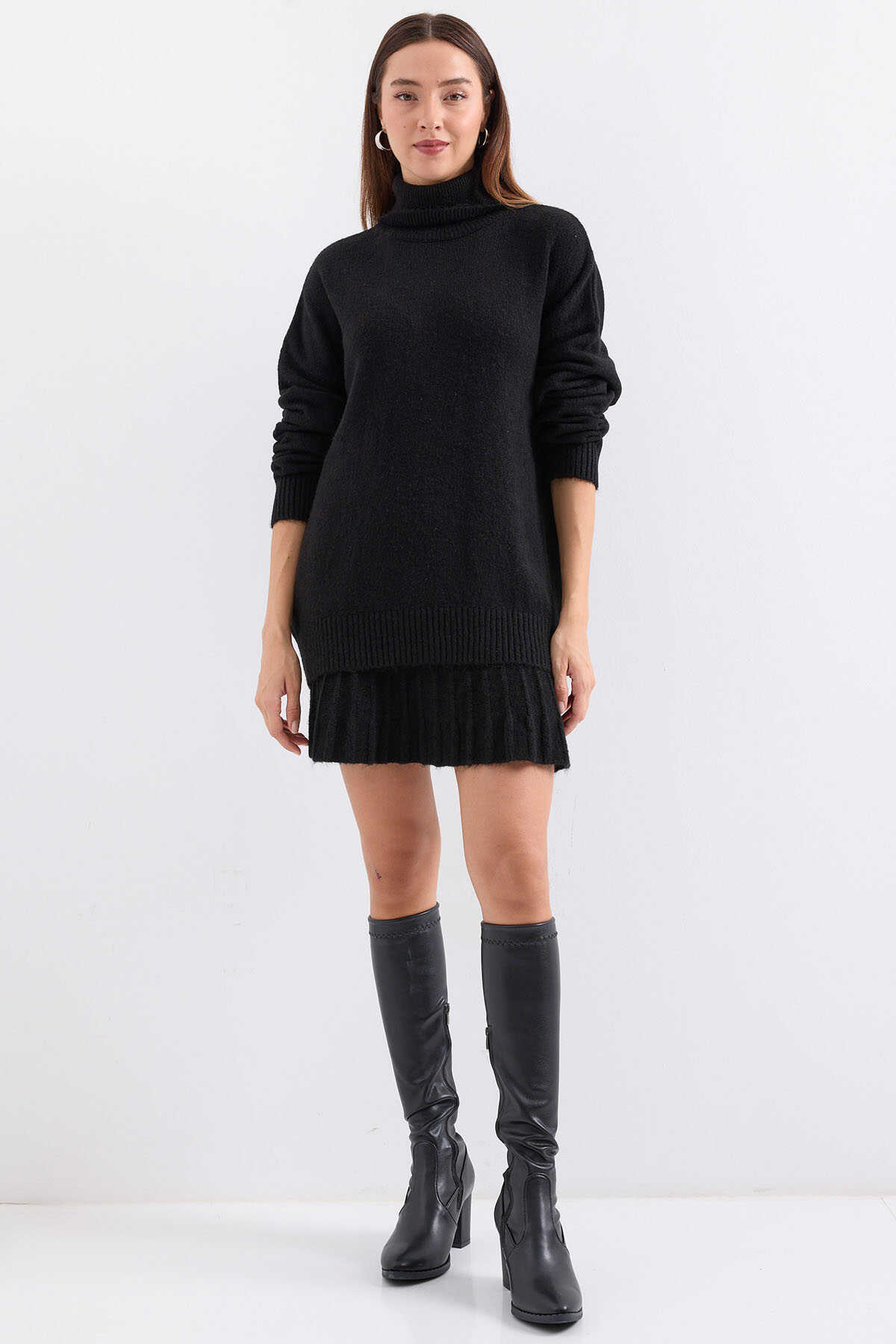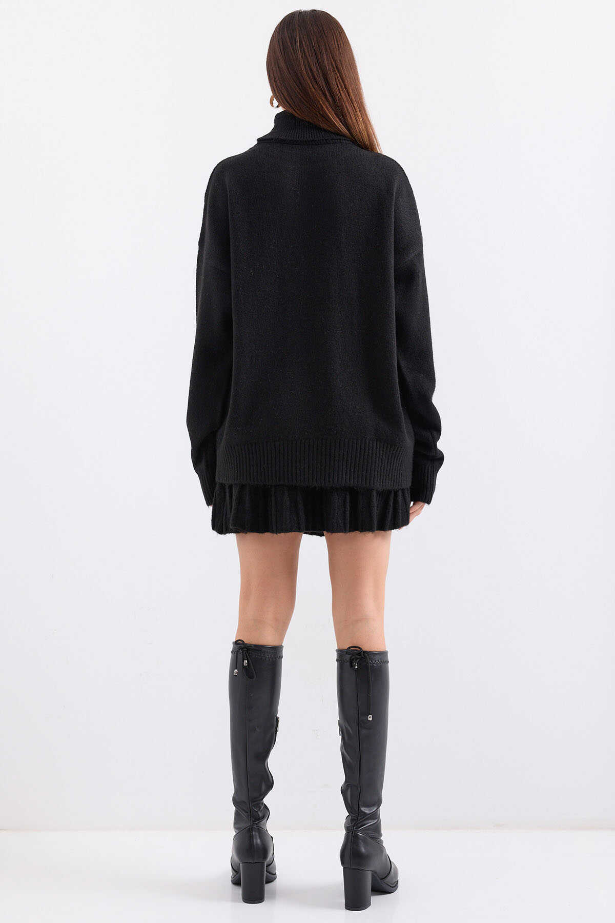 15891 Kazak Etek Triko İkili Takım - Siyah - Kombin