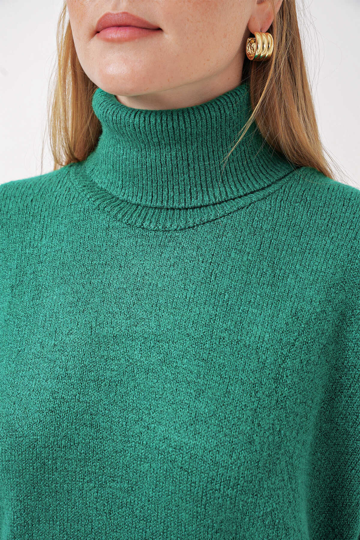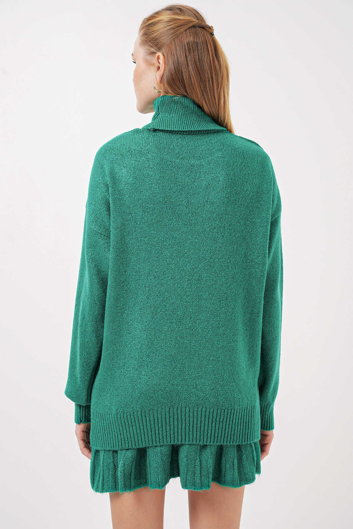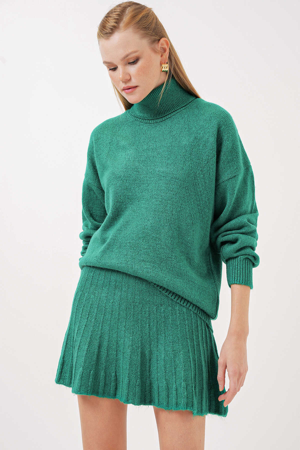 15891 Kazak Etek Triko İkili Takım - Zümrüt Yeşili - Kombin