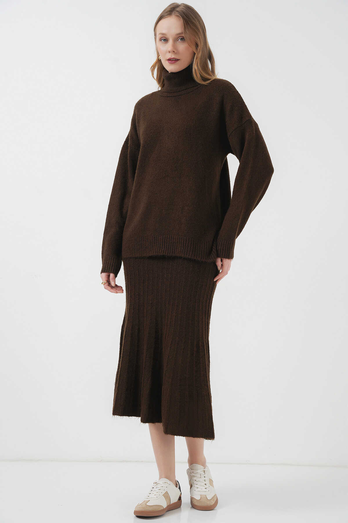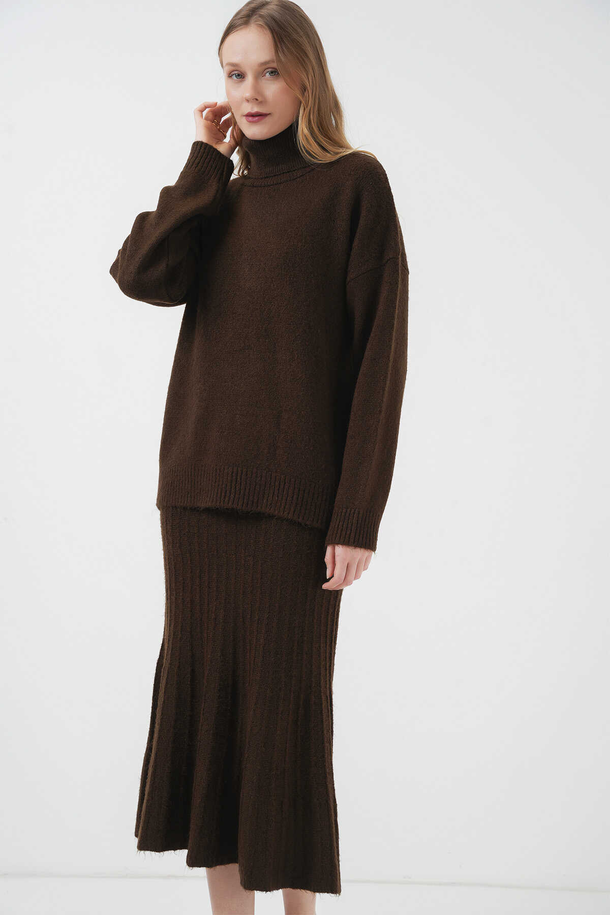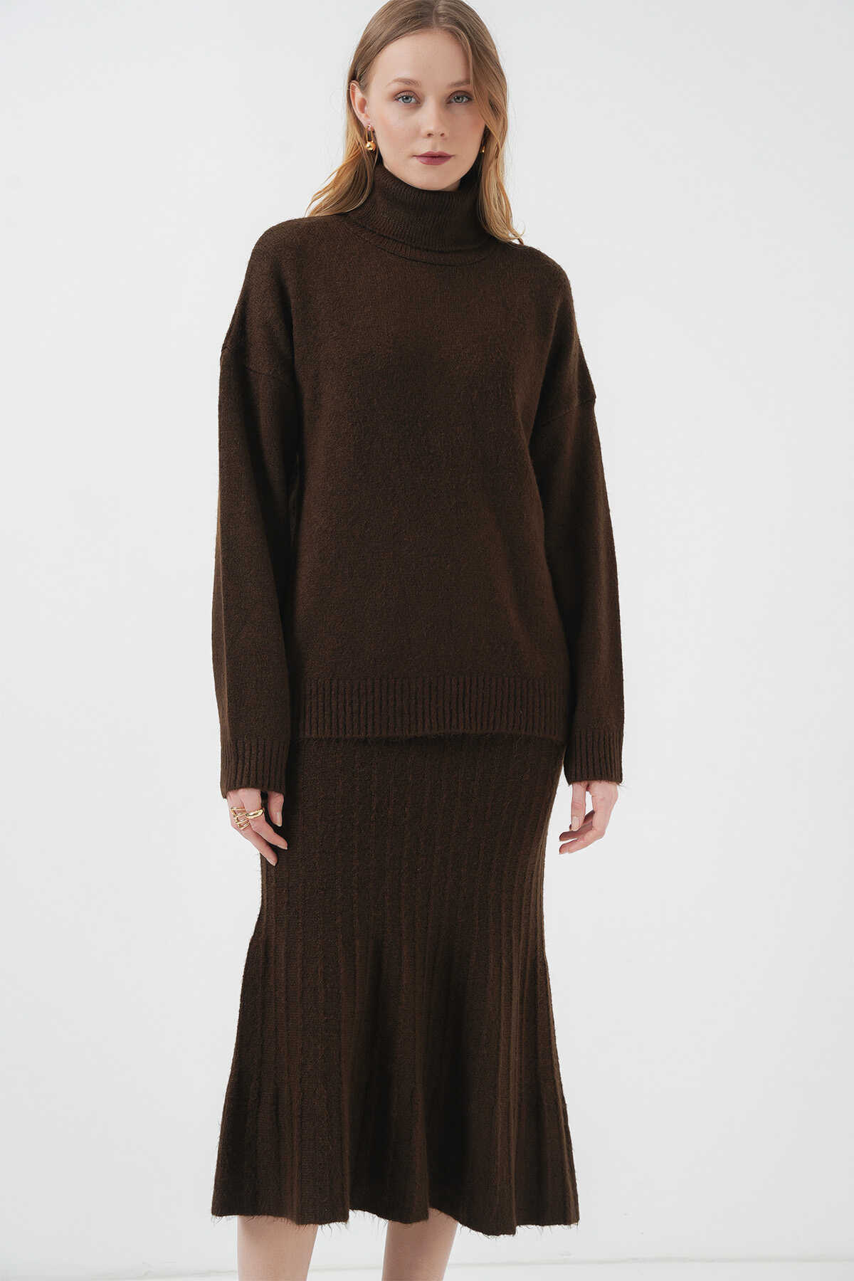 15892 Kazak Etek Triko İkili Takım - Kahverengi - Kombin