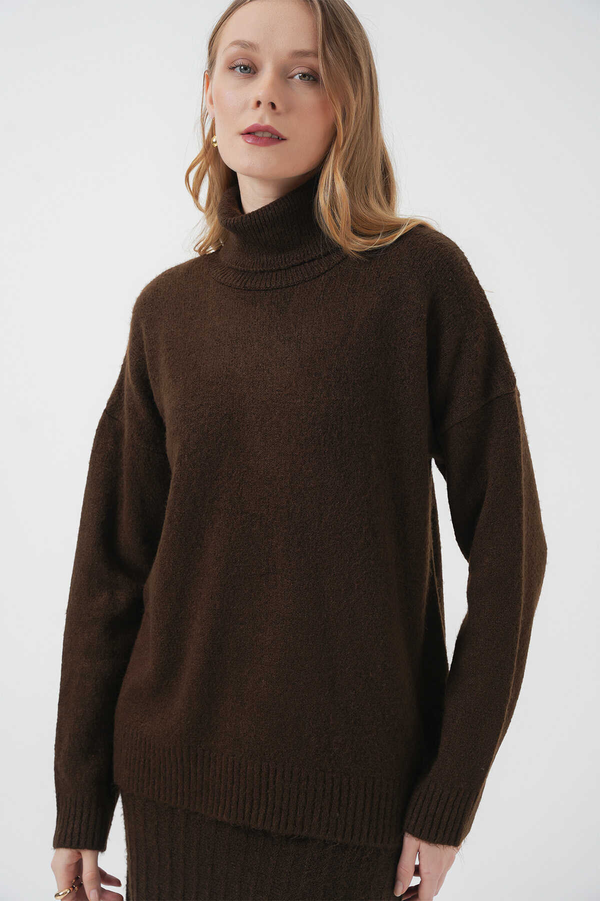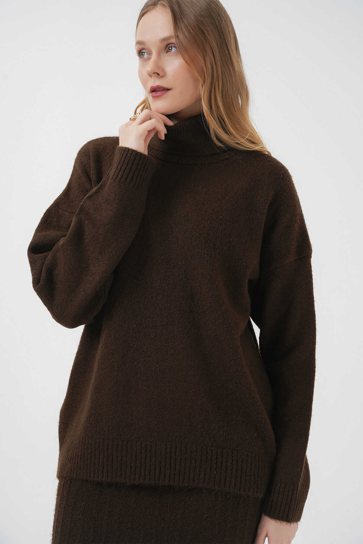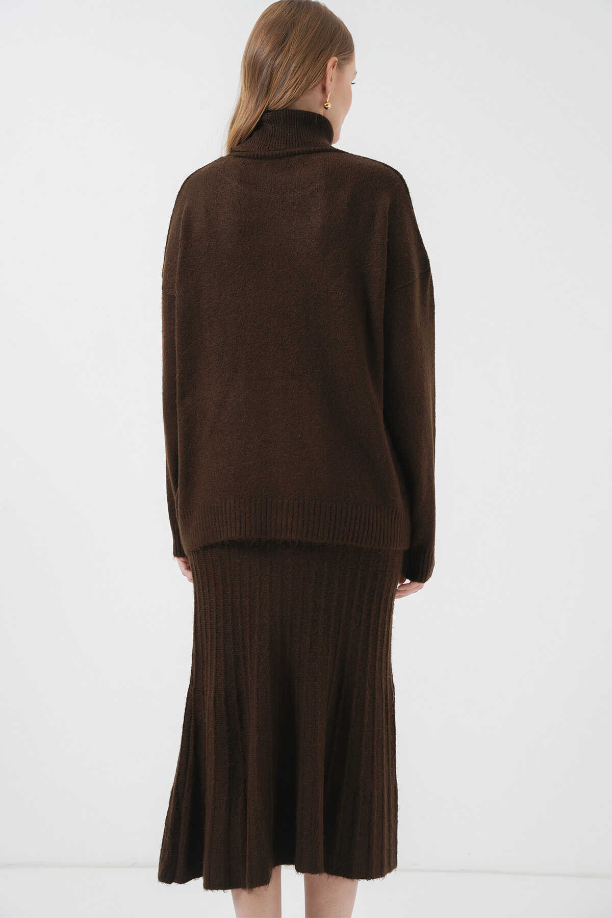 15892 Kazak Etek Triko İkili Takım - Kahverengi - Kombin