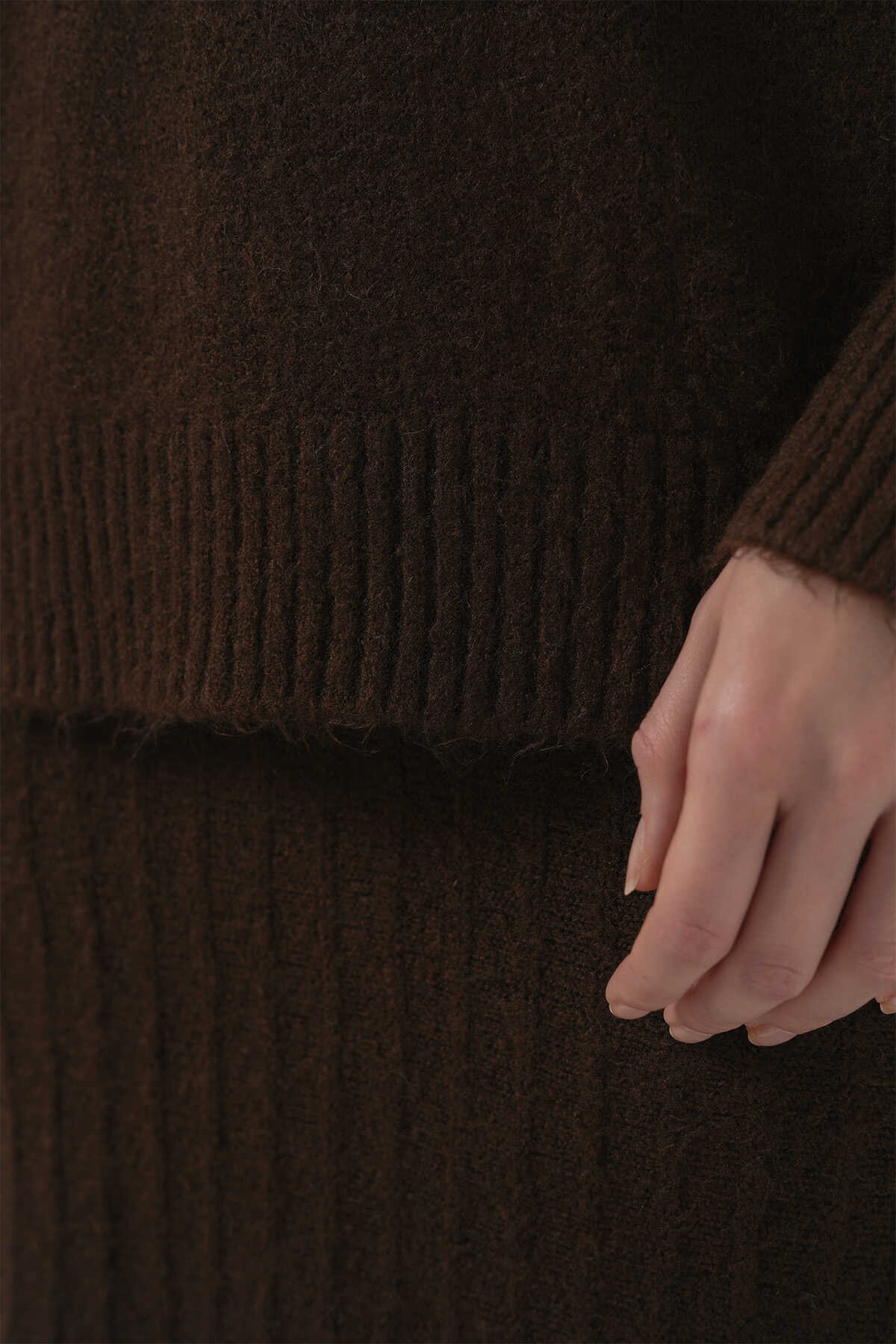 15892 Kazak Etek Triko İkili Takım - Kahverengi