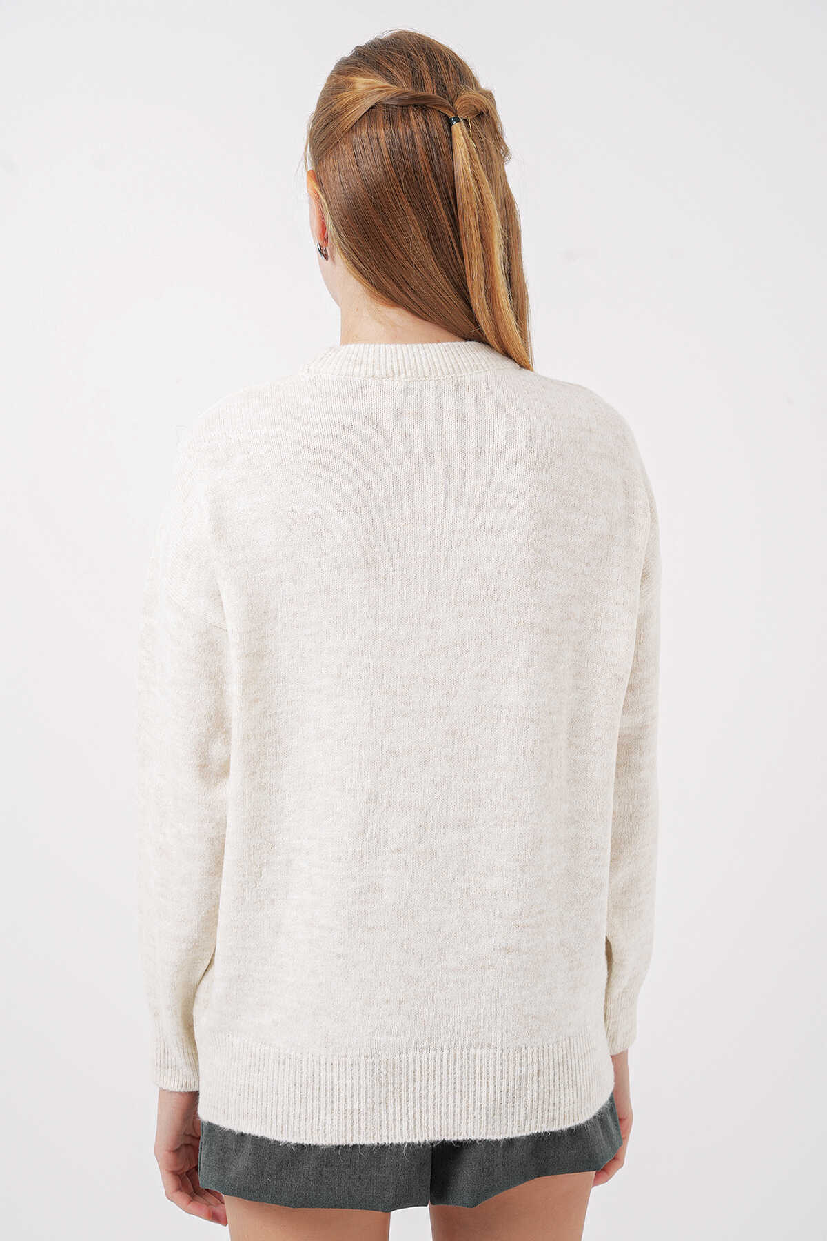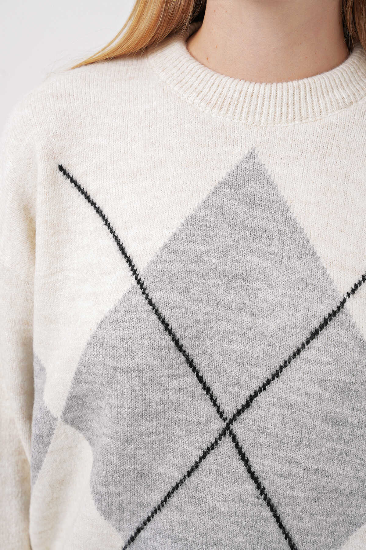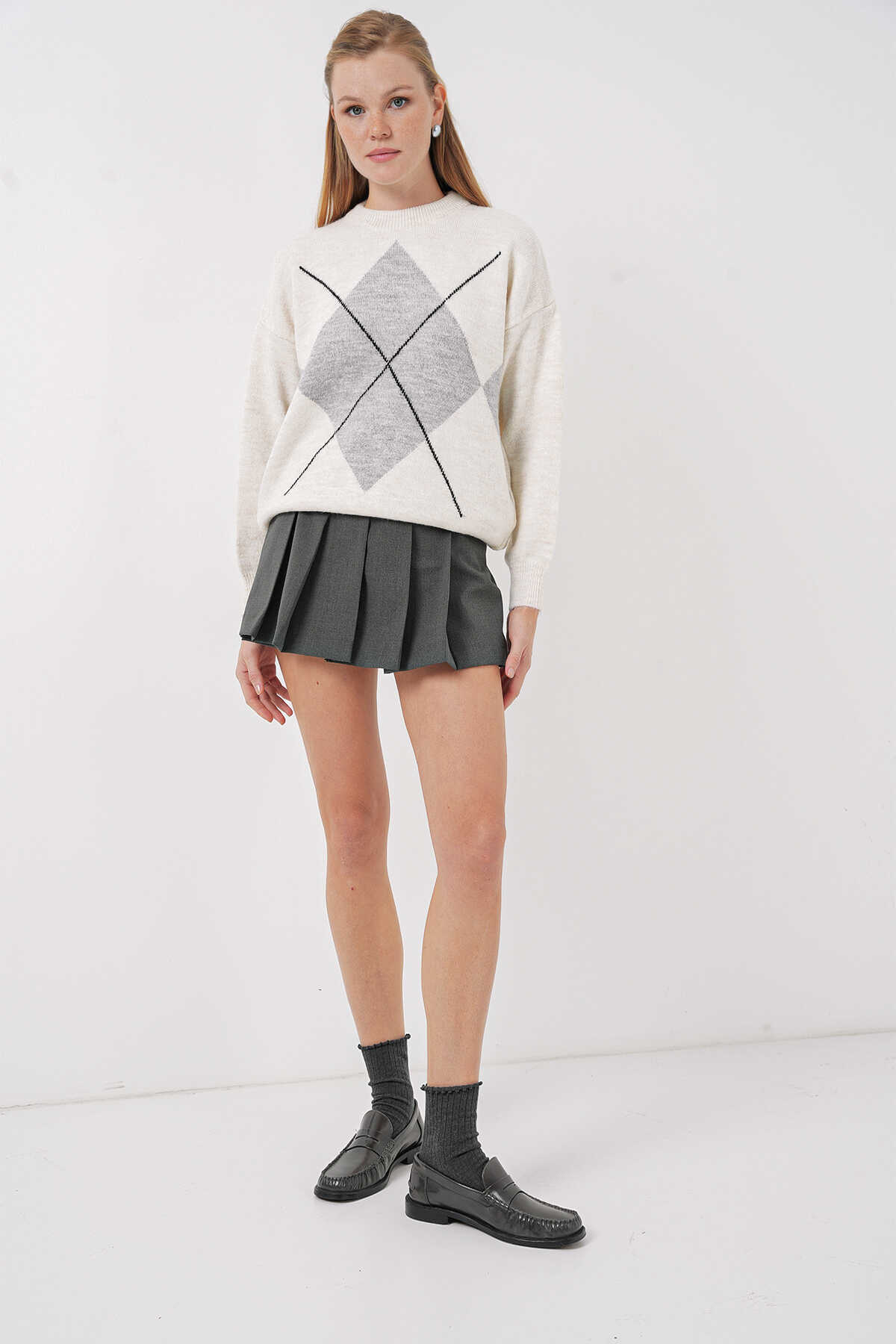 15895 Baklava Desenli Oversize Triko Kazak - A.Gri - Kombin