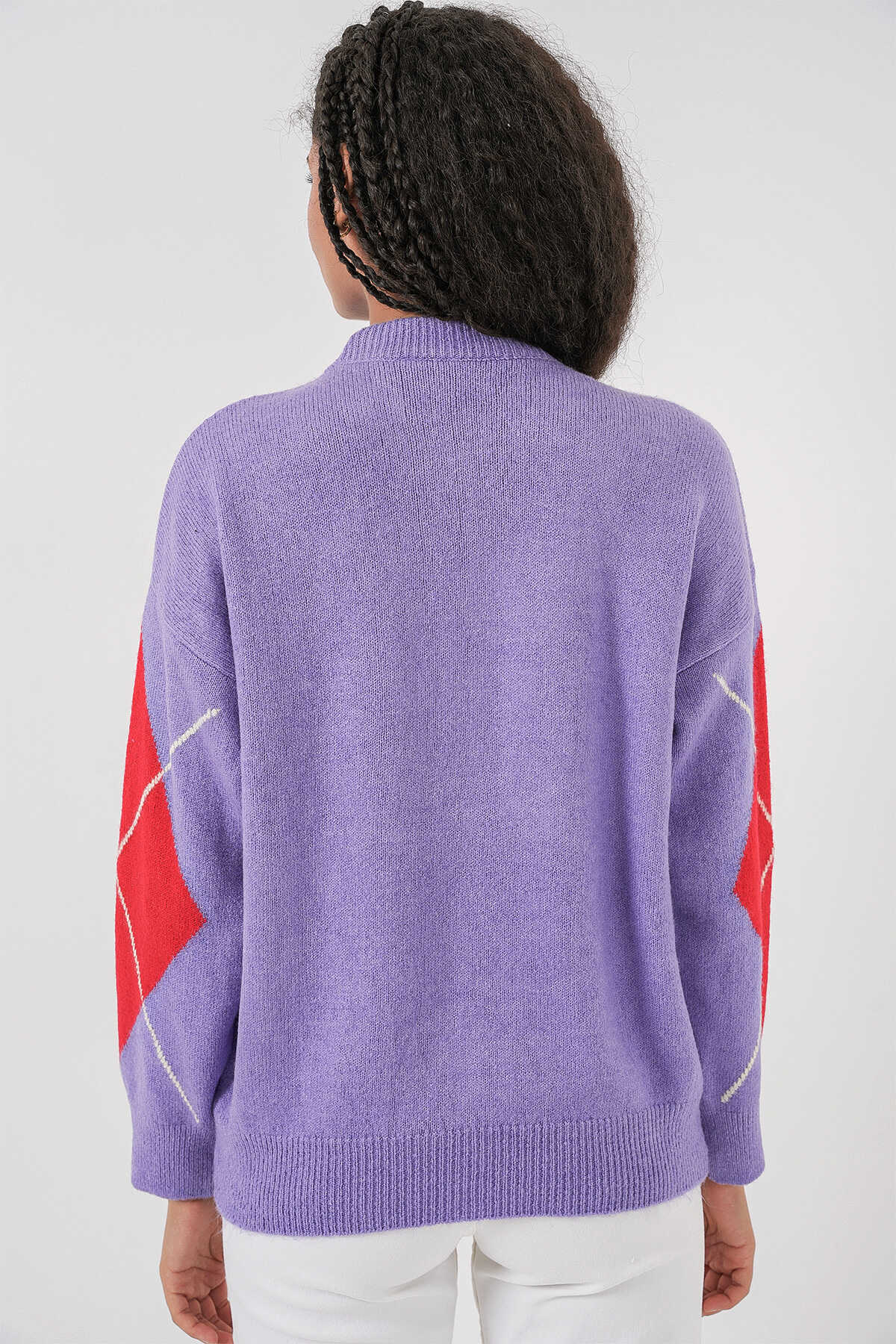 15895 Baklava Desenli Oversize Triko Kazak - B.Lila - Kombin