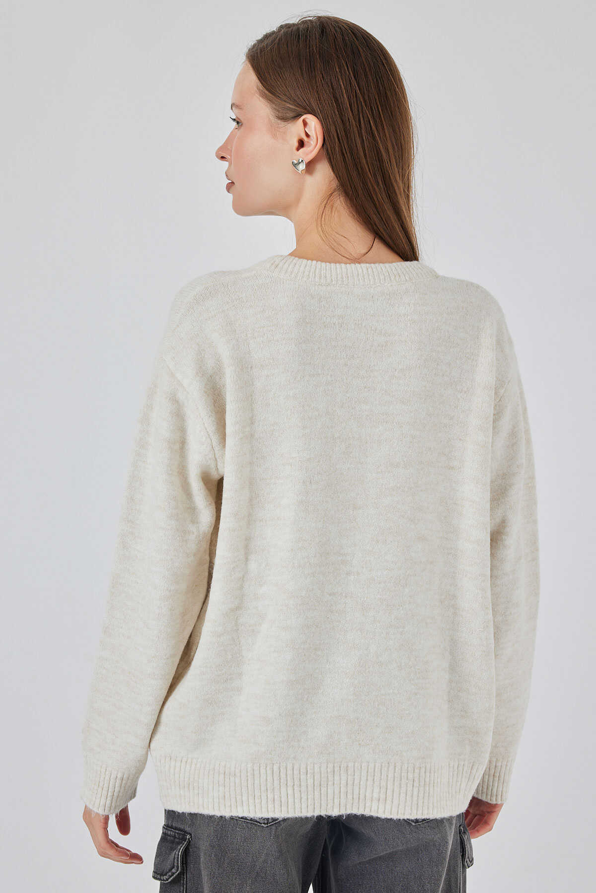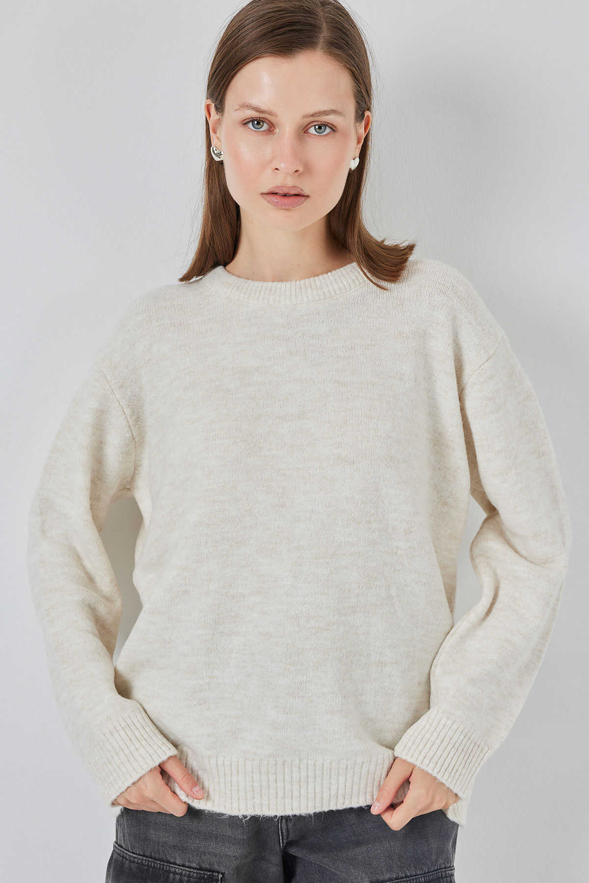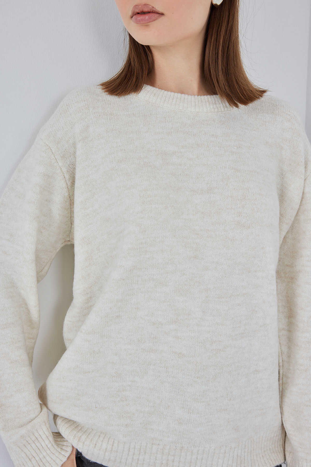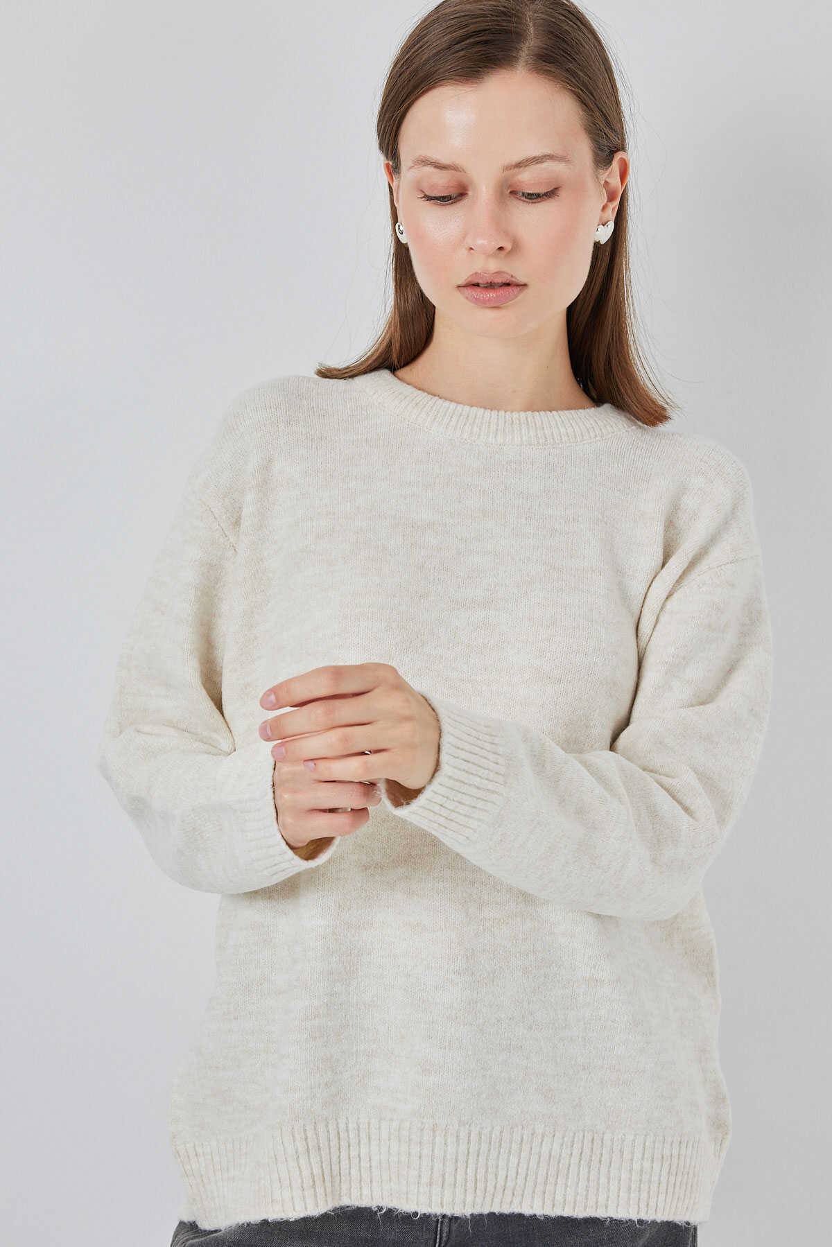 15895 Oversize Düz Krem Triko Kazak - Kombin