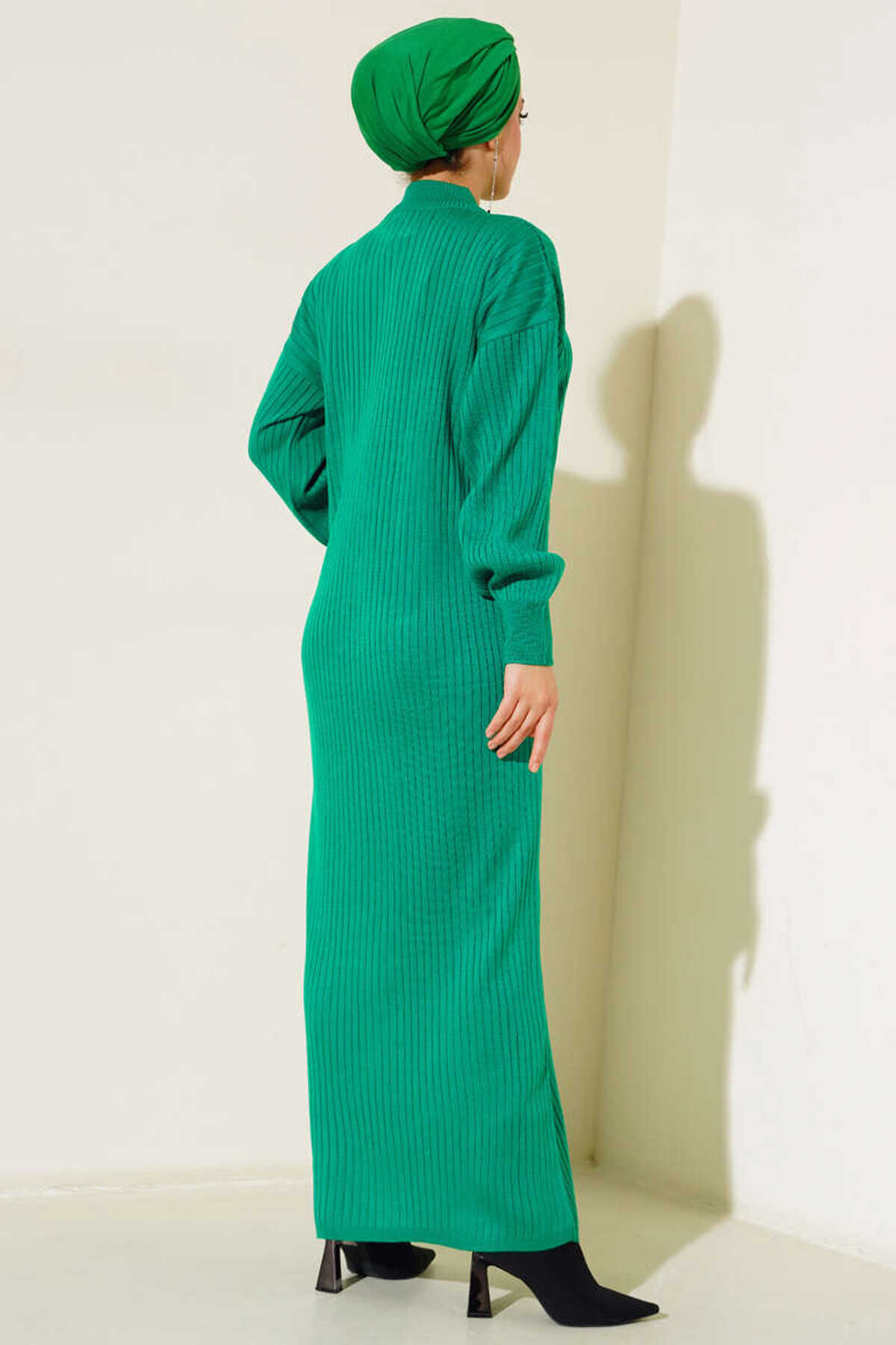15900 Boydan Tesettür Triko Elbise - Yeşil - Kombin