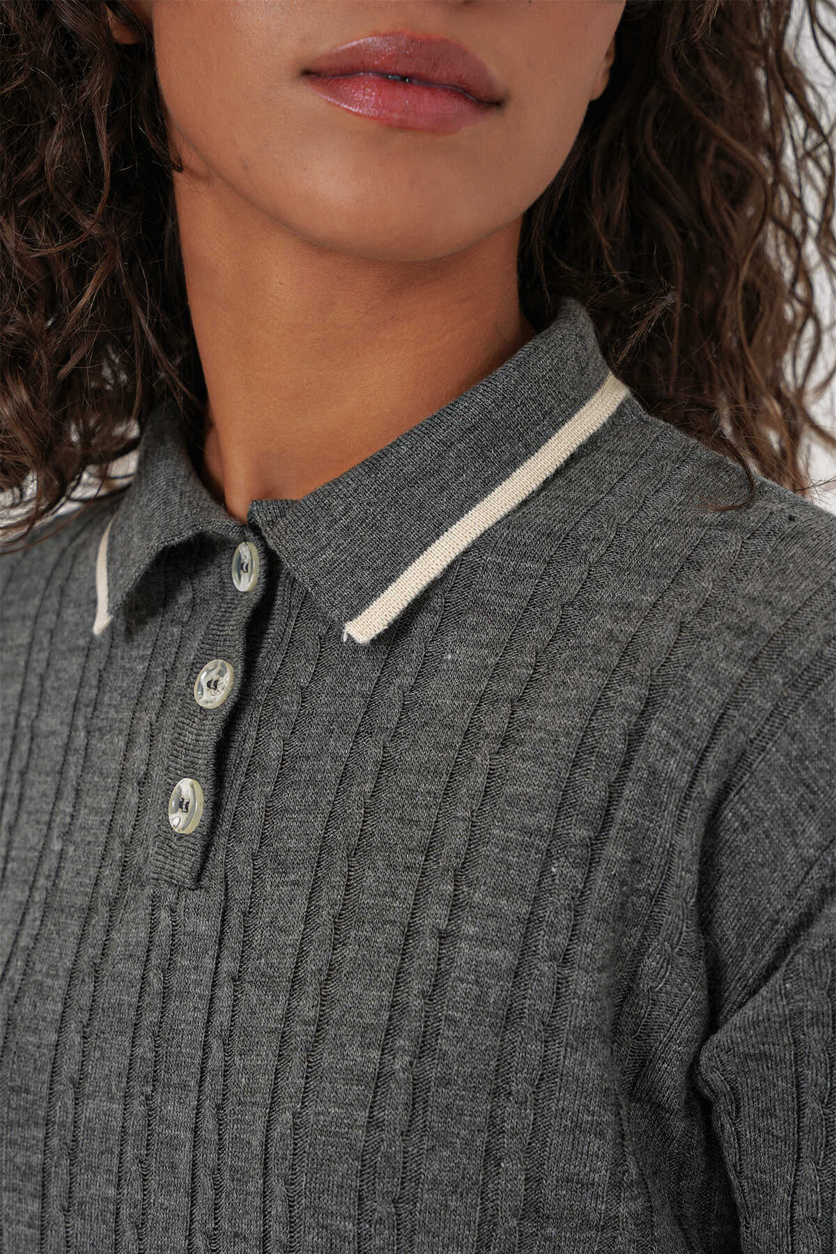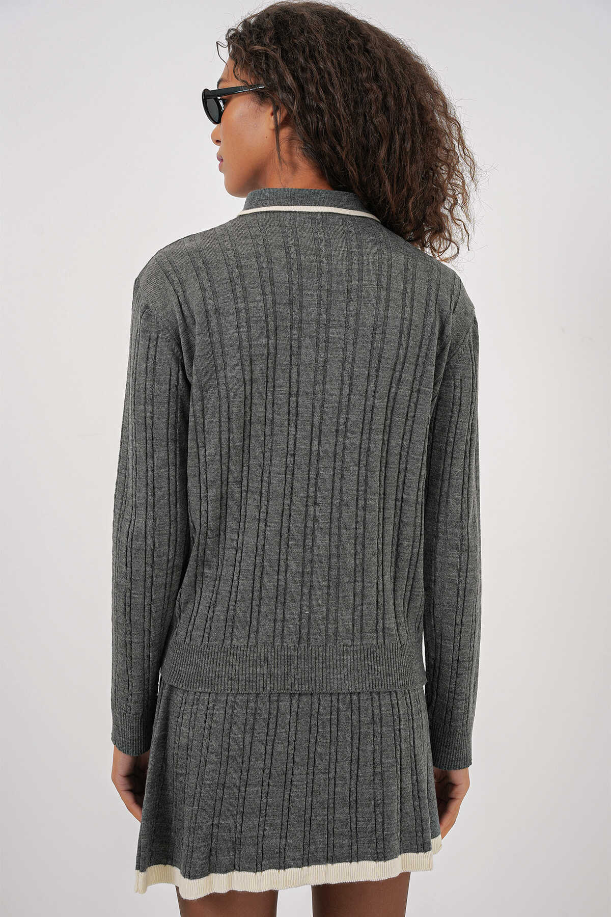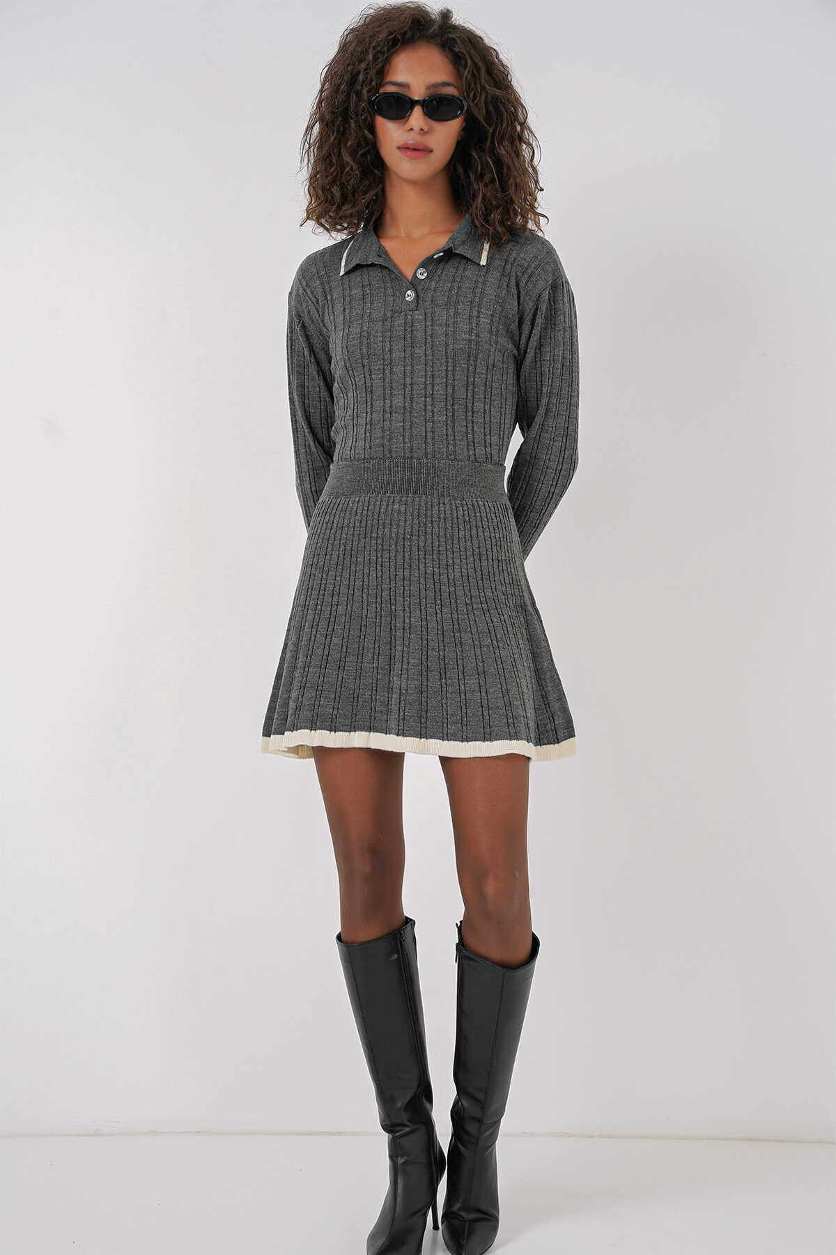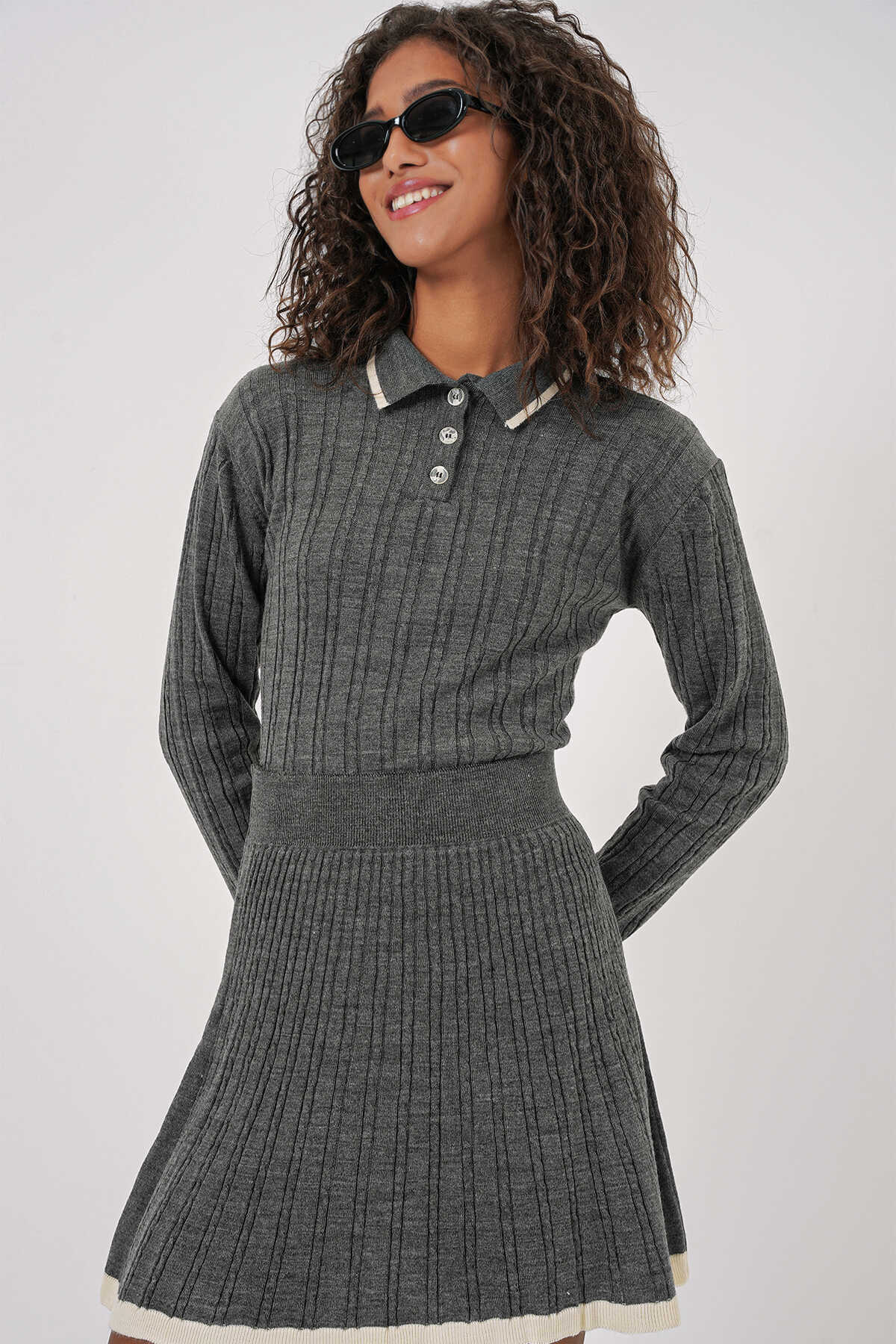 Kadin Polo Yaka Kazak Etek Triko Ikili Takim