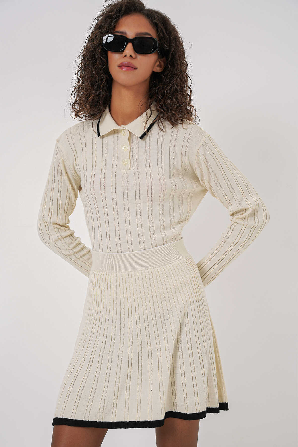 Kadin Polo Yaka Kazak Etek Triko Ikili Takim