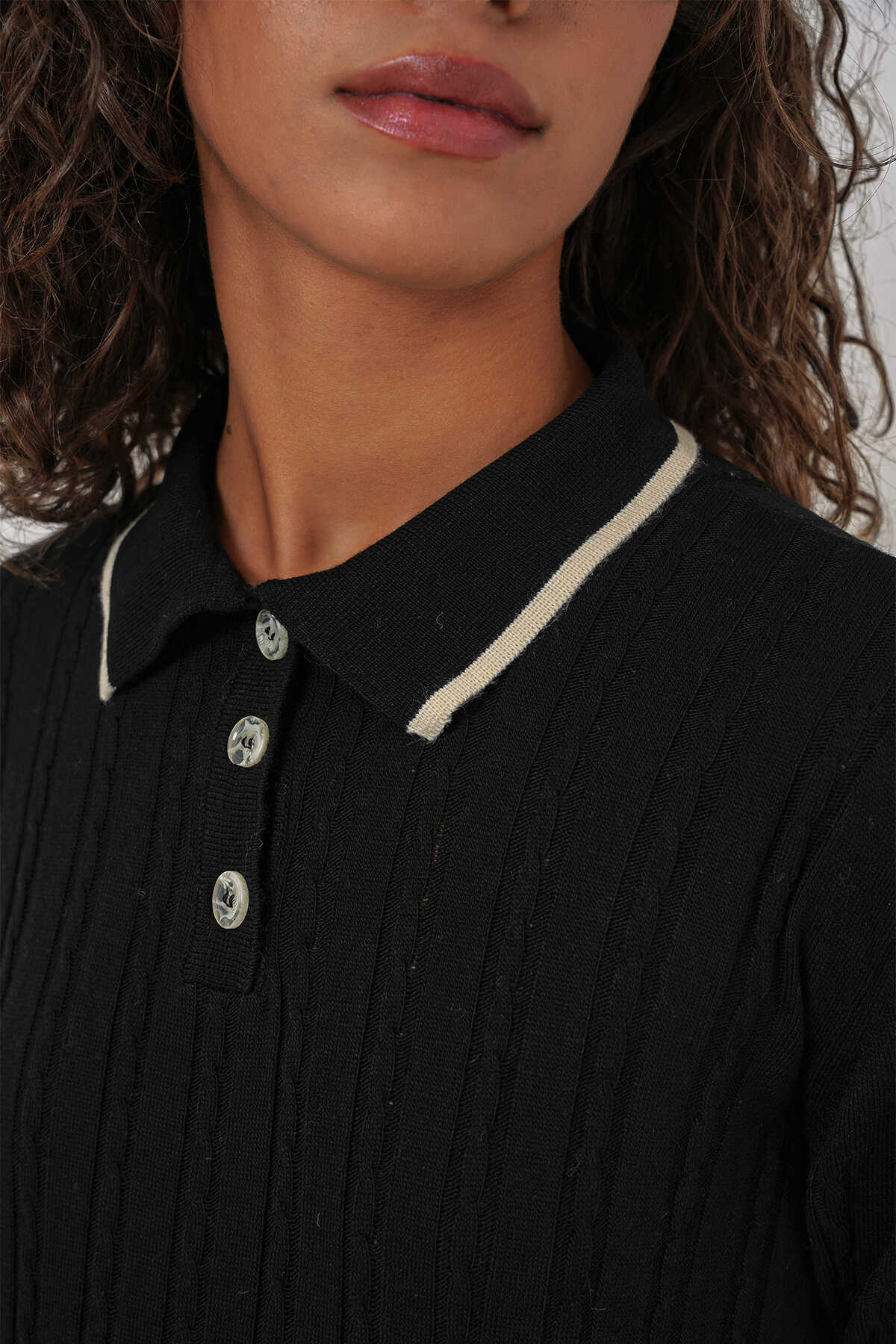 15907 Kadın Polo Yaka Kazak Etek Triko İkili Takım - Siyah