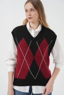 15914 V Yaka Triko Süveter - D. Siyah