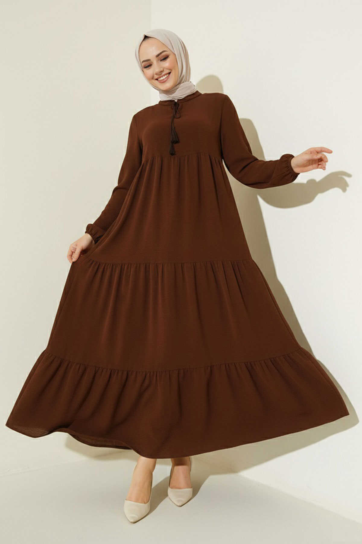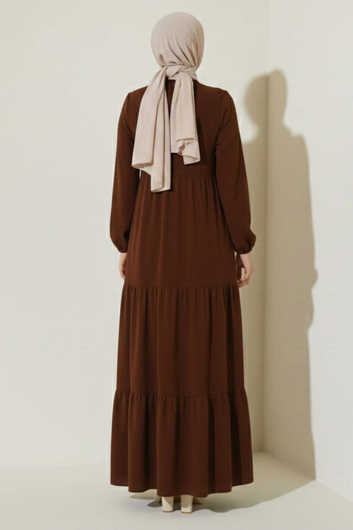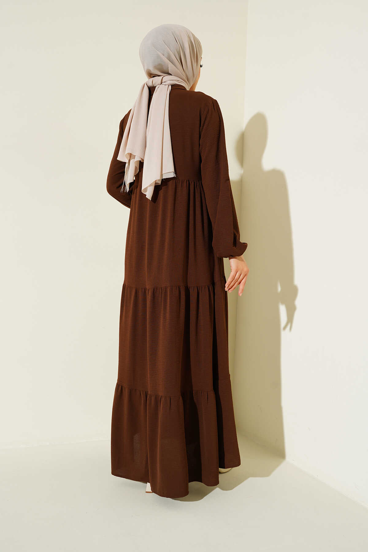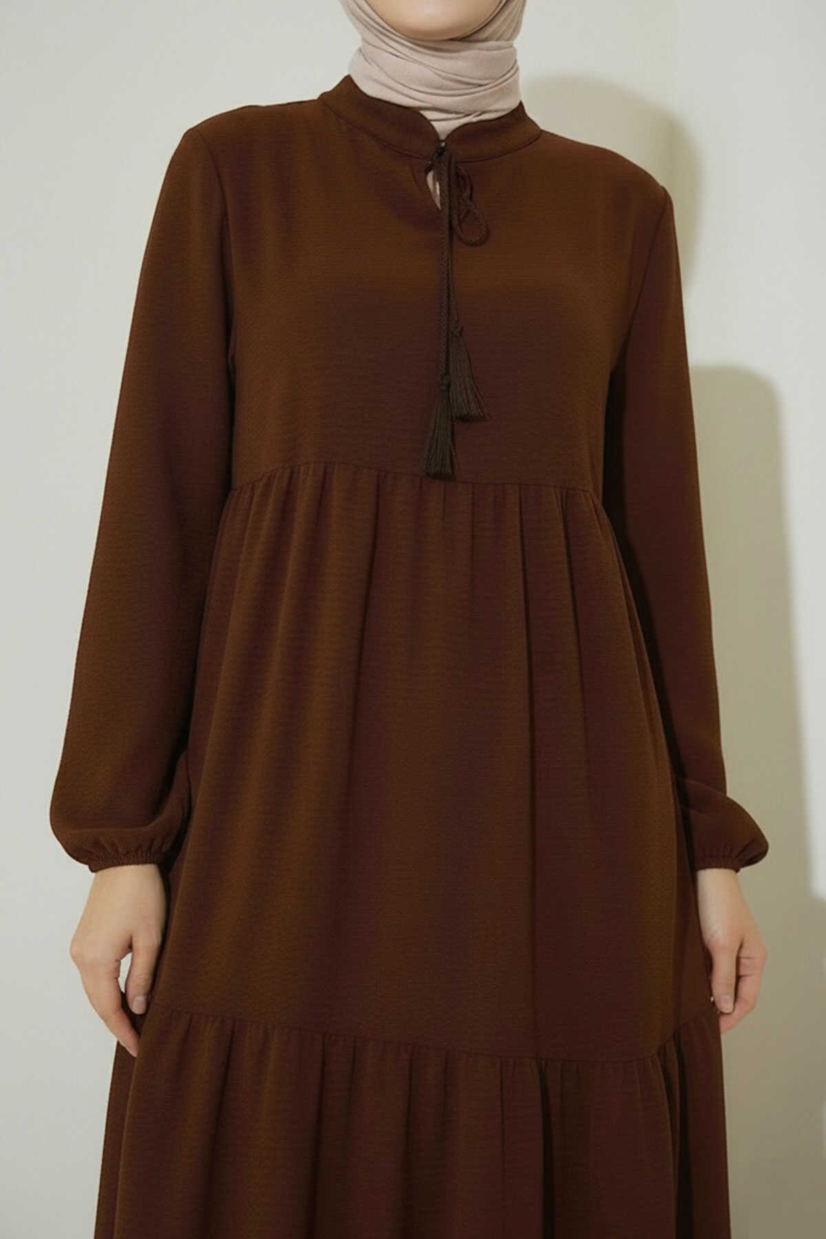 1627 Yaka Bağcıklı Tesettür Elbise - E. Kahve
