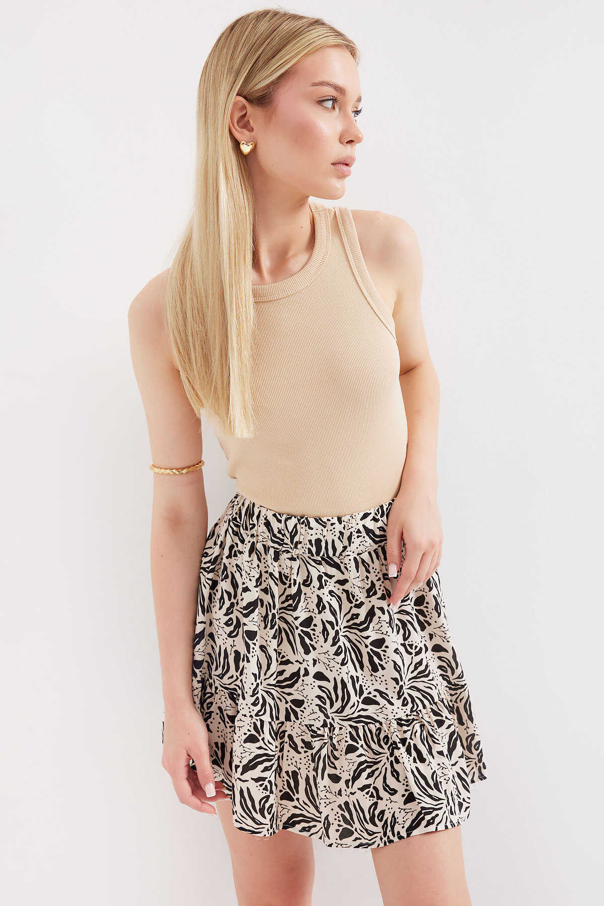Desenli Viskon  Mini Etek