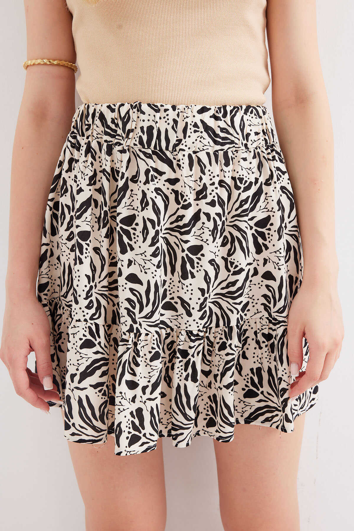 1884 Desenli Viskon Mini Etek - F. Siyah - Kombin
