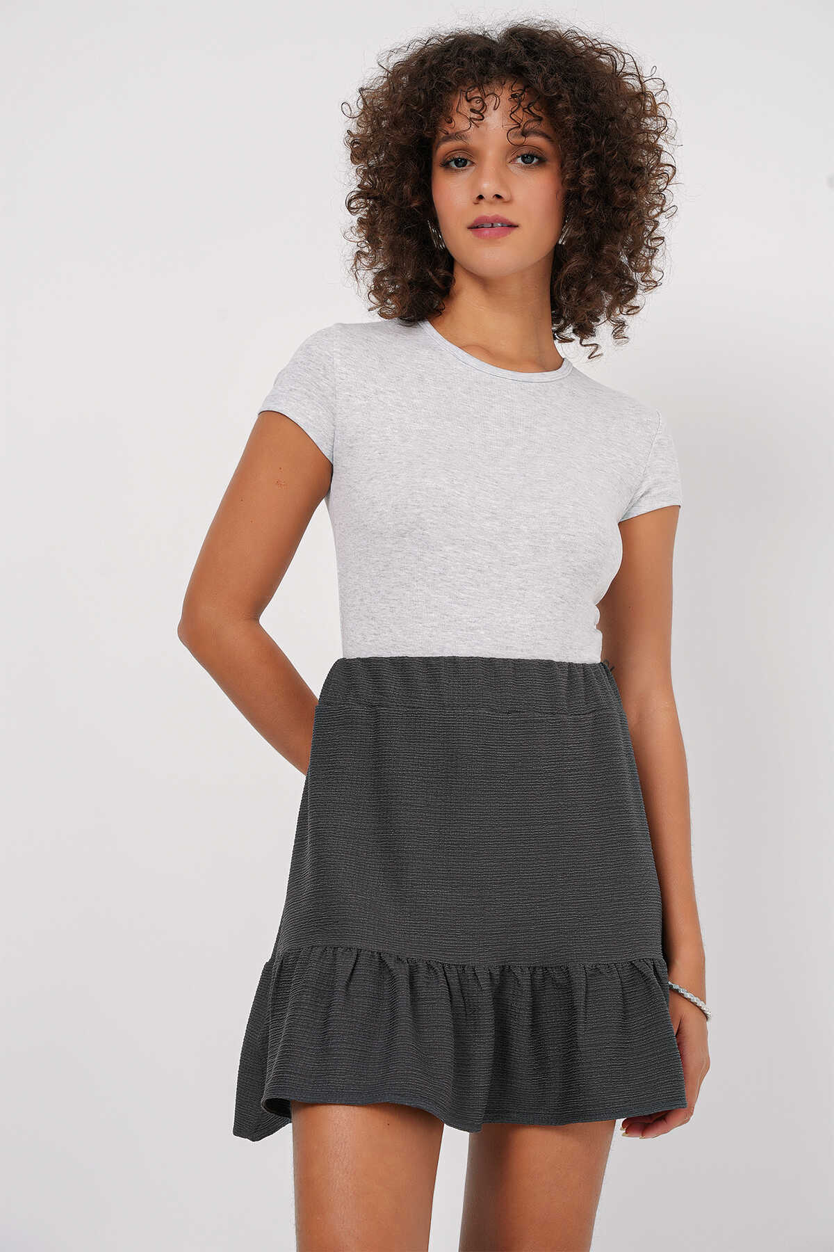 1884 Örme Mini Etek - Antrasit - Kombin