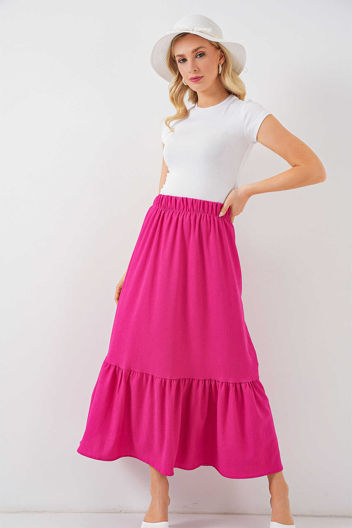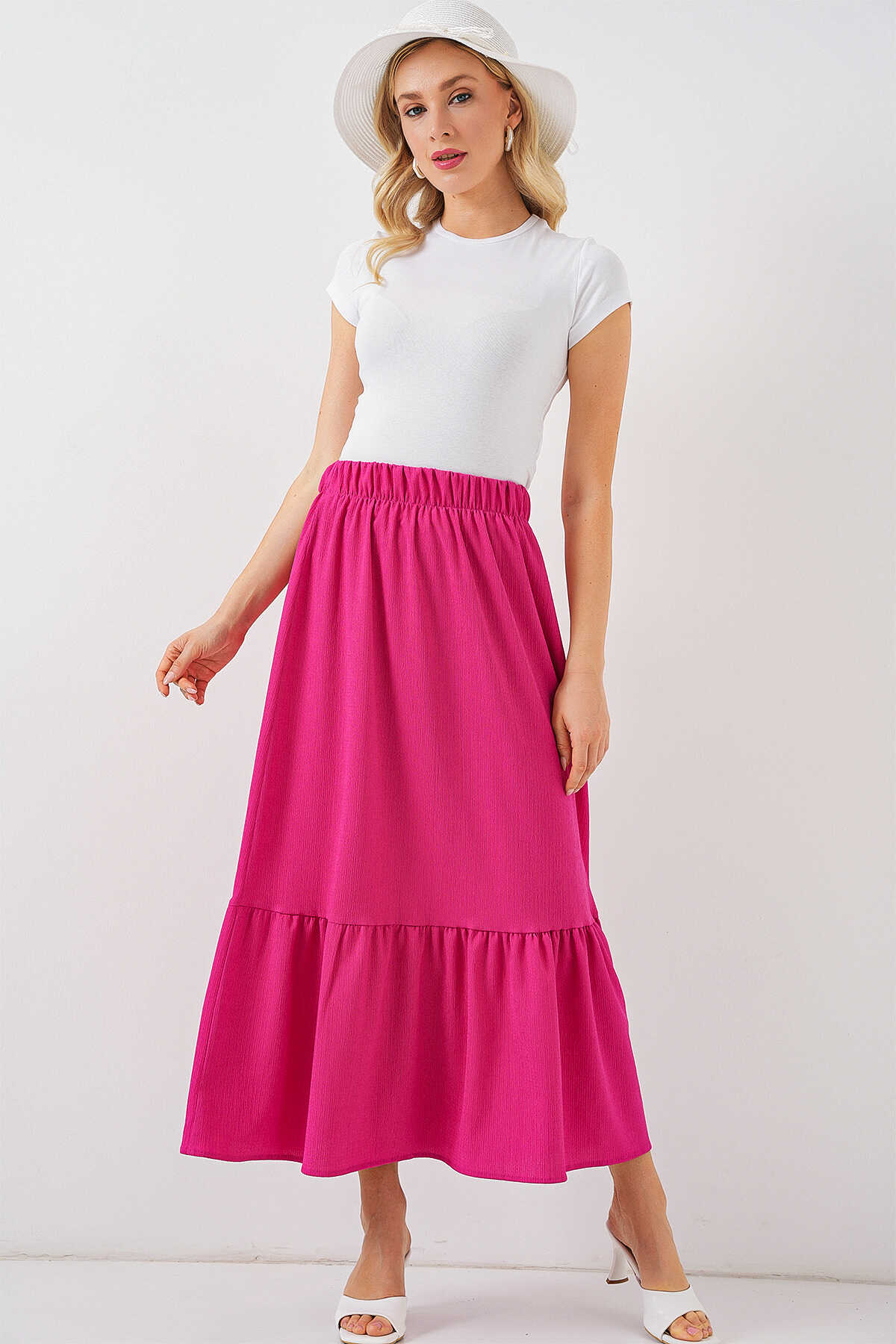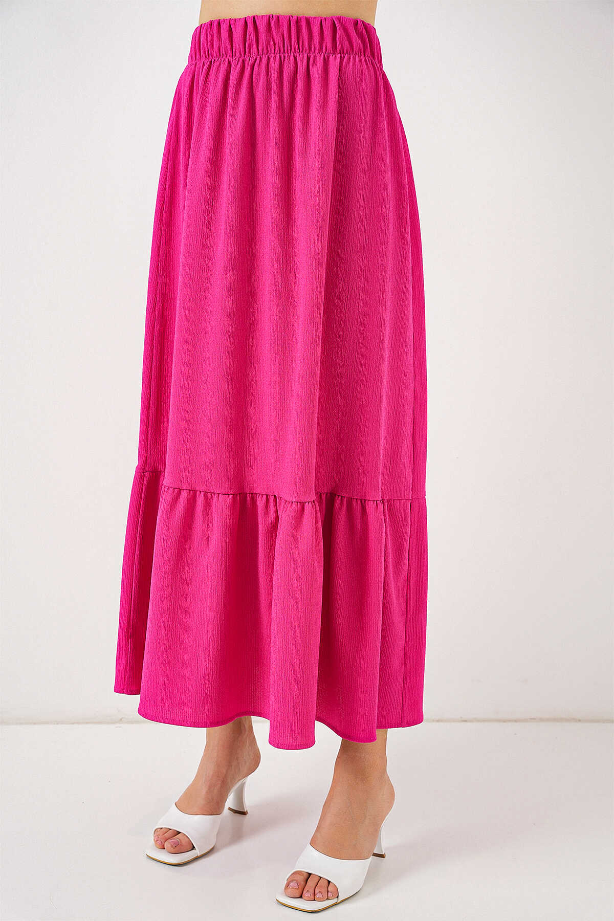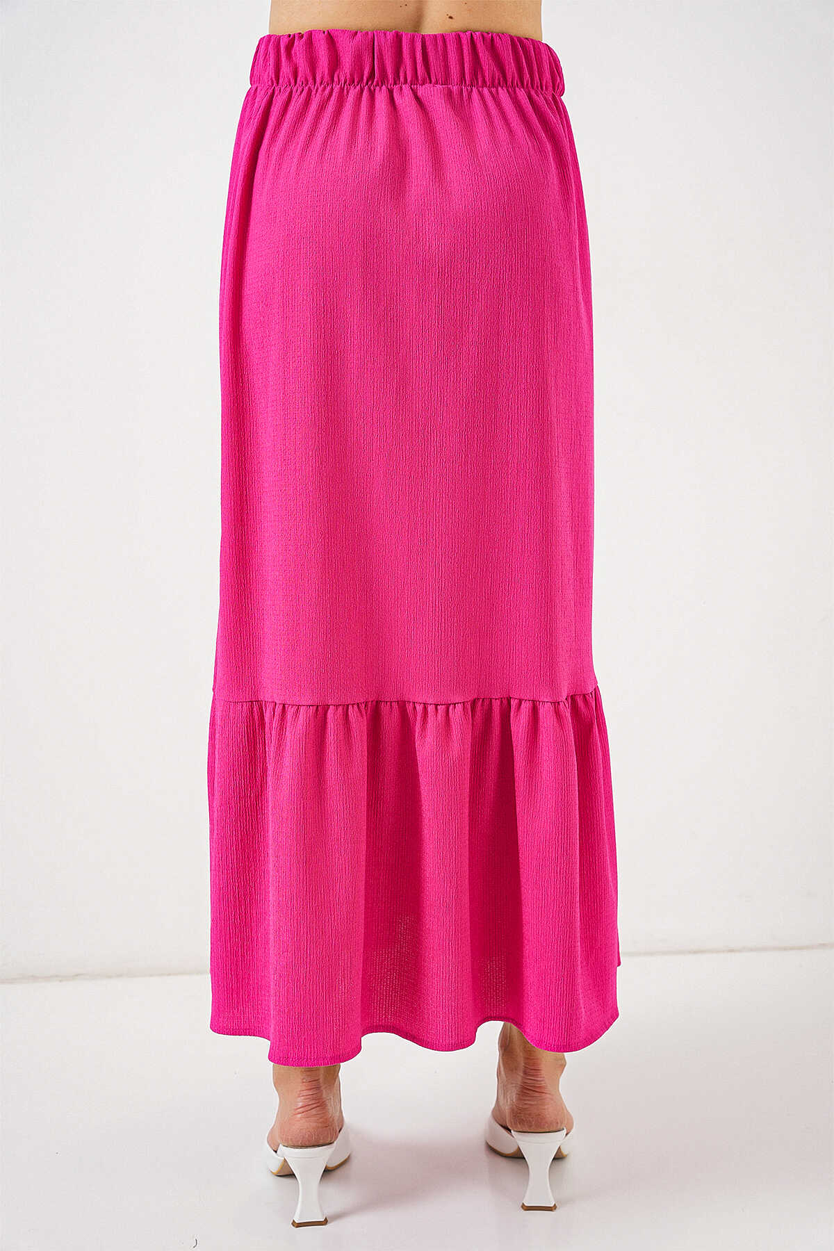 1886 Uzun Örme Etek - Koyu Pembe - Kombin