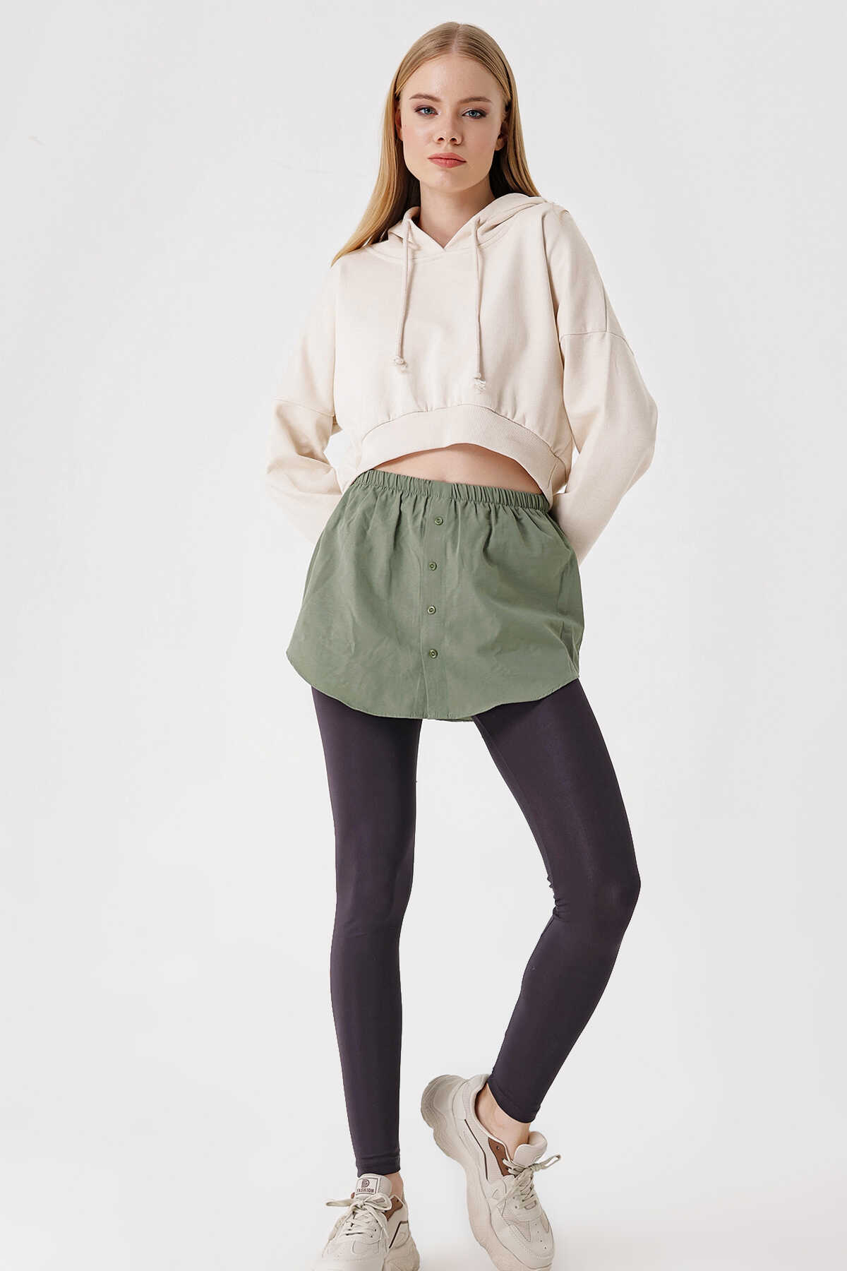 1888 Sweatshirt Ve Kazak Altı Gömlek Etek - Haki - Kombin