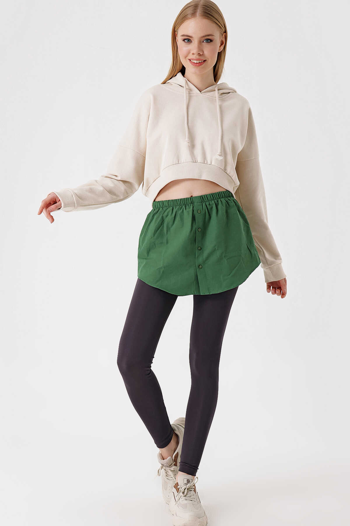 1888 Sweatshirt Ve Kazak Altı Gömlek Etek - Zümrüt Yeşili - Kombin