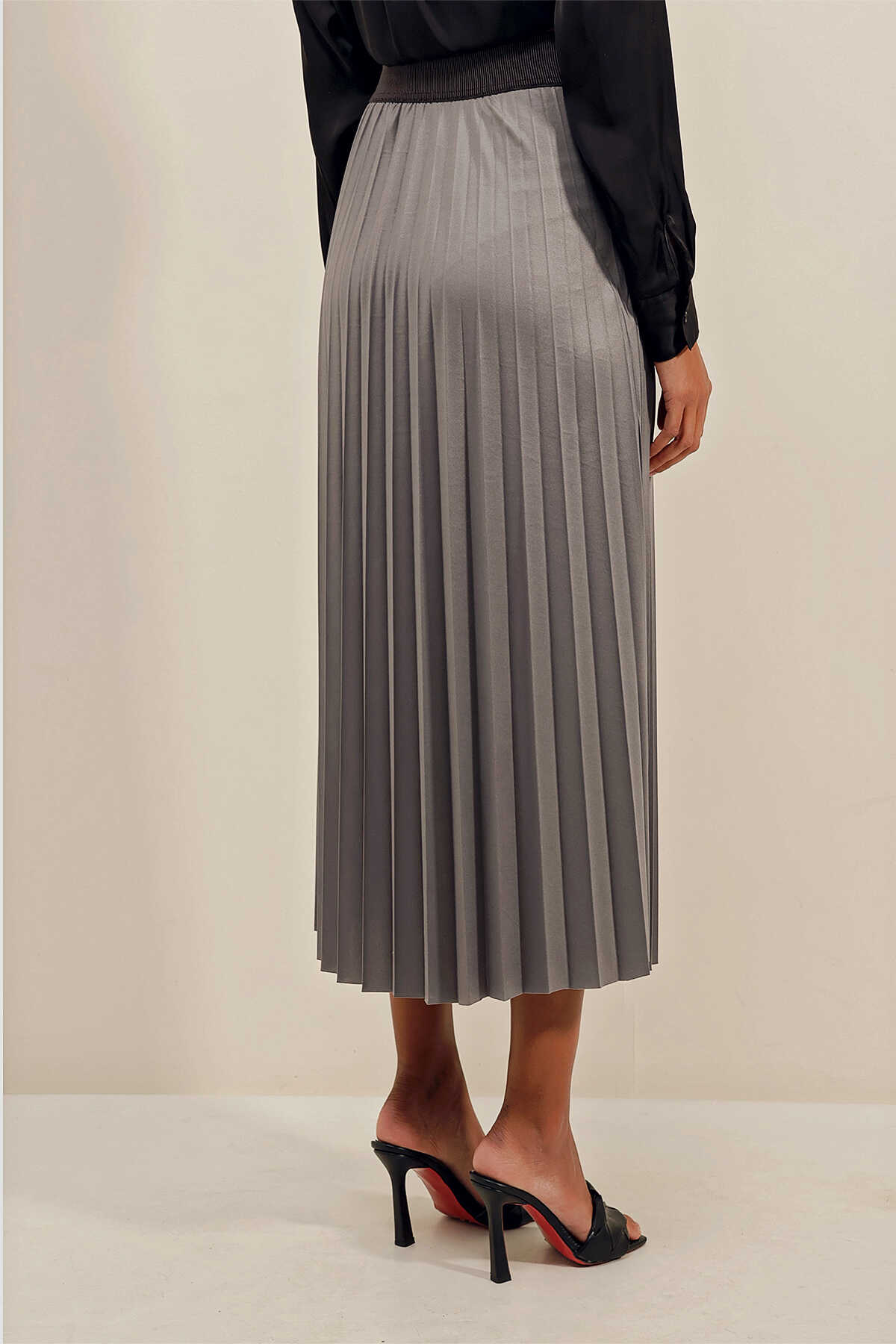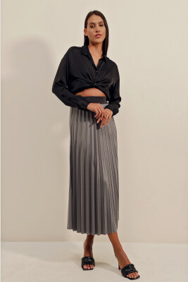 1894 Deri Görünümlü Piliseli Etek - Gri