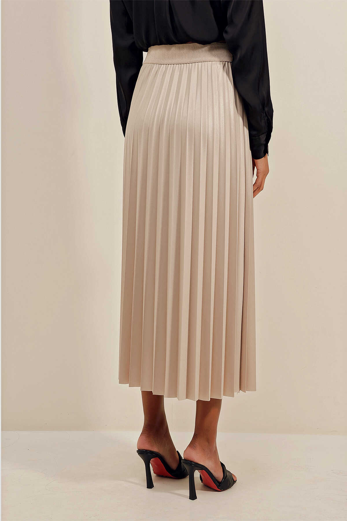 1894 Deri Görünümlü Piliseli Etek - Krem