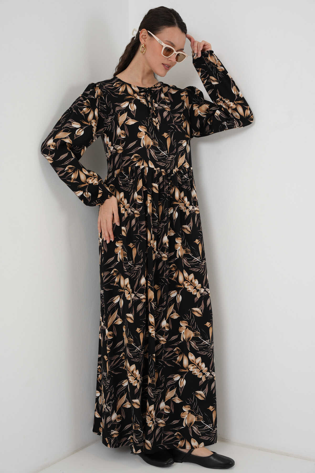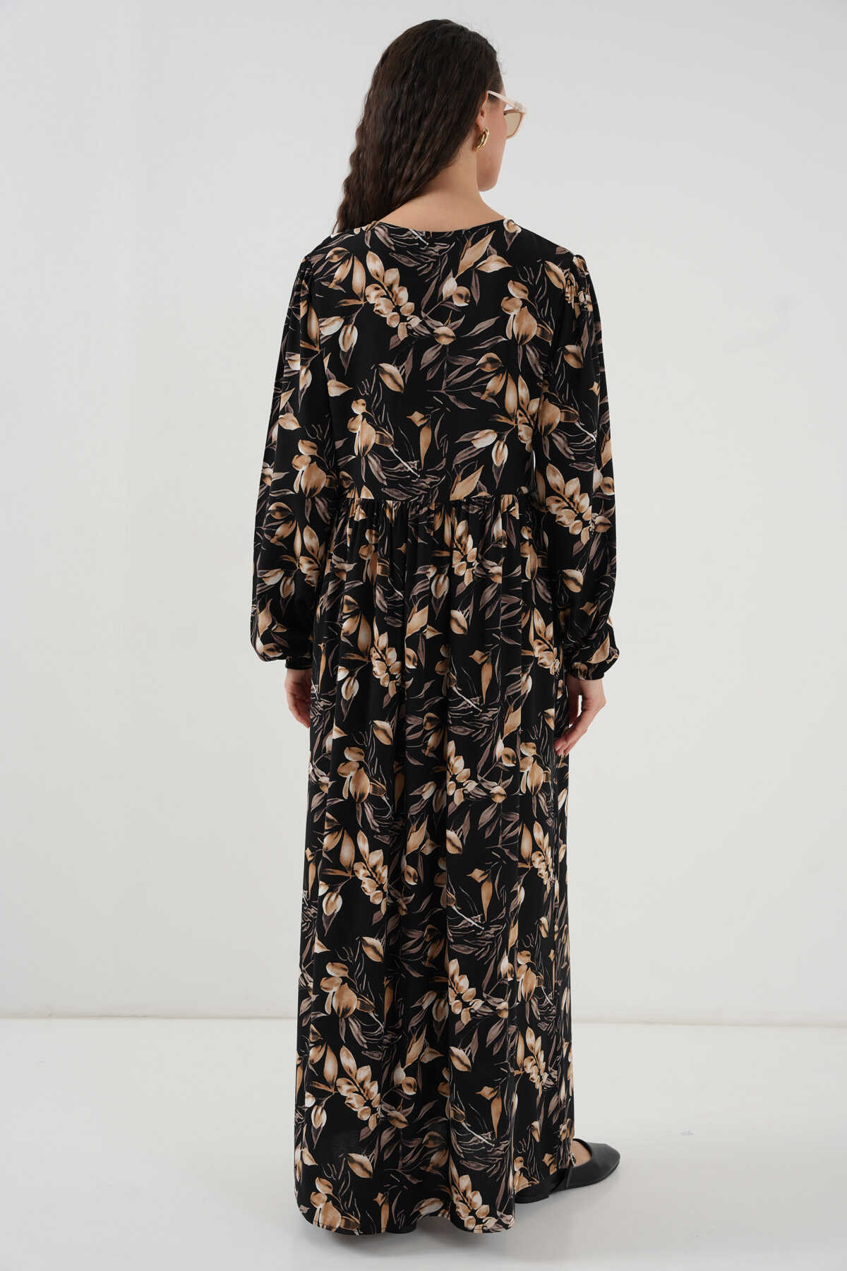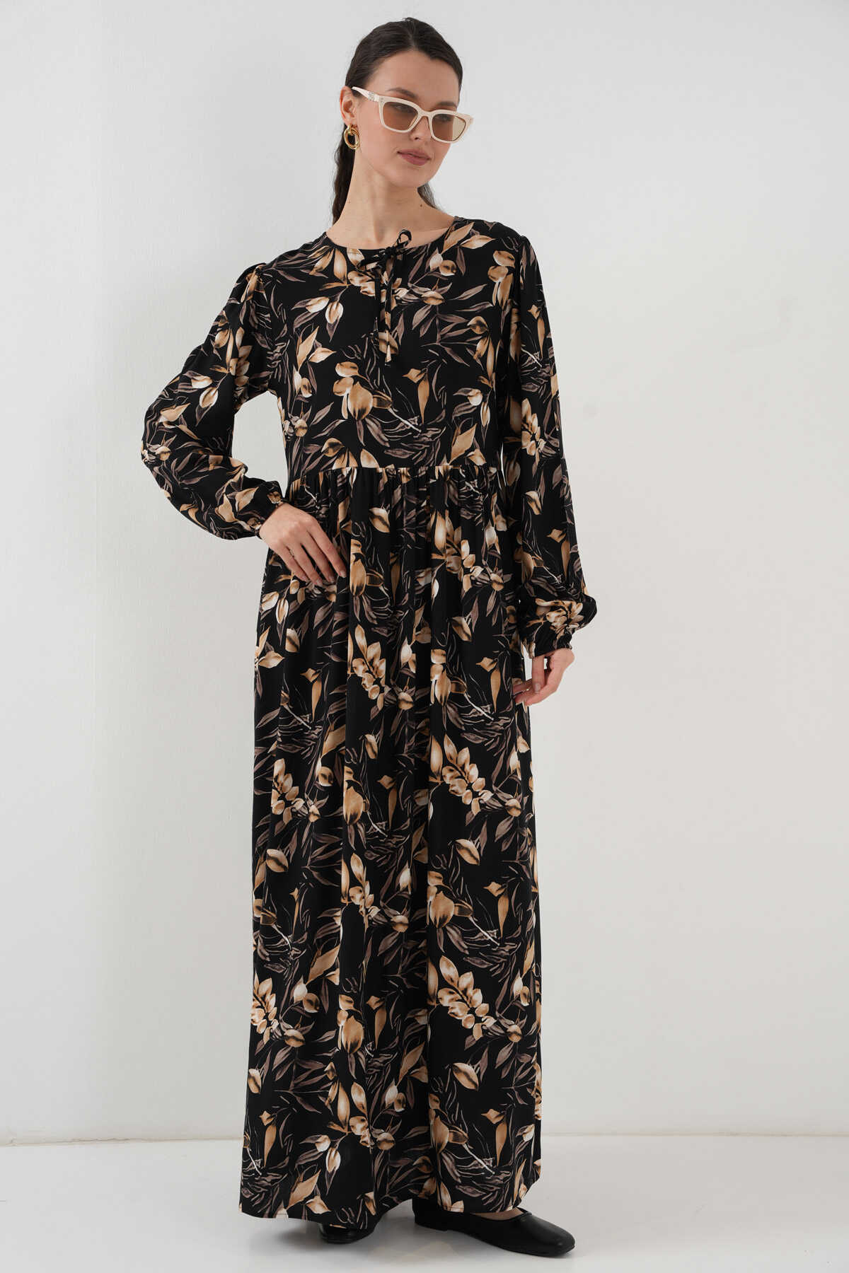 1947 Desenli Uzun Elbise - L. Siyah - Kombin