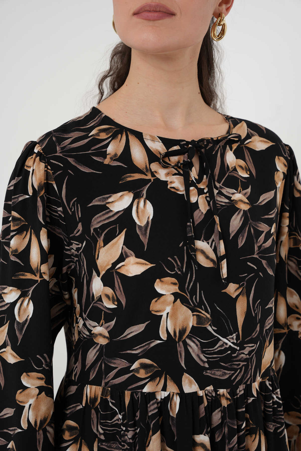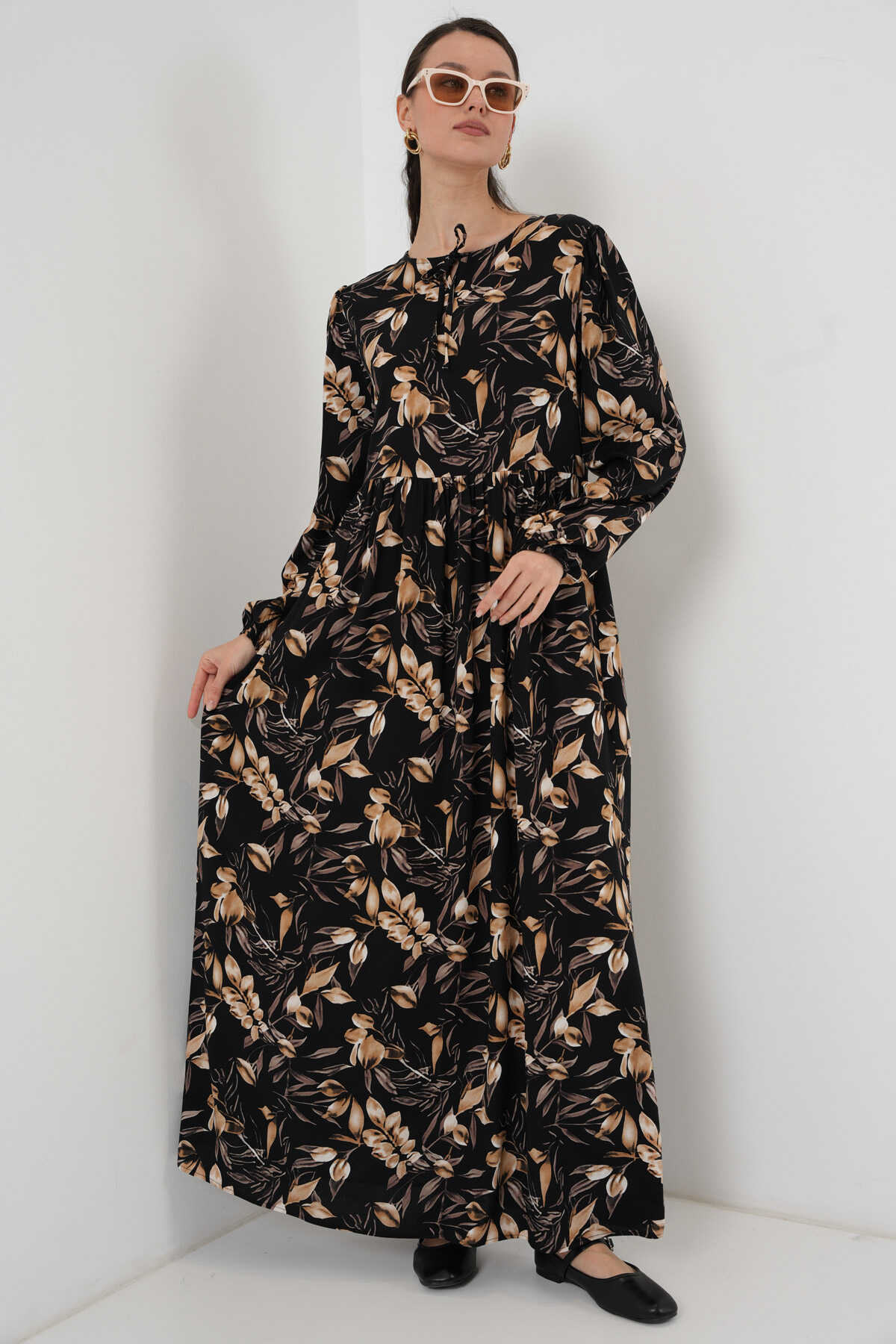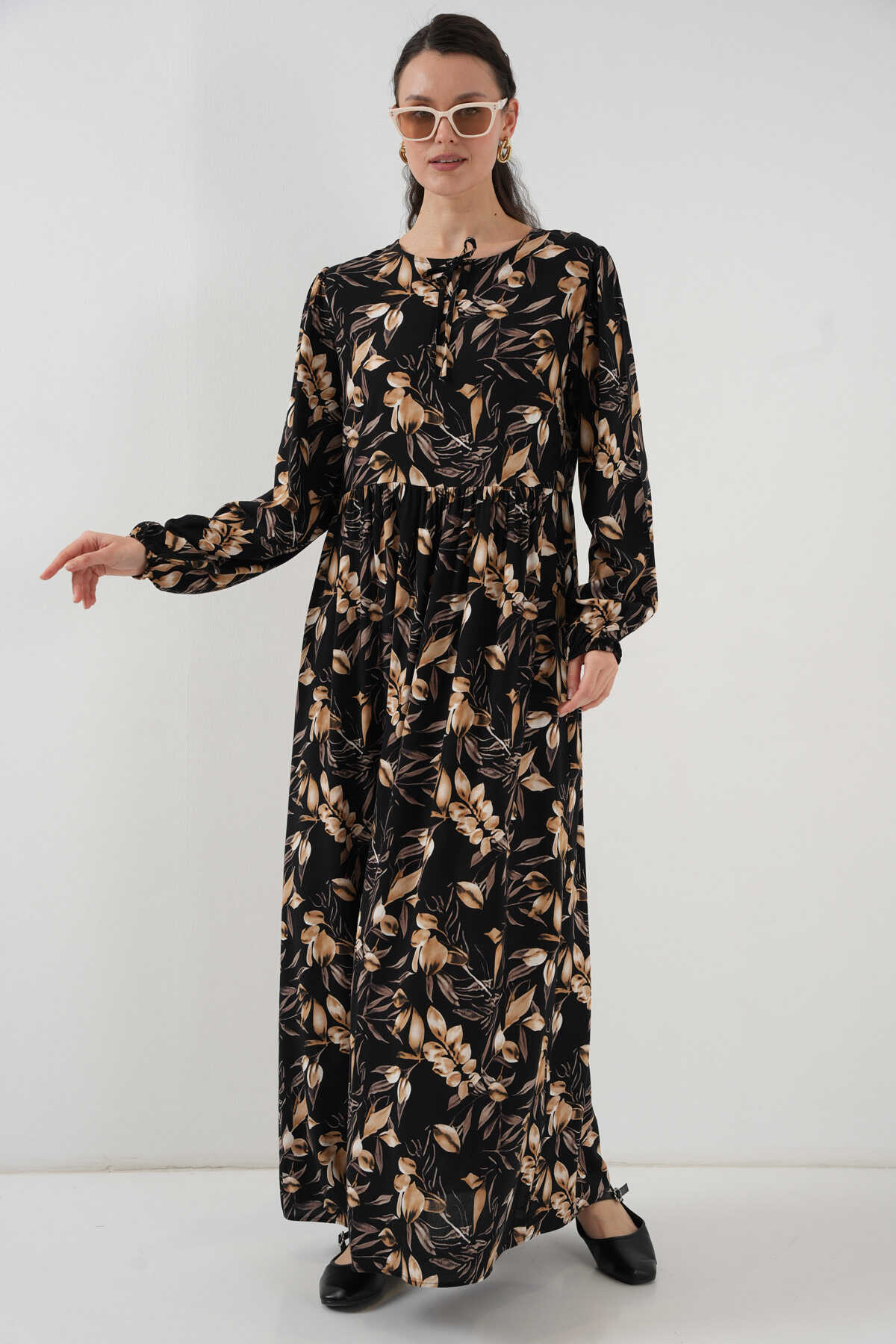 1947 Desenli Uzun Elbise - L. Siyah - Kombin