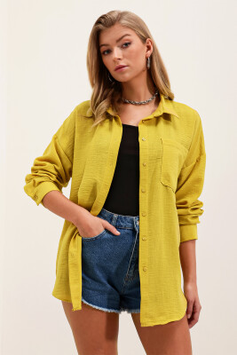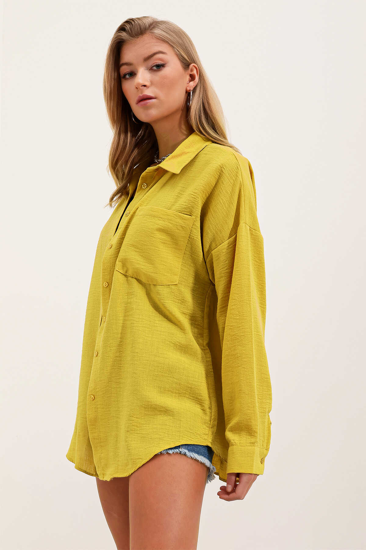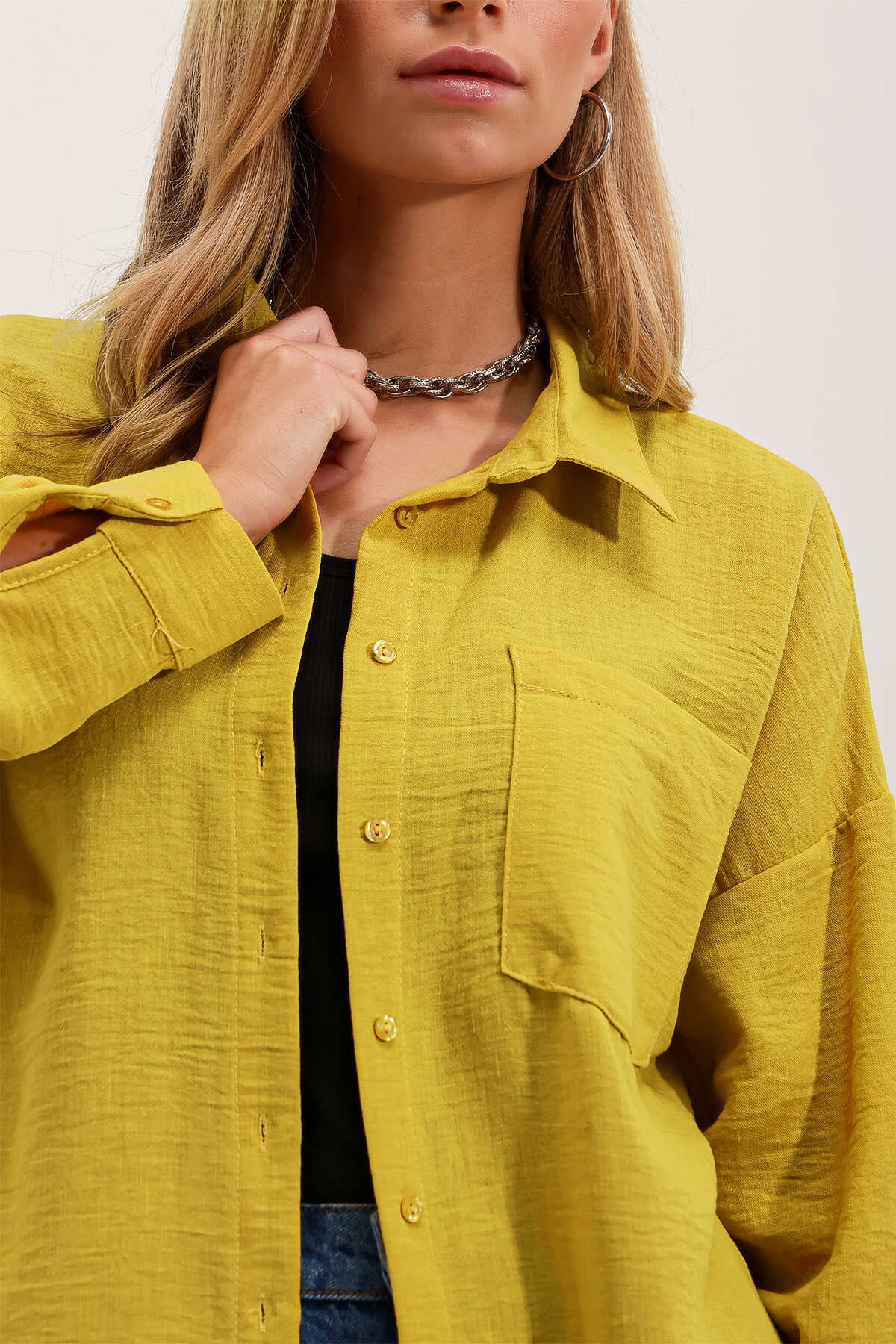 20153 Tek Cepli Oversize Keten Gömlek - Hardal