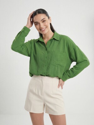 20153 Tek Cepli Oversize Keten Gömlek - G.Yeşil
