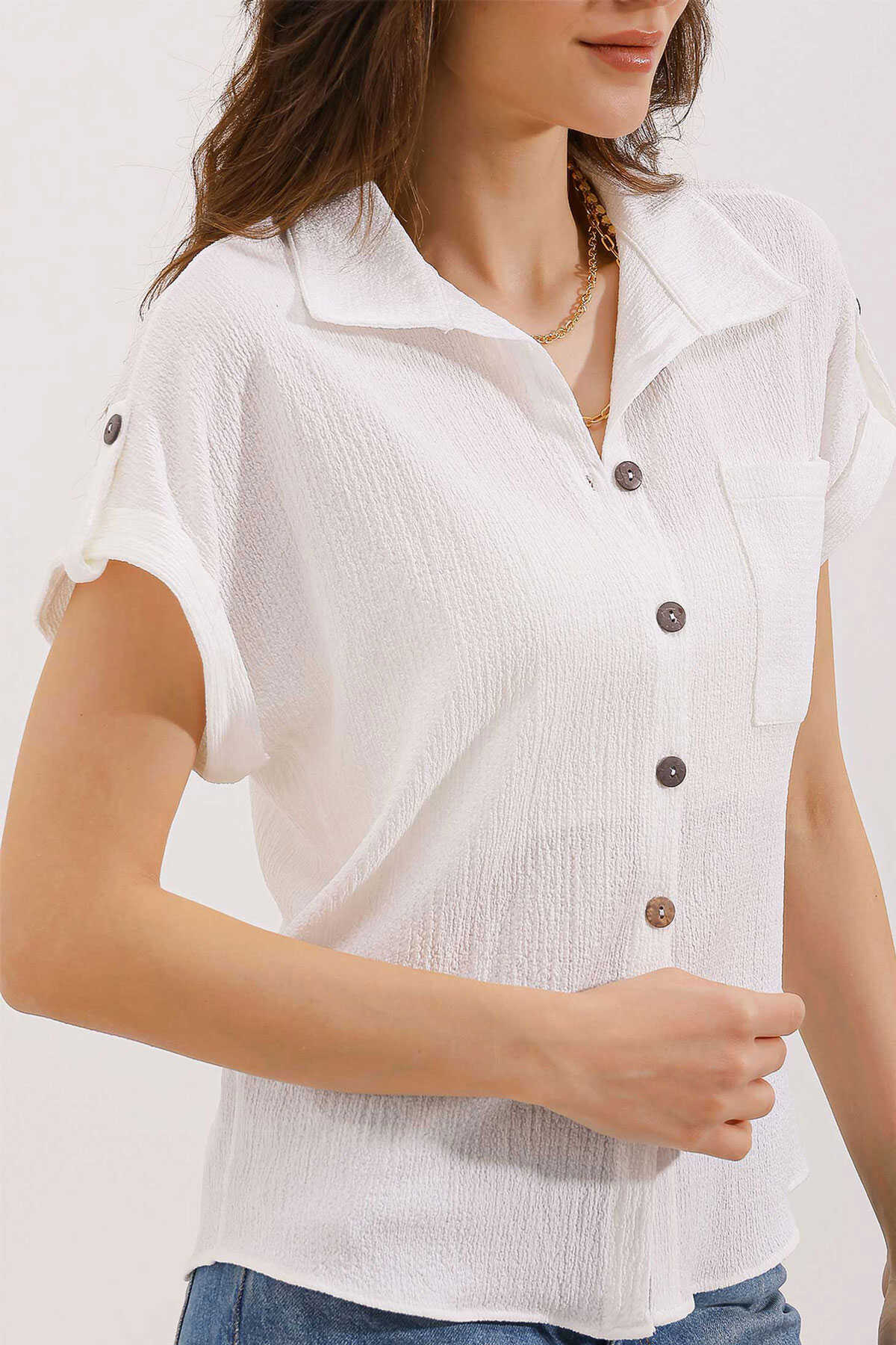 Kisa Kol Oversize Örme Gömlek Bluz