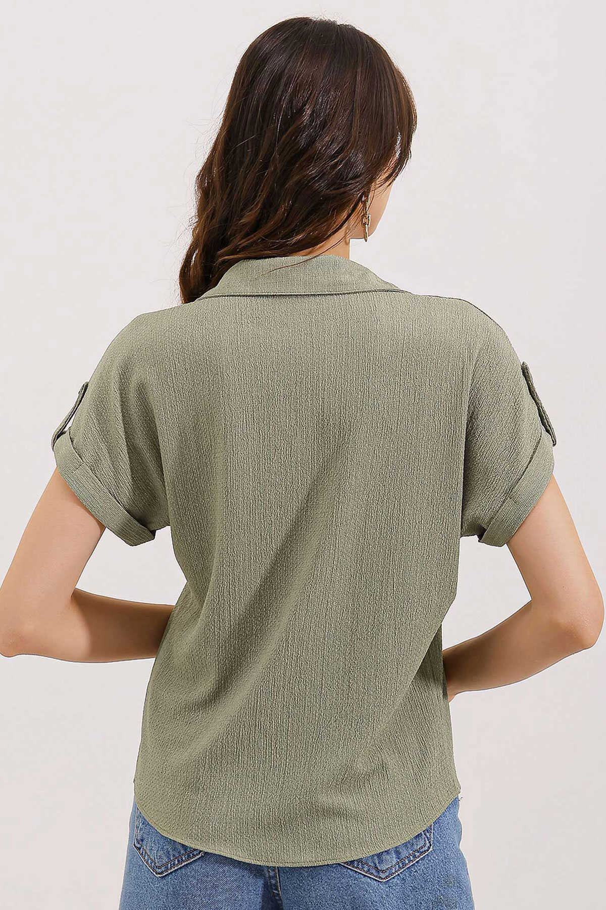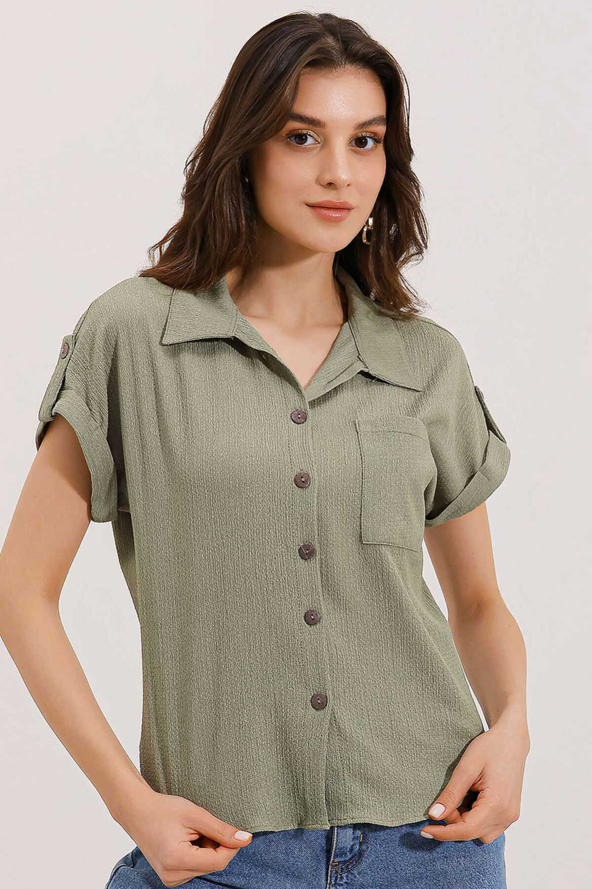 Kisa Kol Oversize Örme Gömlek Bluz