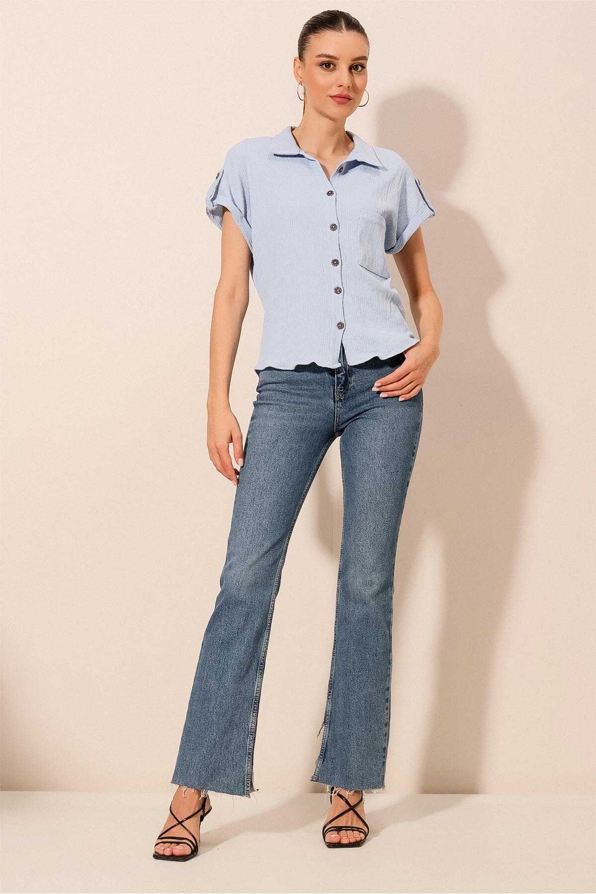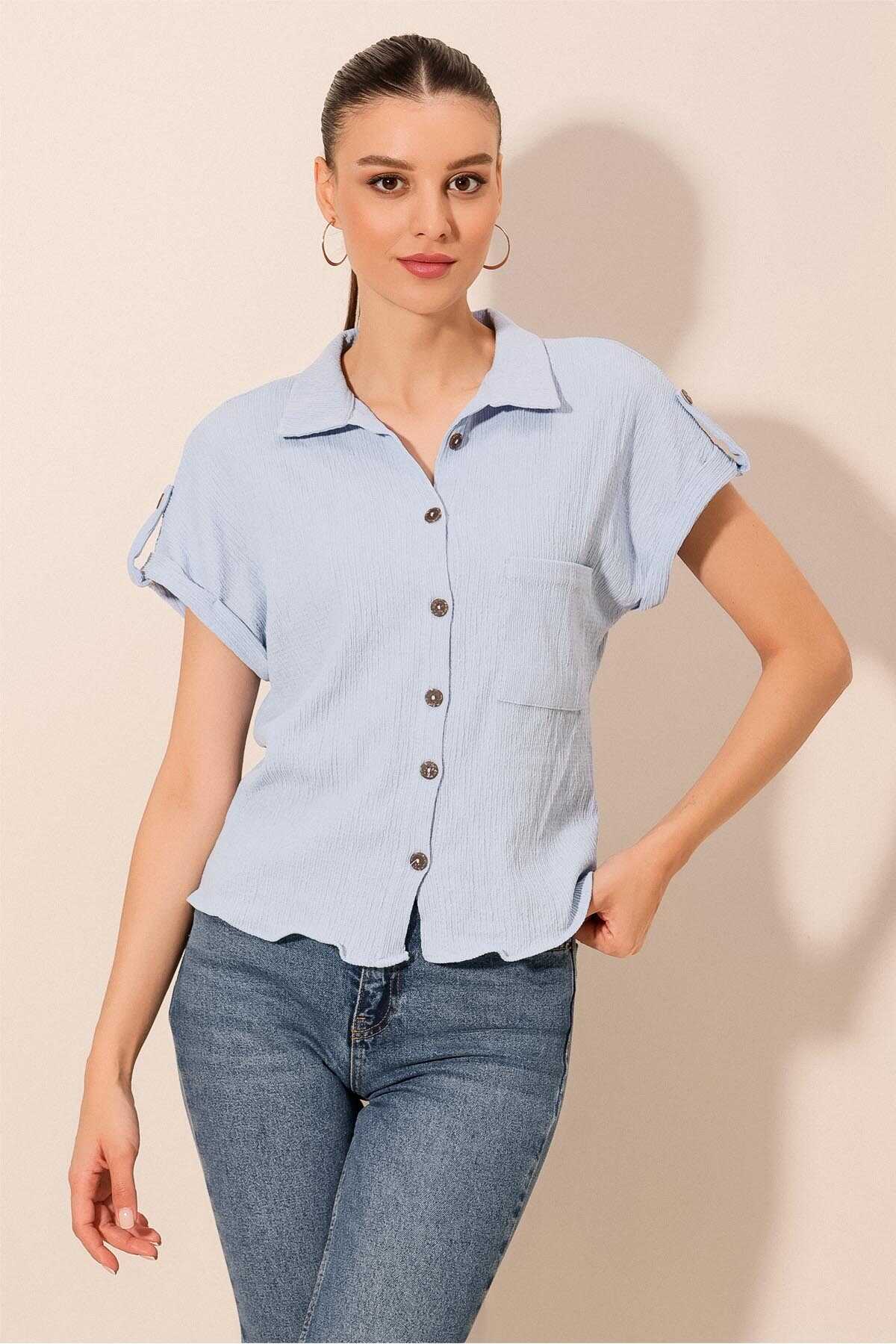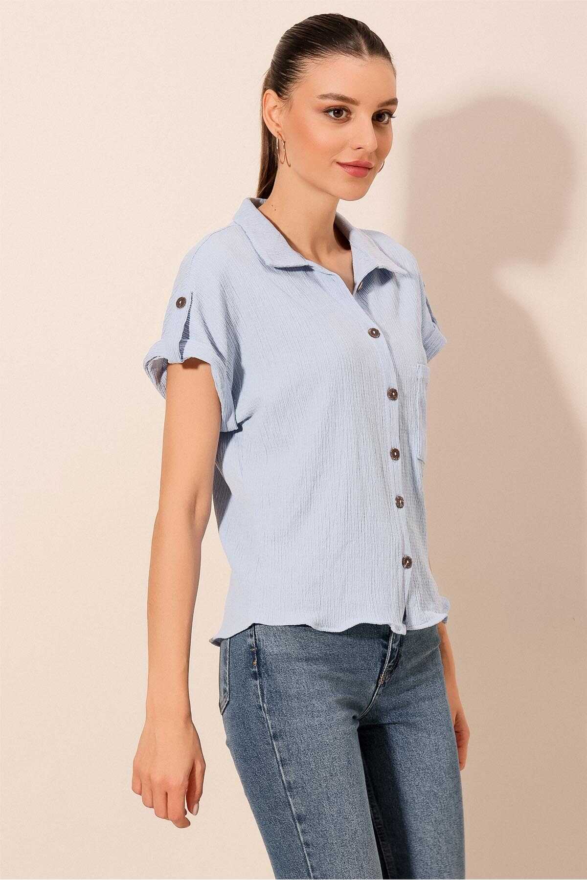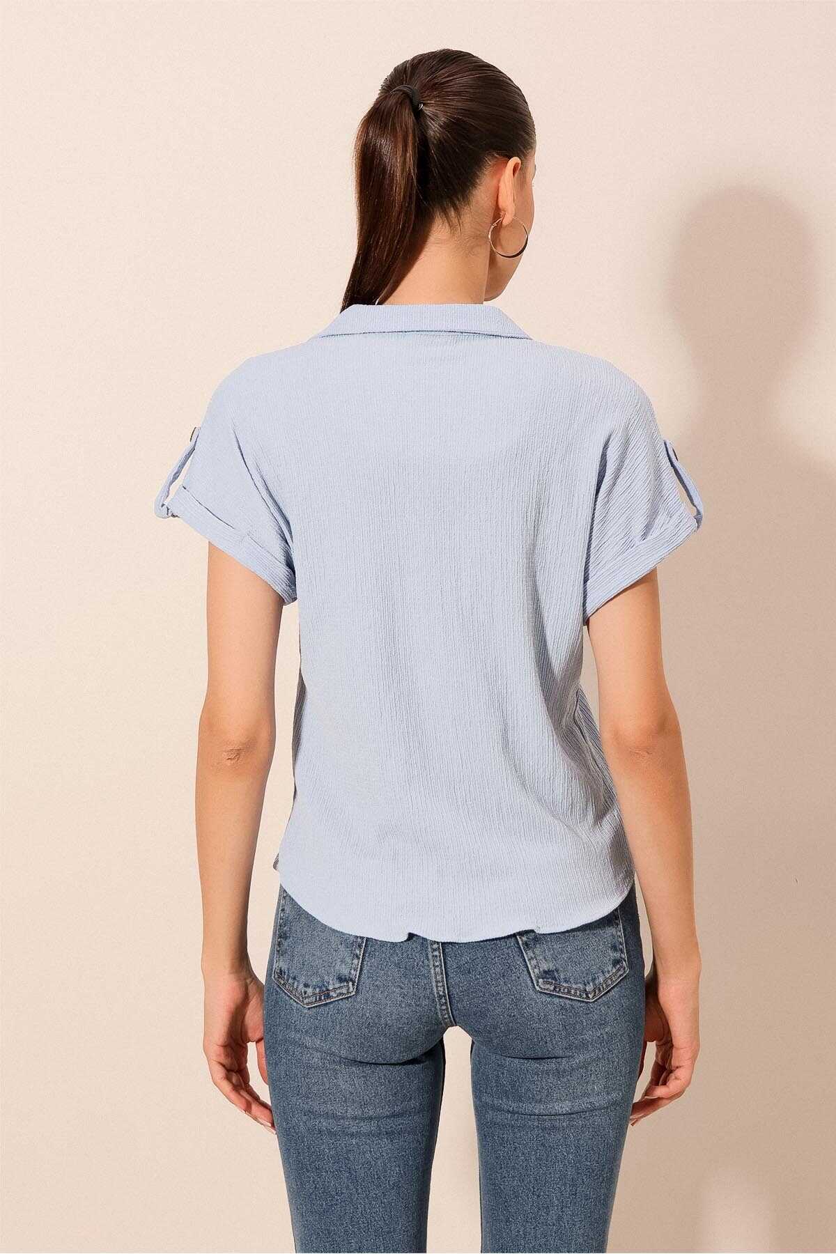 Kisa Kol Oversize Örme Gömlek Bluz