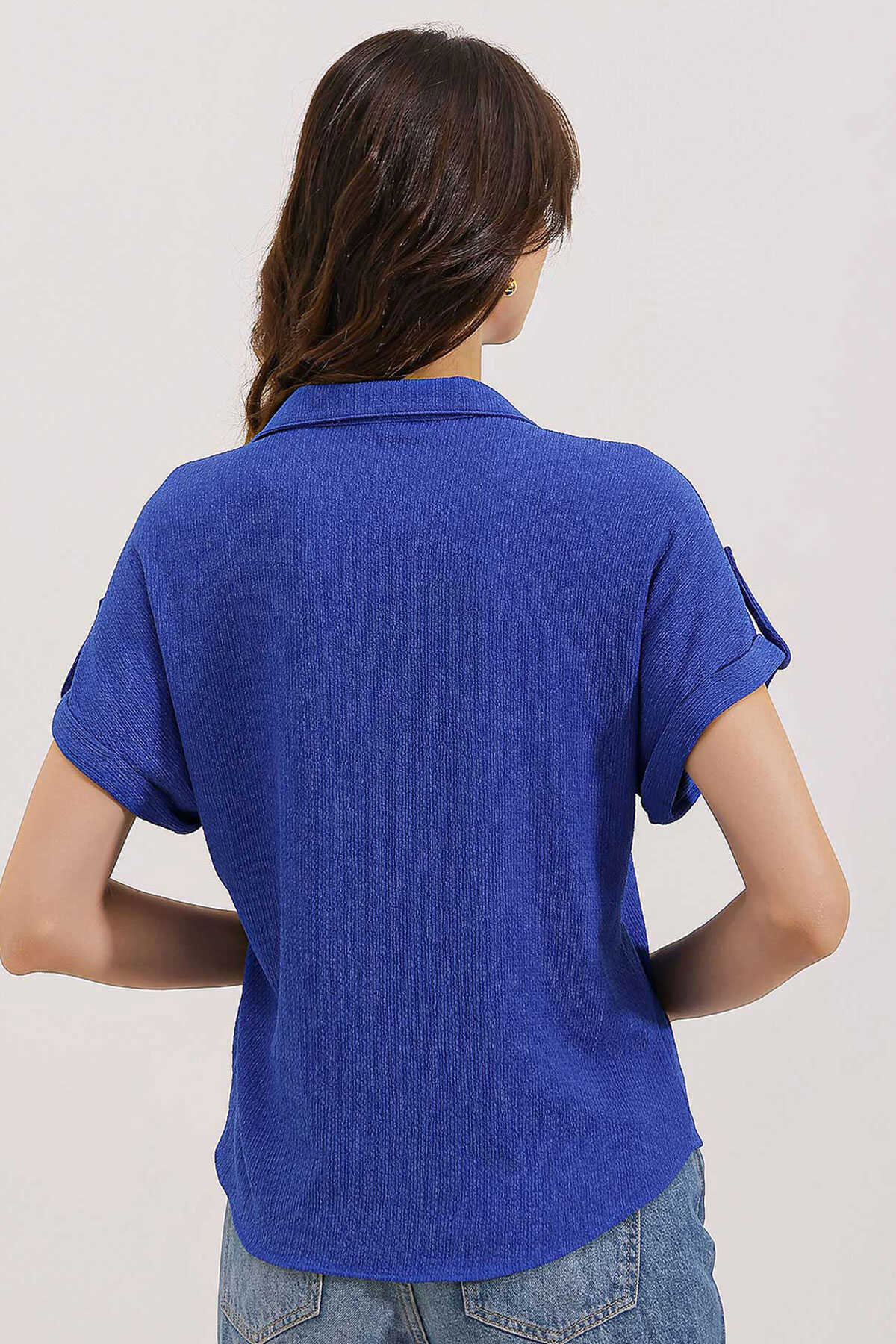 Kisa Kol Oversize Örme Gömlek Bluz