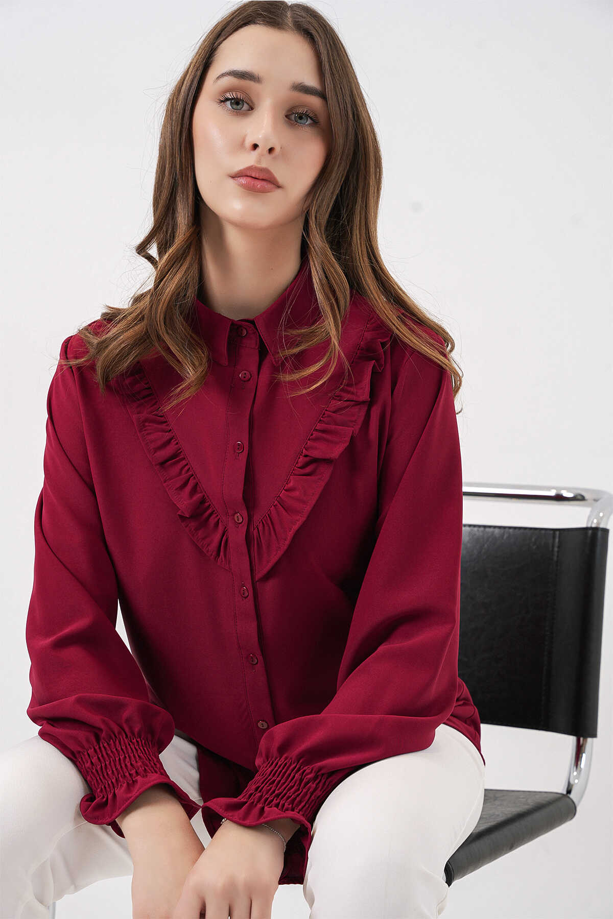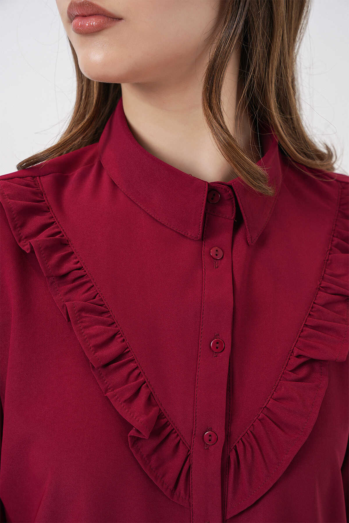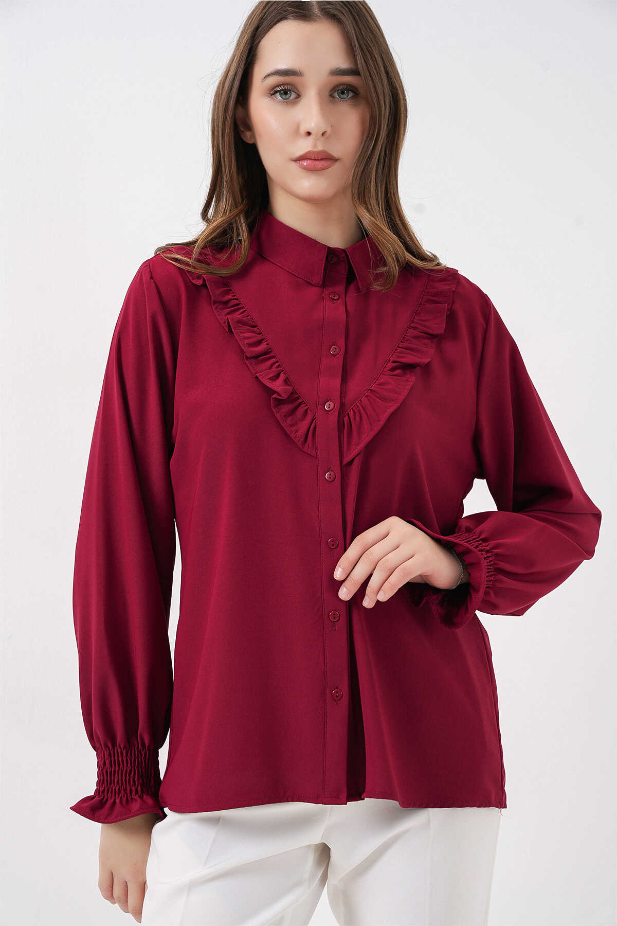 20223 Fırfırlı Uzun Kol Gömlek - Bordo