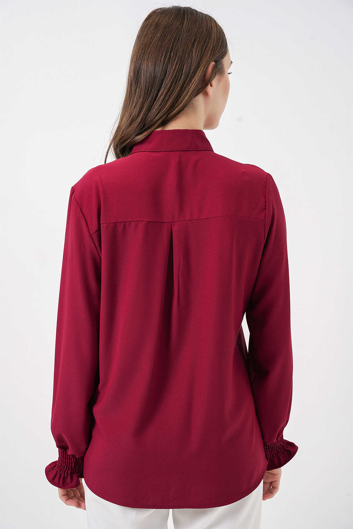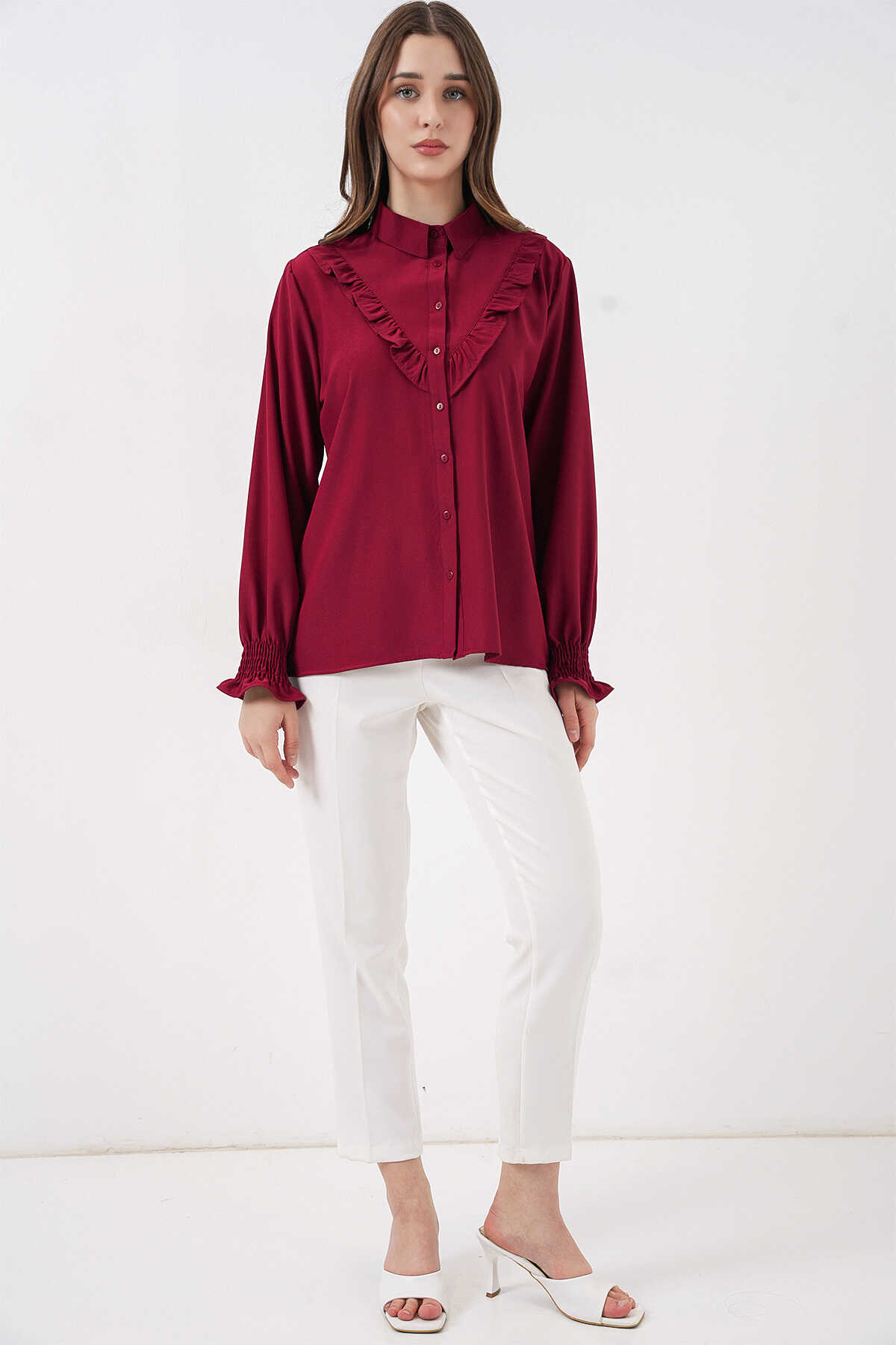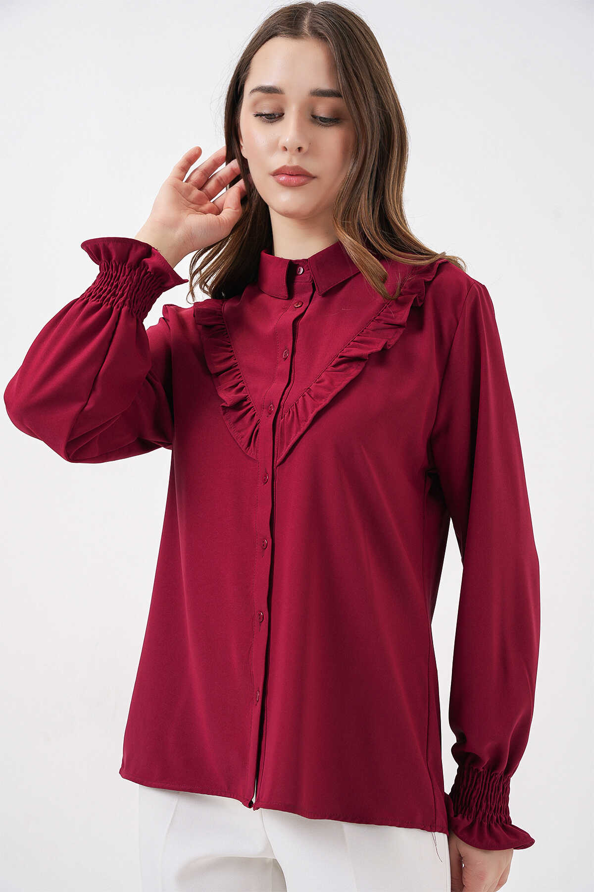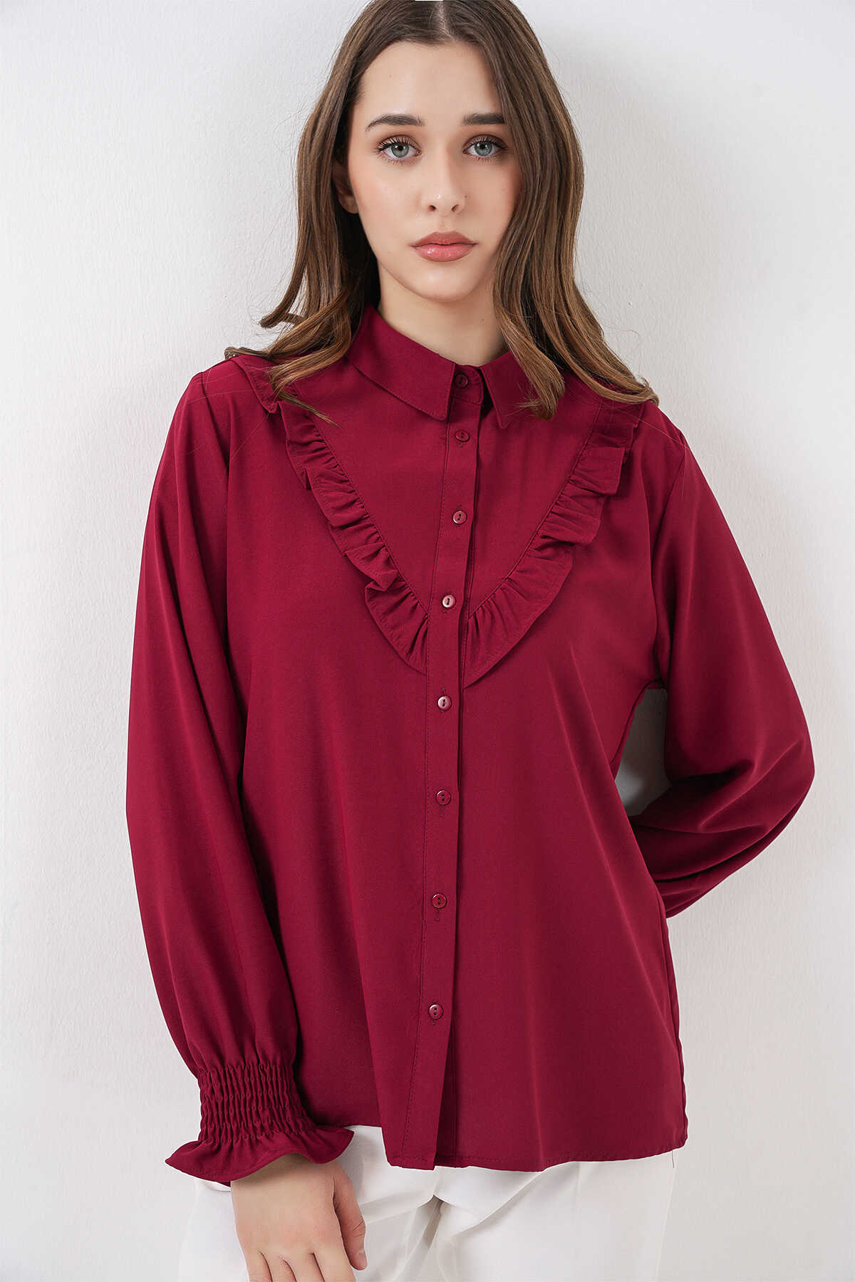 20223 Fırfırlı Uzun Kol Gömlek - Bordo