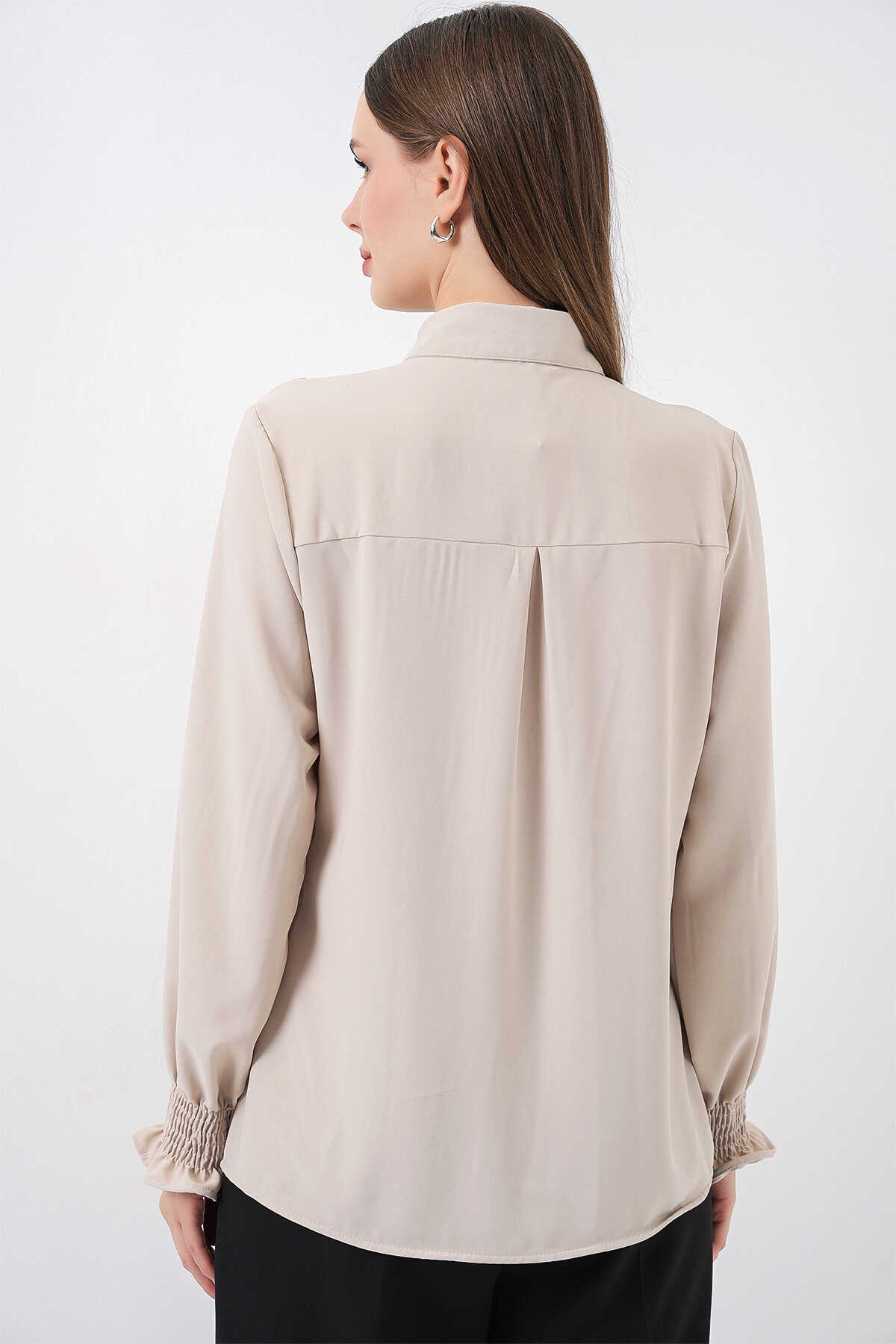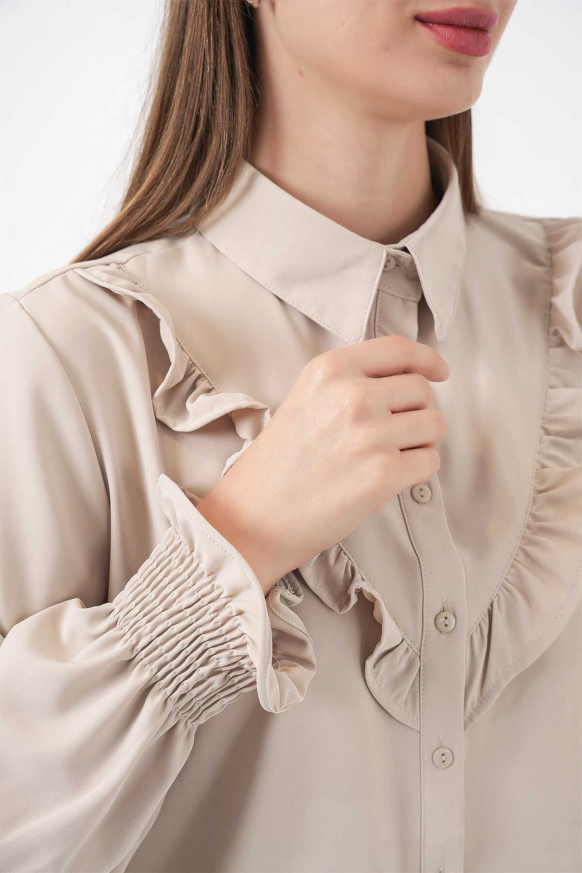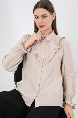 20223 Fırfırlı Uzun Kol Gömlek - Taş