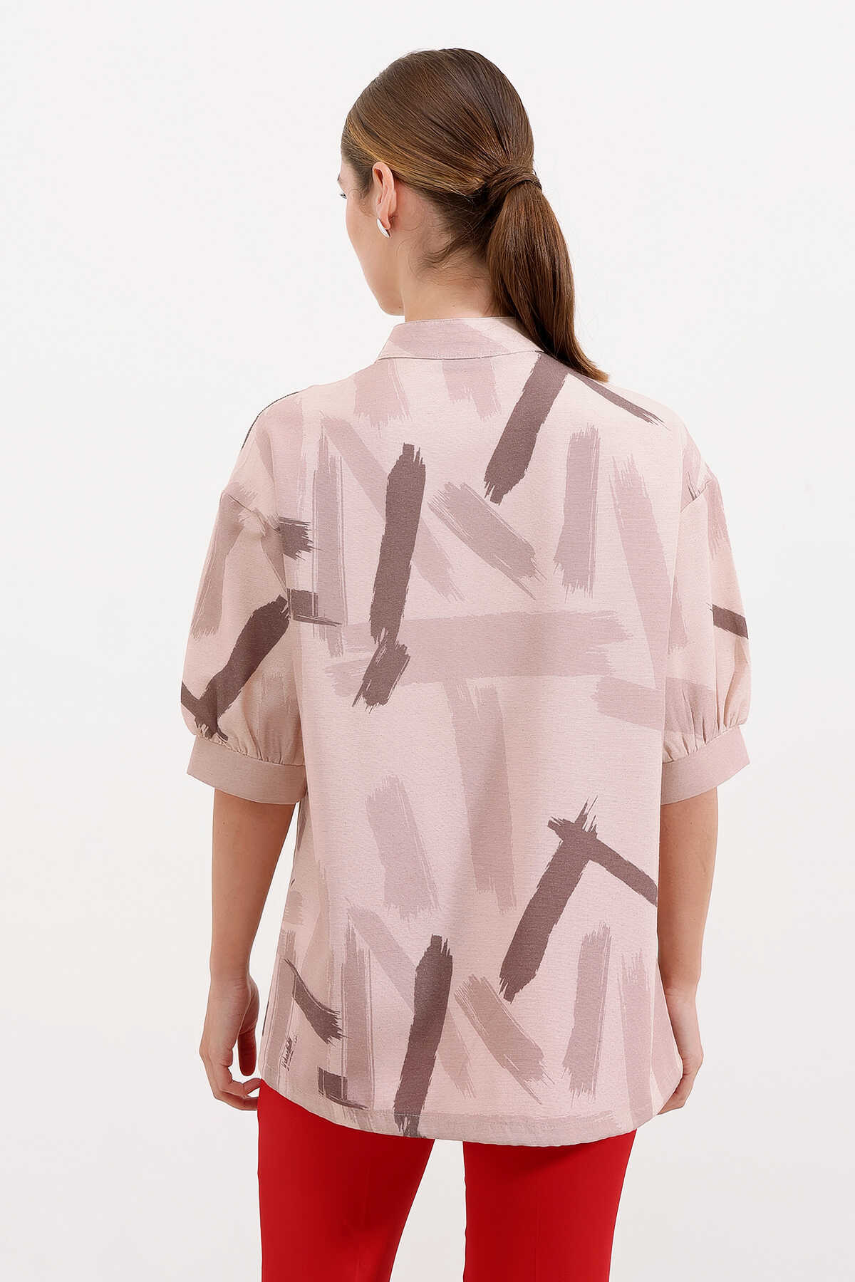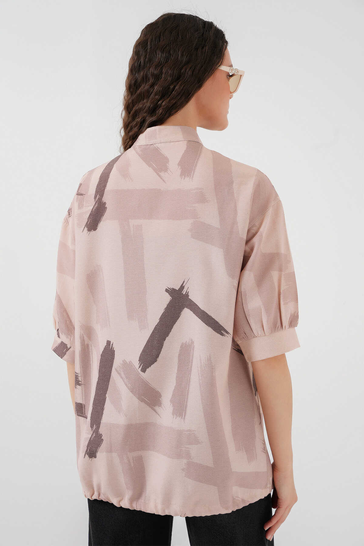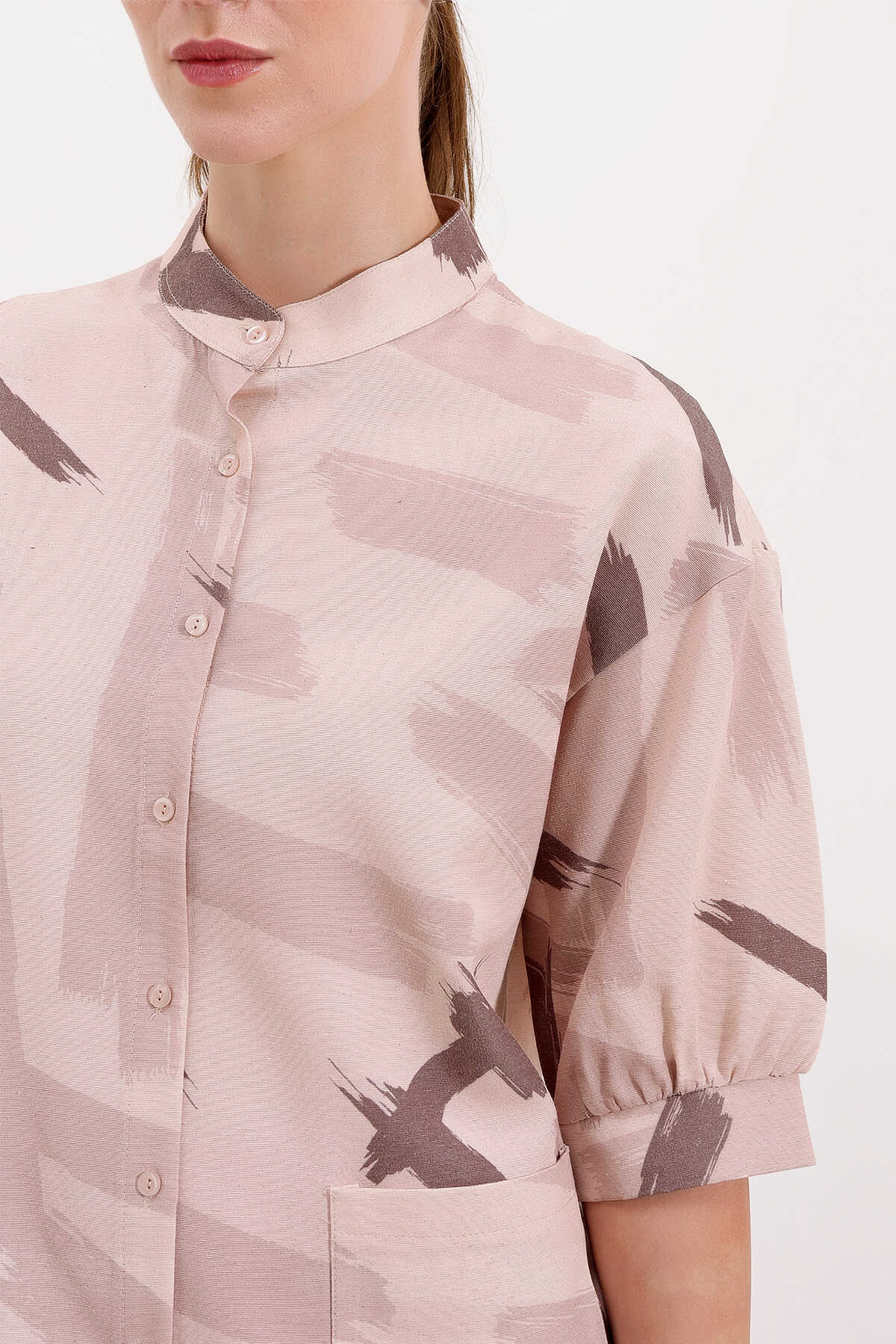 20226 Desenli Oversize Gömlek - Bej - Kombin