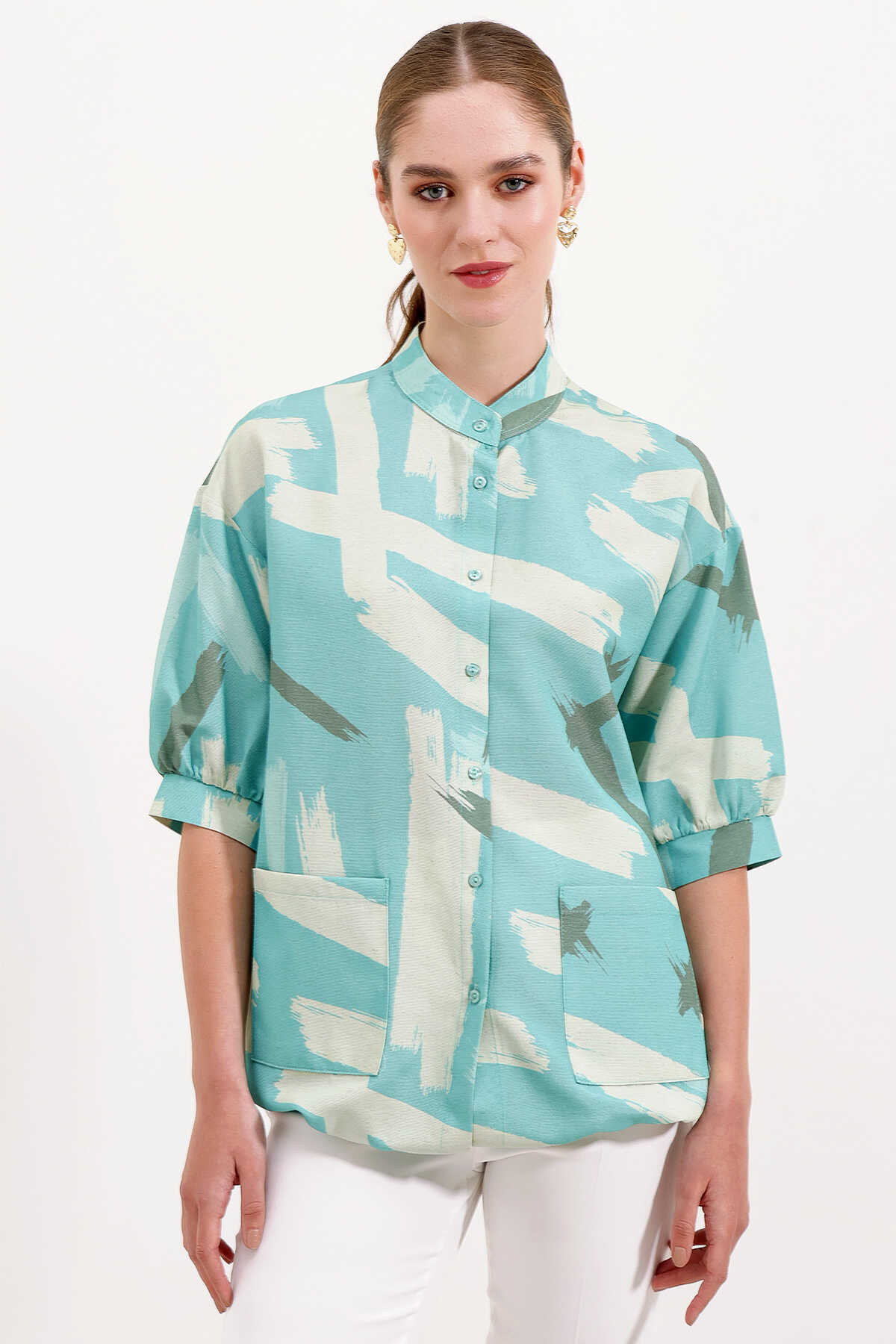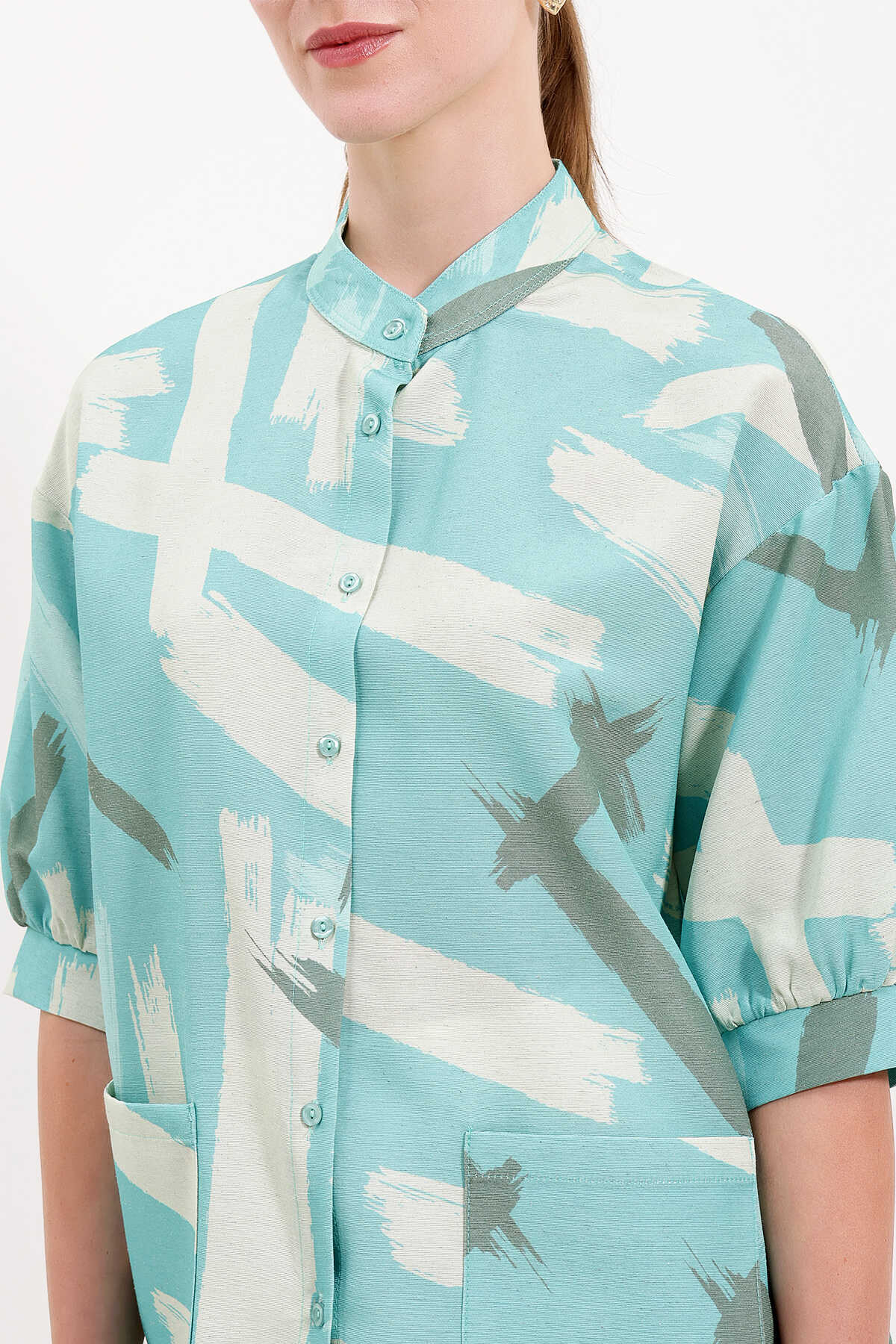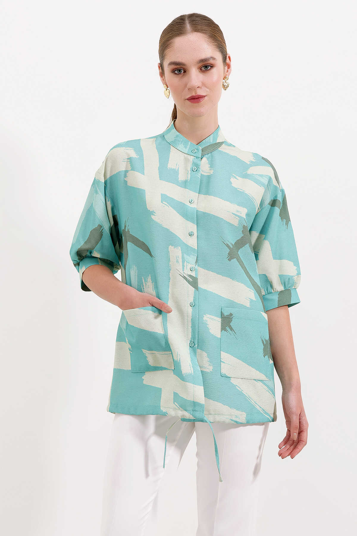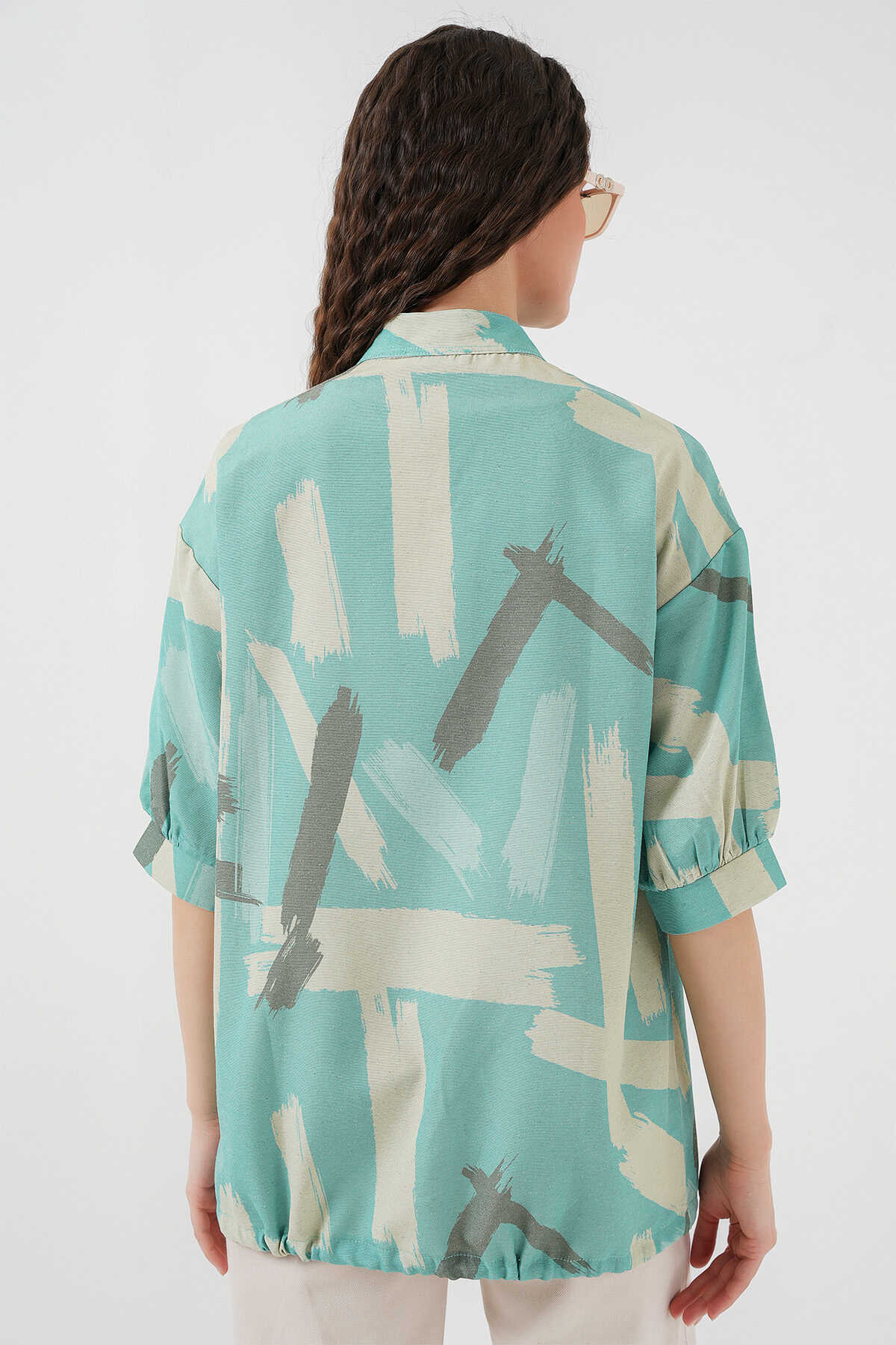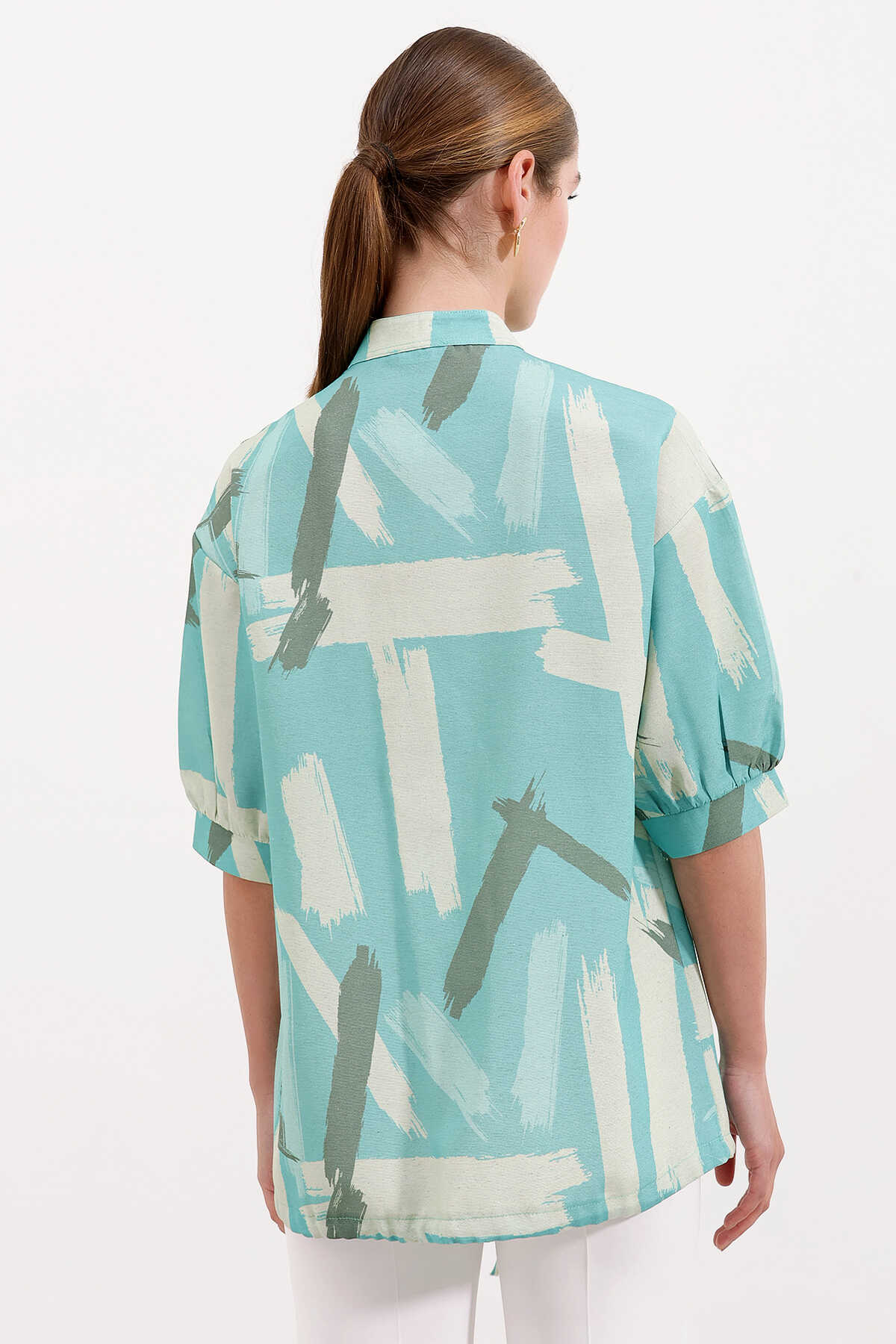 20226 Desenli Oversize Gömlek - Mint - Kombin