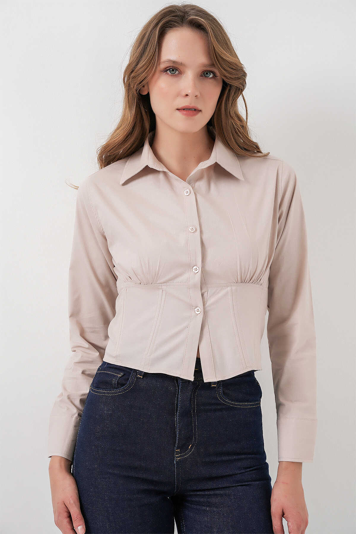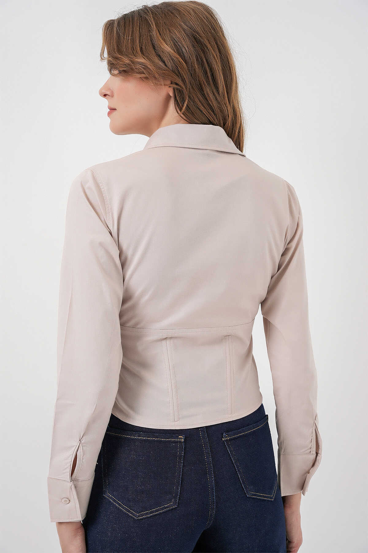 20231 Slim Fit Poplin Gömlek - Krem - Kombin