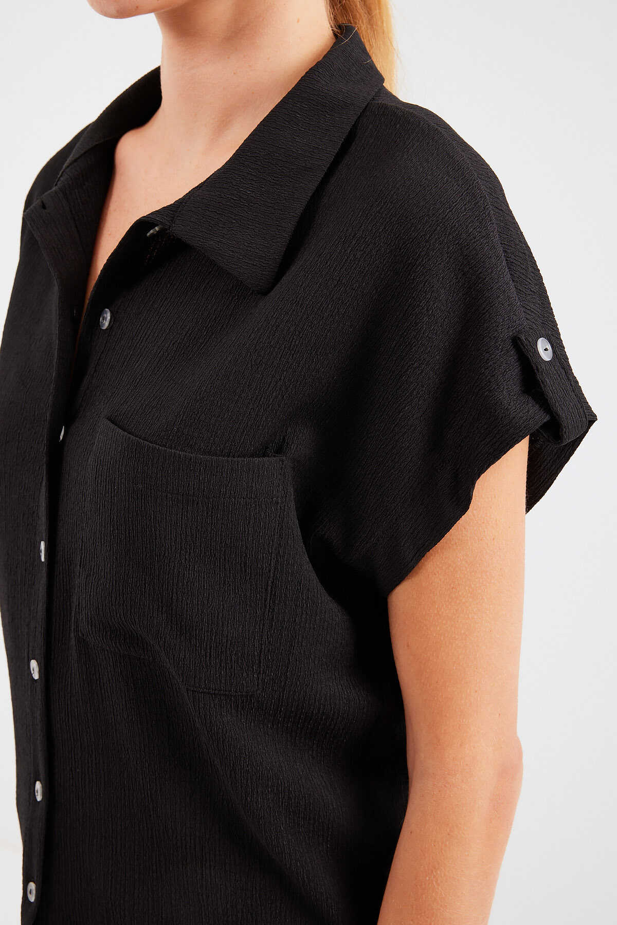 20256 Manşetli Double Kısa Kollu Gömlek - Siyah