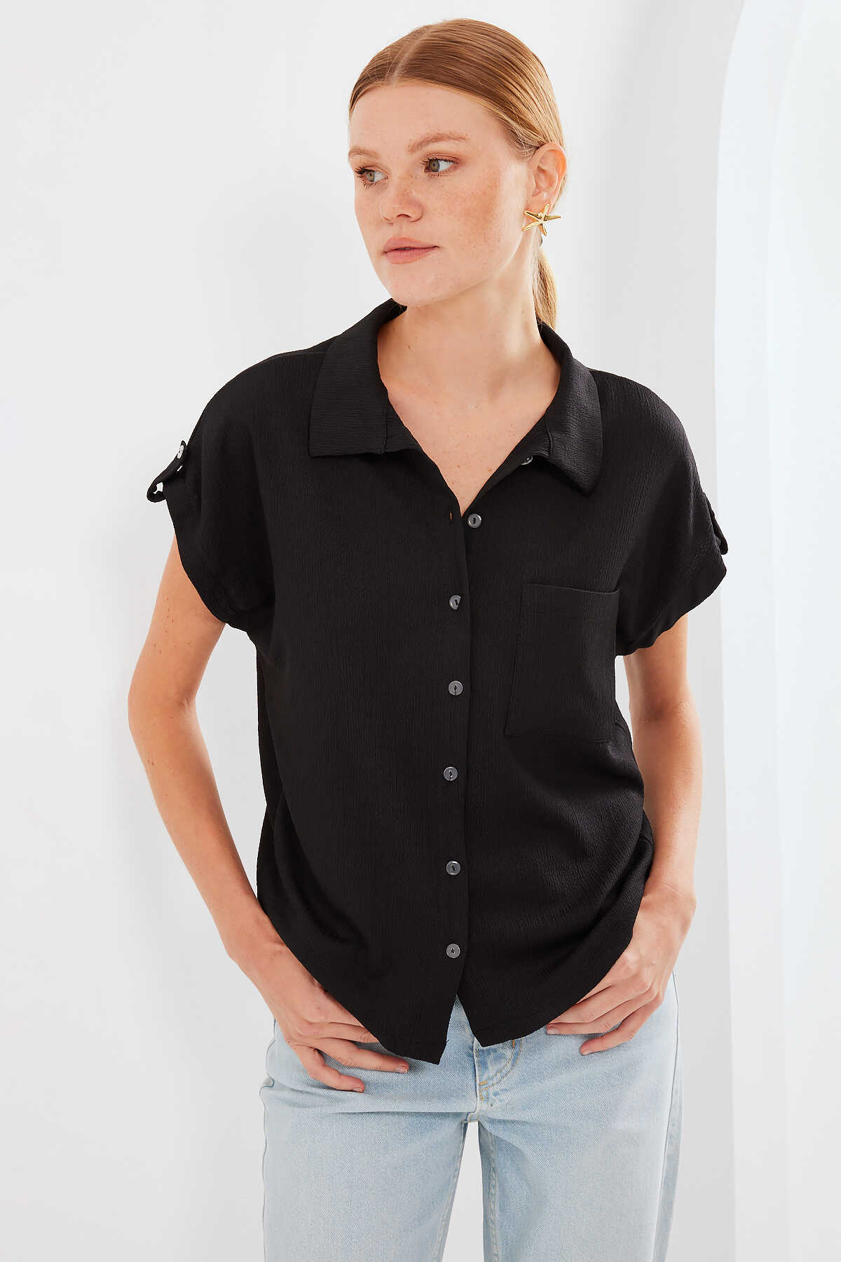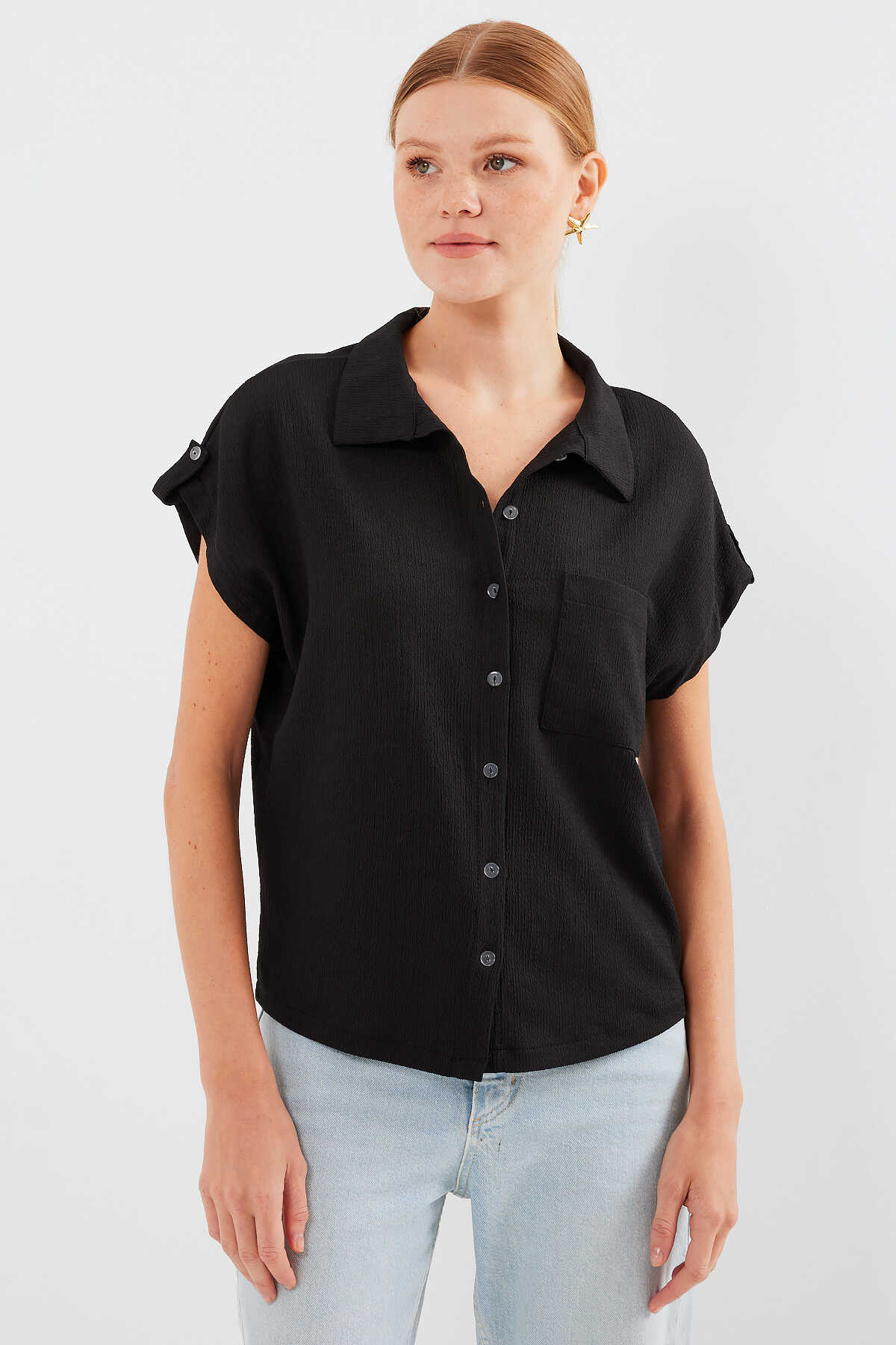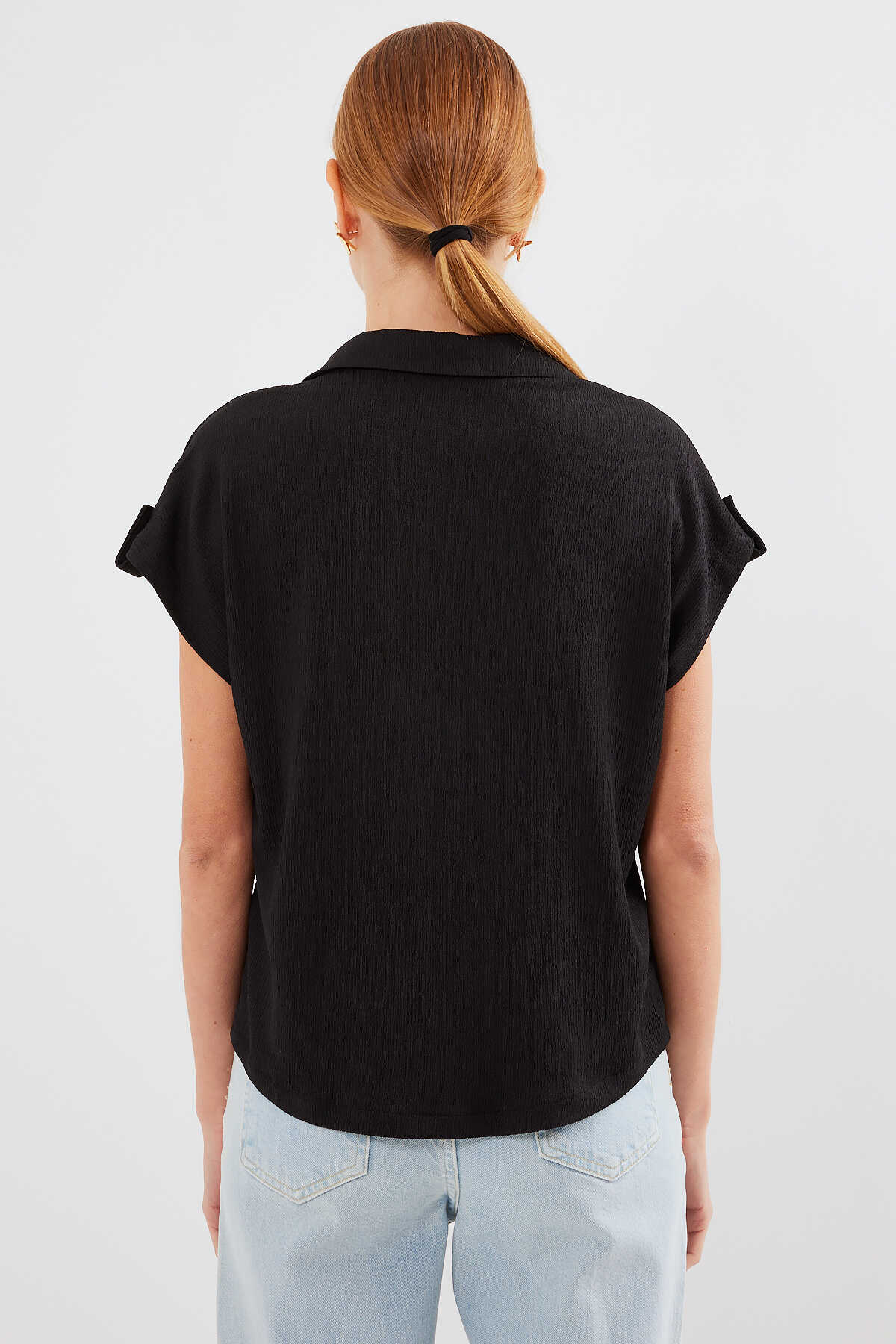 20256 Manşetli Double Kısa Kollu Gömlek - Siyah - Kombin