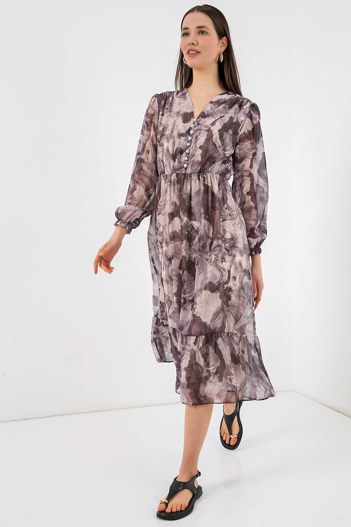 Desenli Sifon Elbise 2137ÜRÜNÜMÜZ MANSETLIDIR.