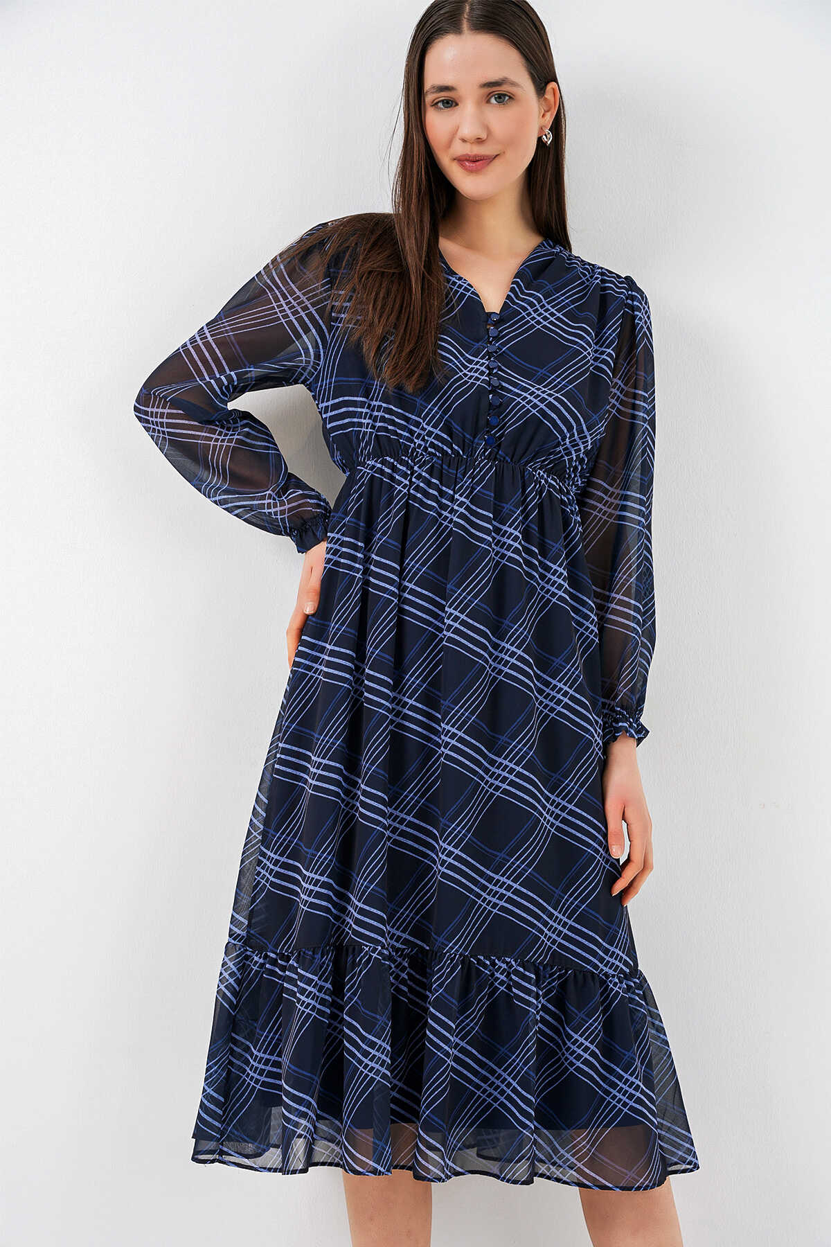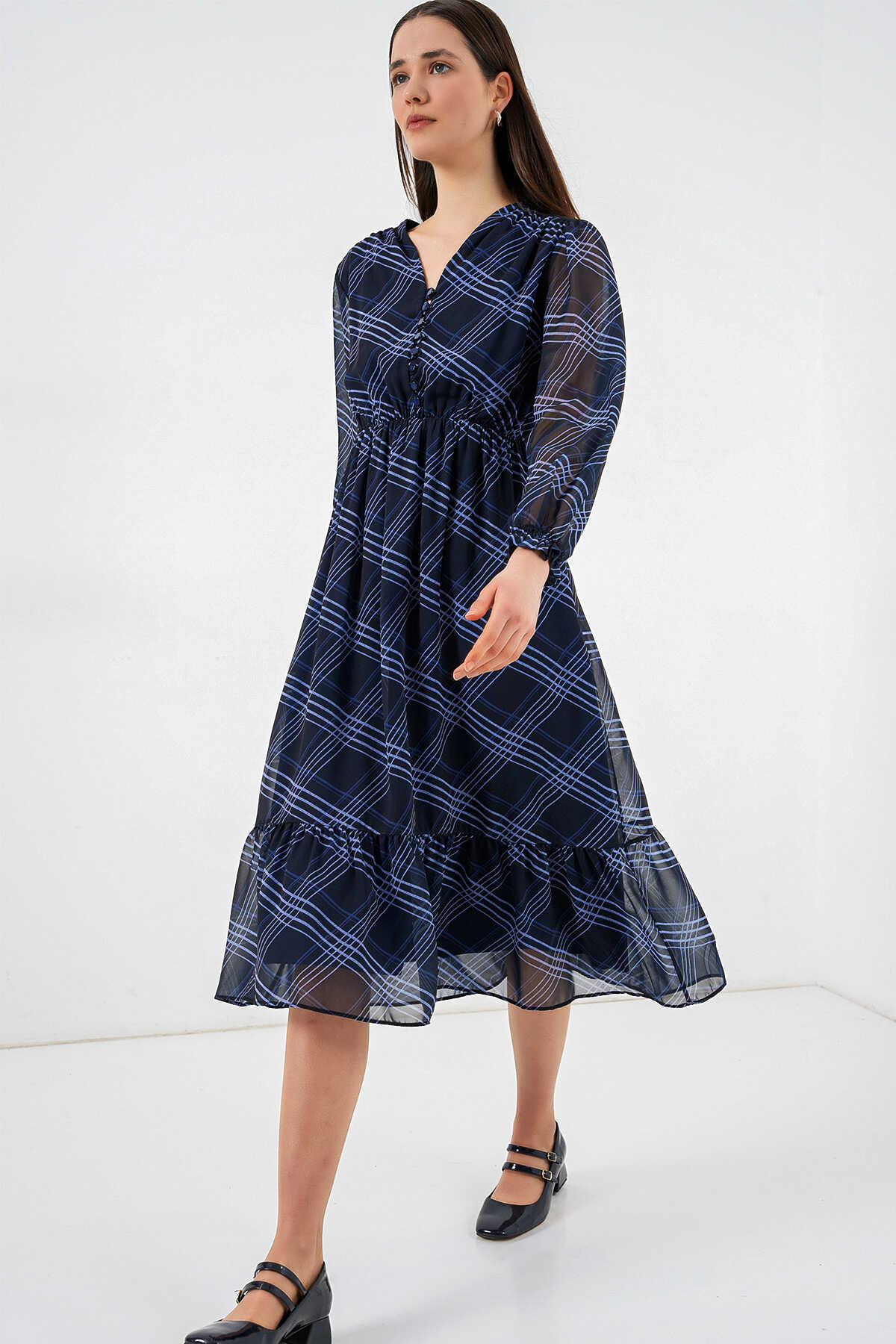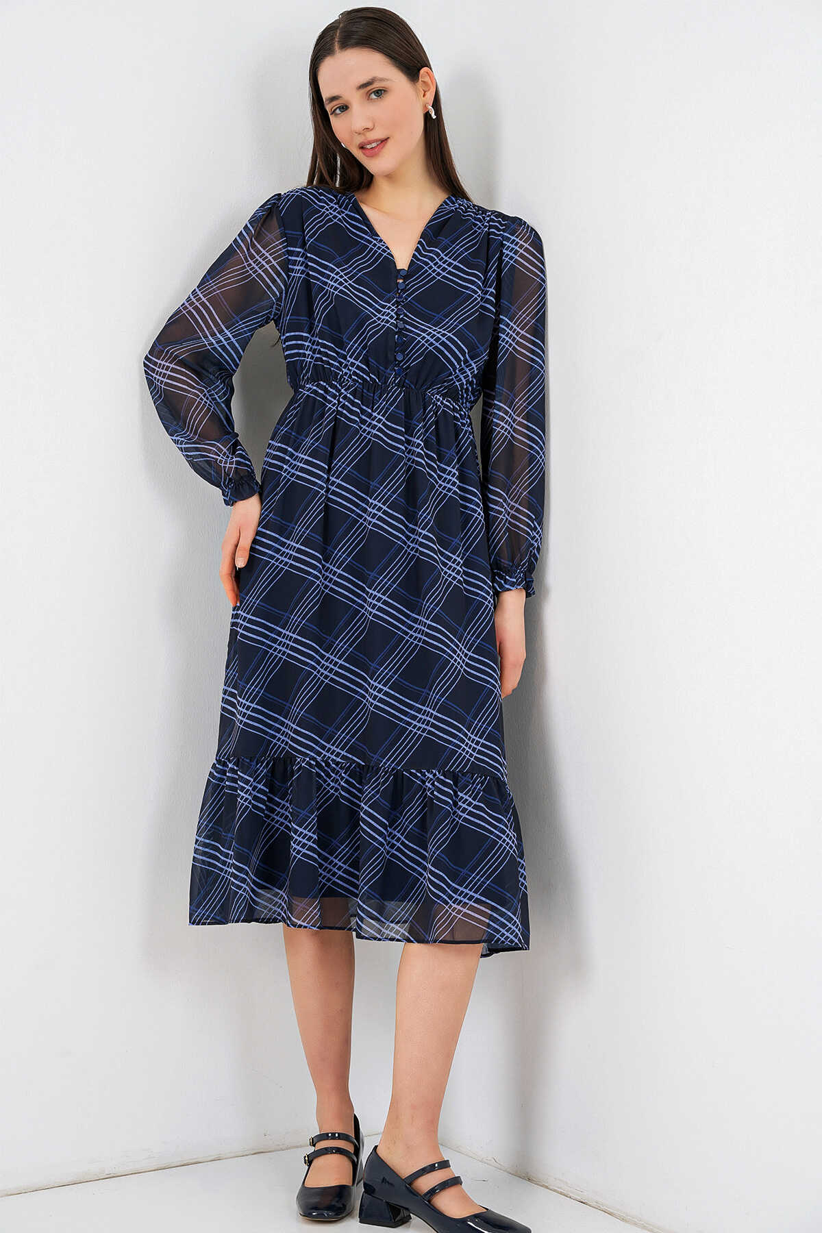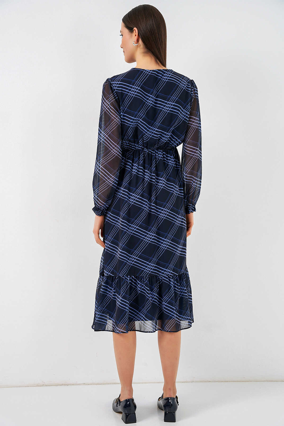 Desenli Sifon Elbise 2137ÜRÜNÜMÜZ MANSETLIDIR.