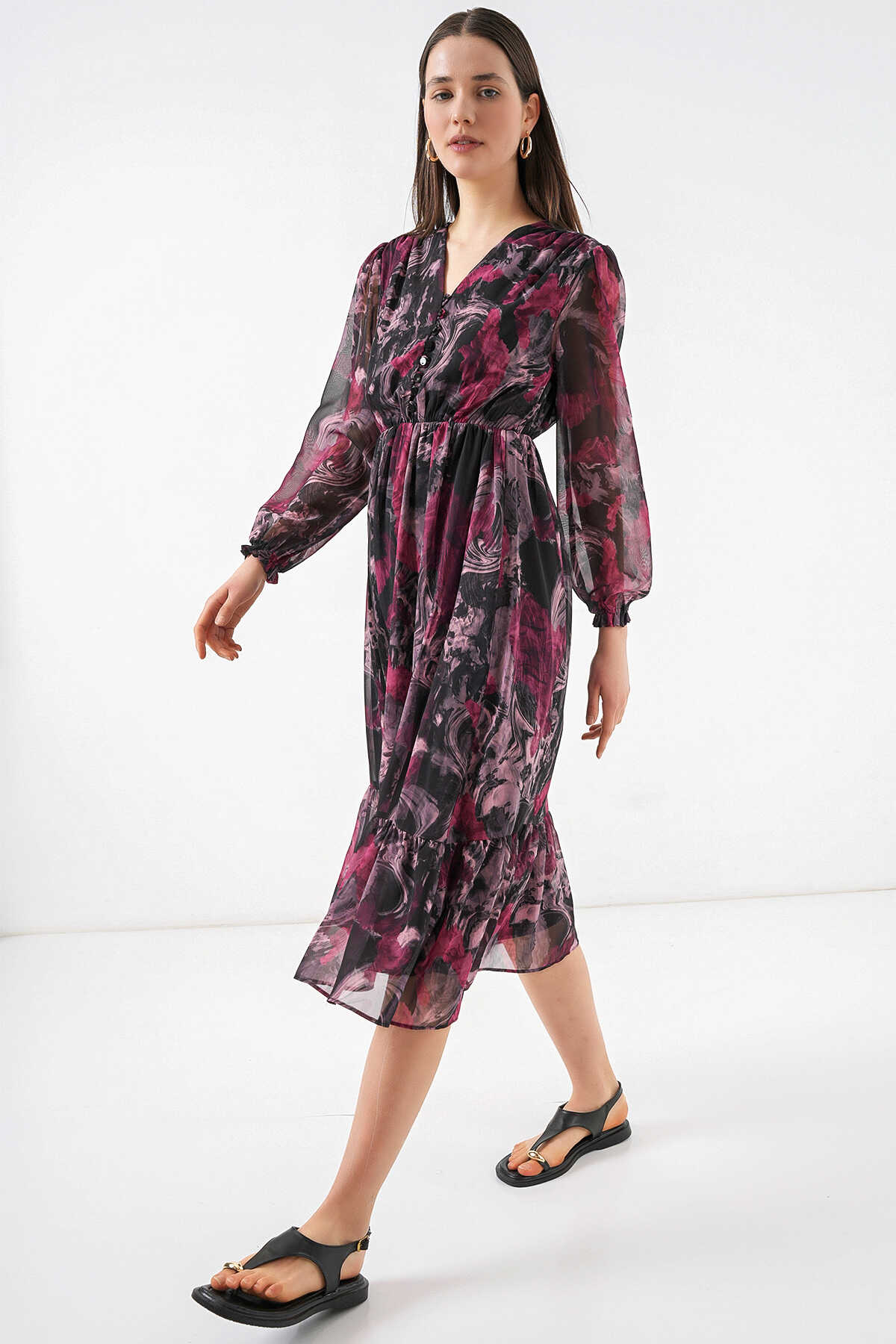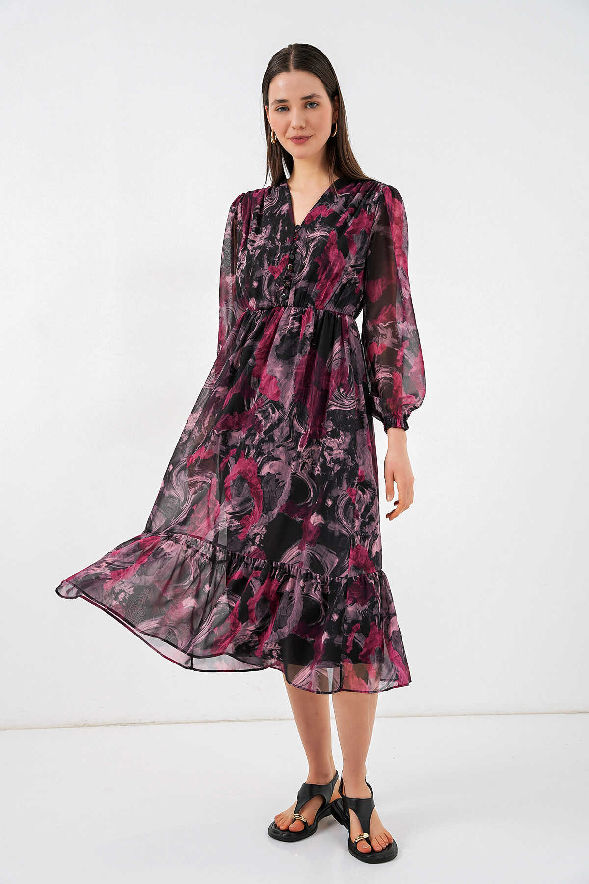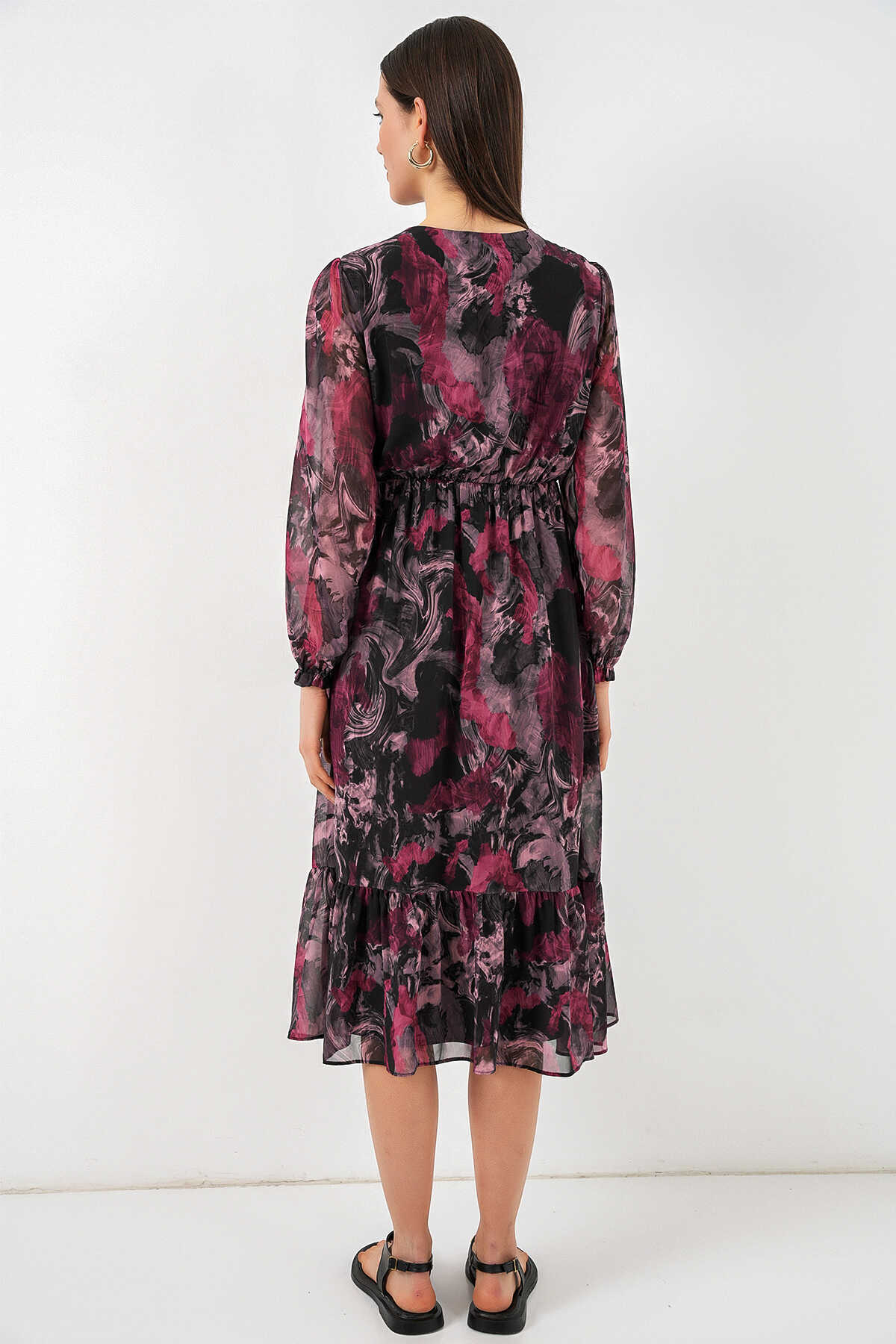 2137 Desenli Şifon Elbise - A.Kırmızı
