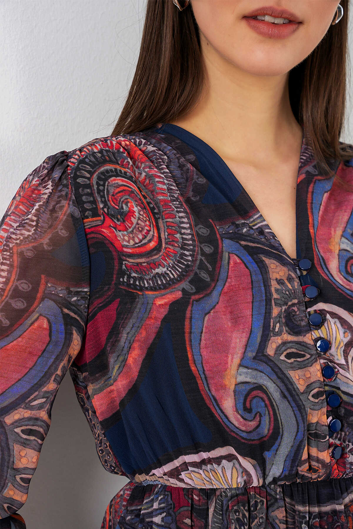 Desenli Sifon Elbise 2137ÜRÜNÜMÜZ MANSETLIDIR.