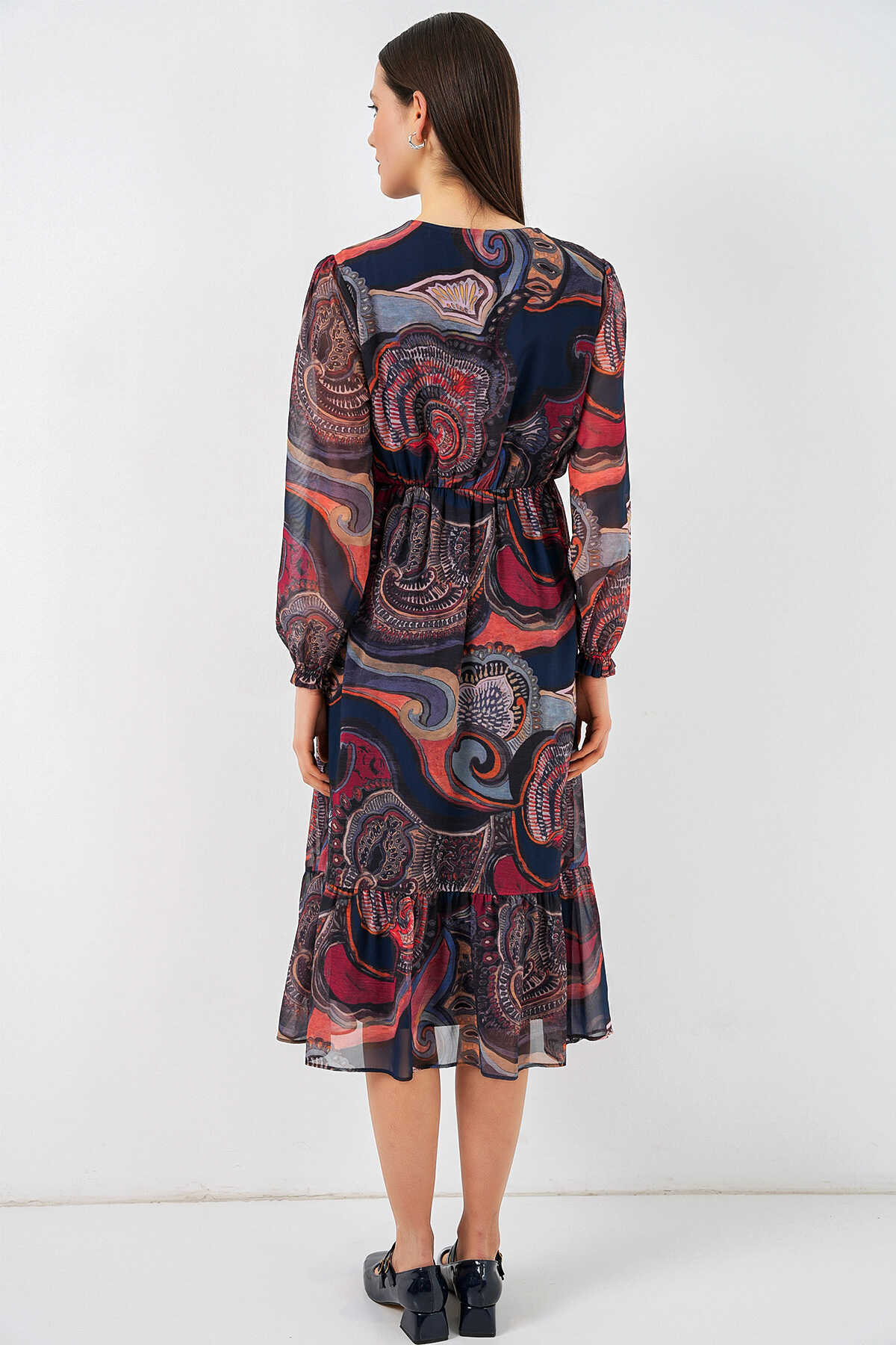 2137 Desenli Şifon Elbise - Çok Renkli