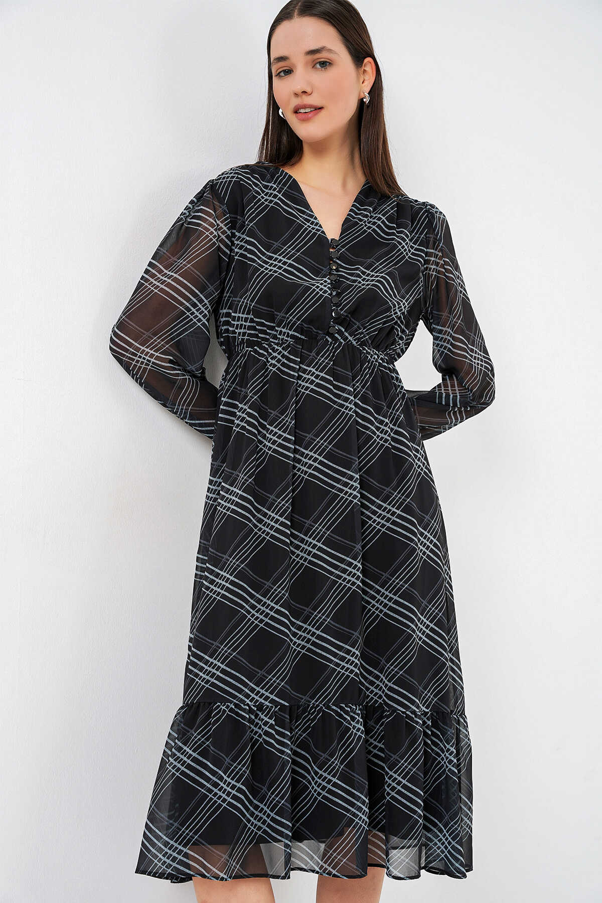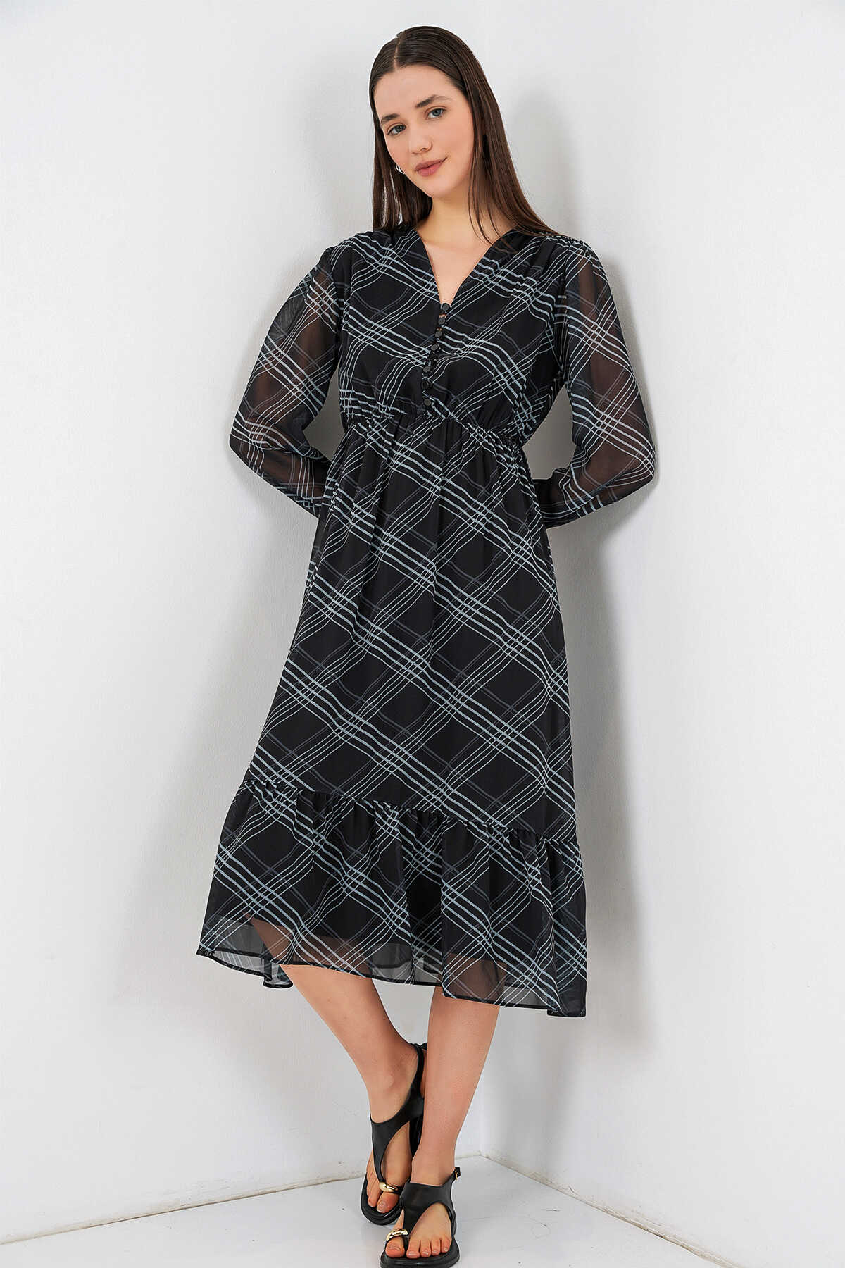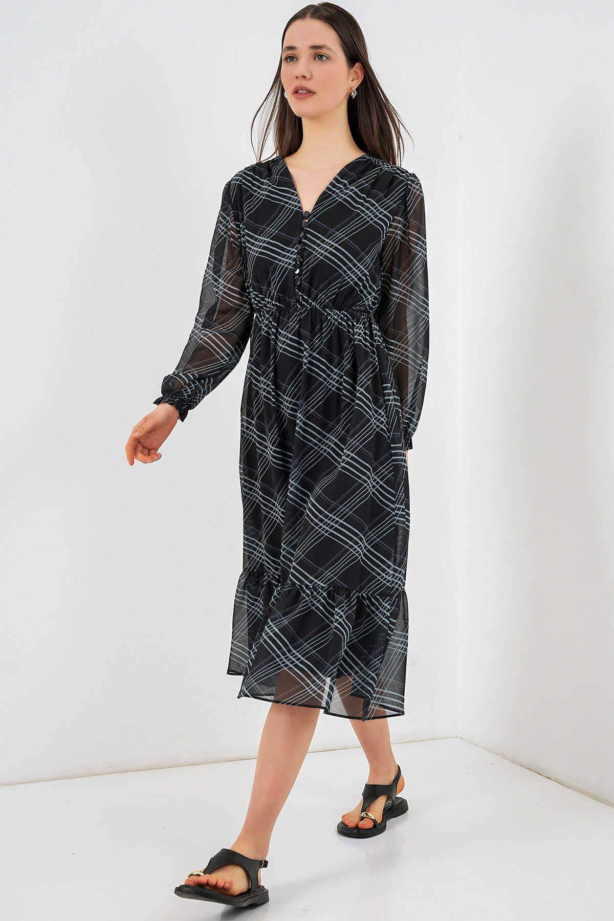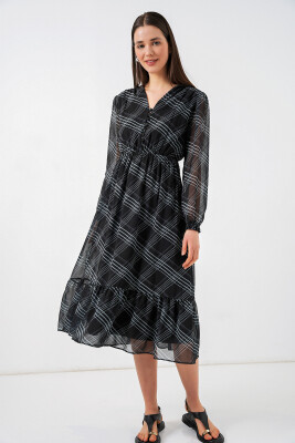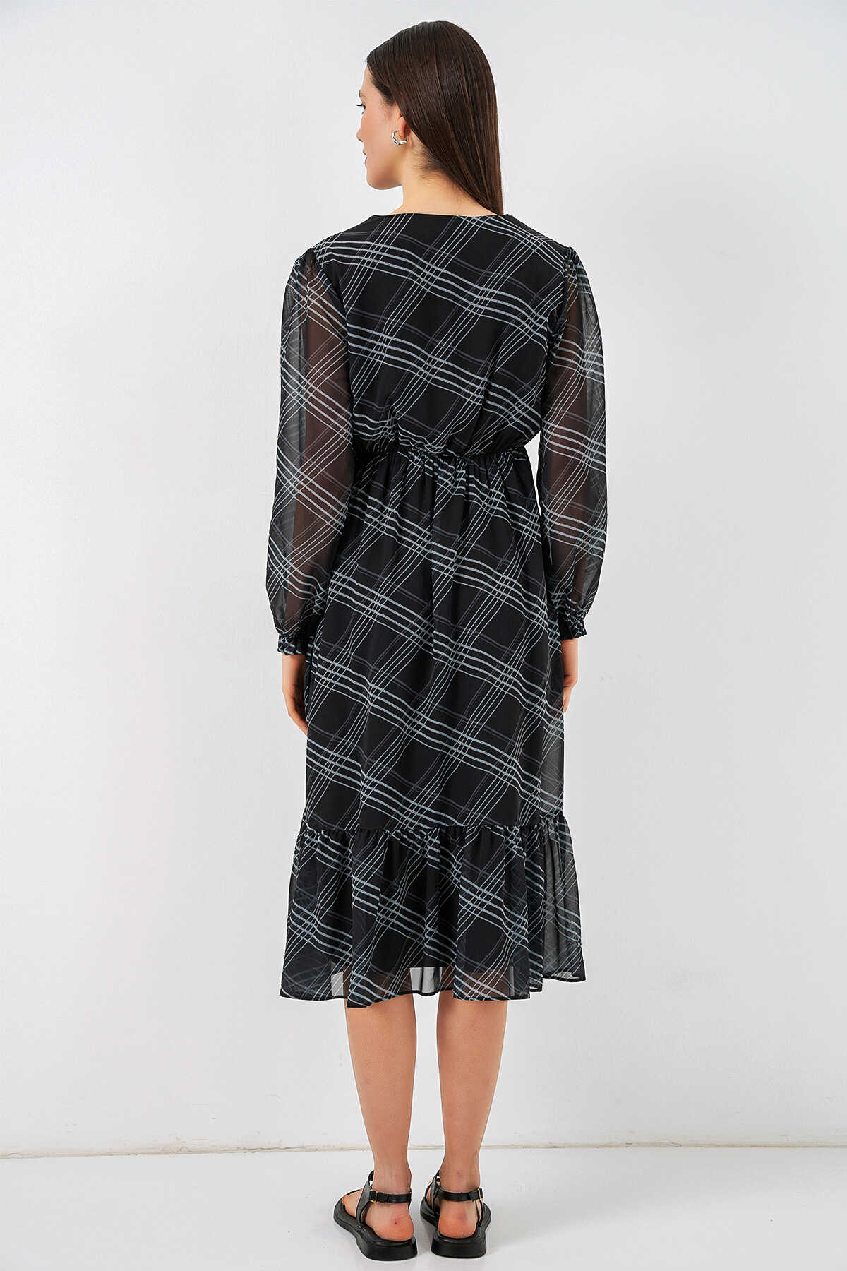 Desenli Sifon Elbise 2137ÜRÜNÜMÜZ MANSETLIDIR.