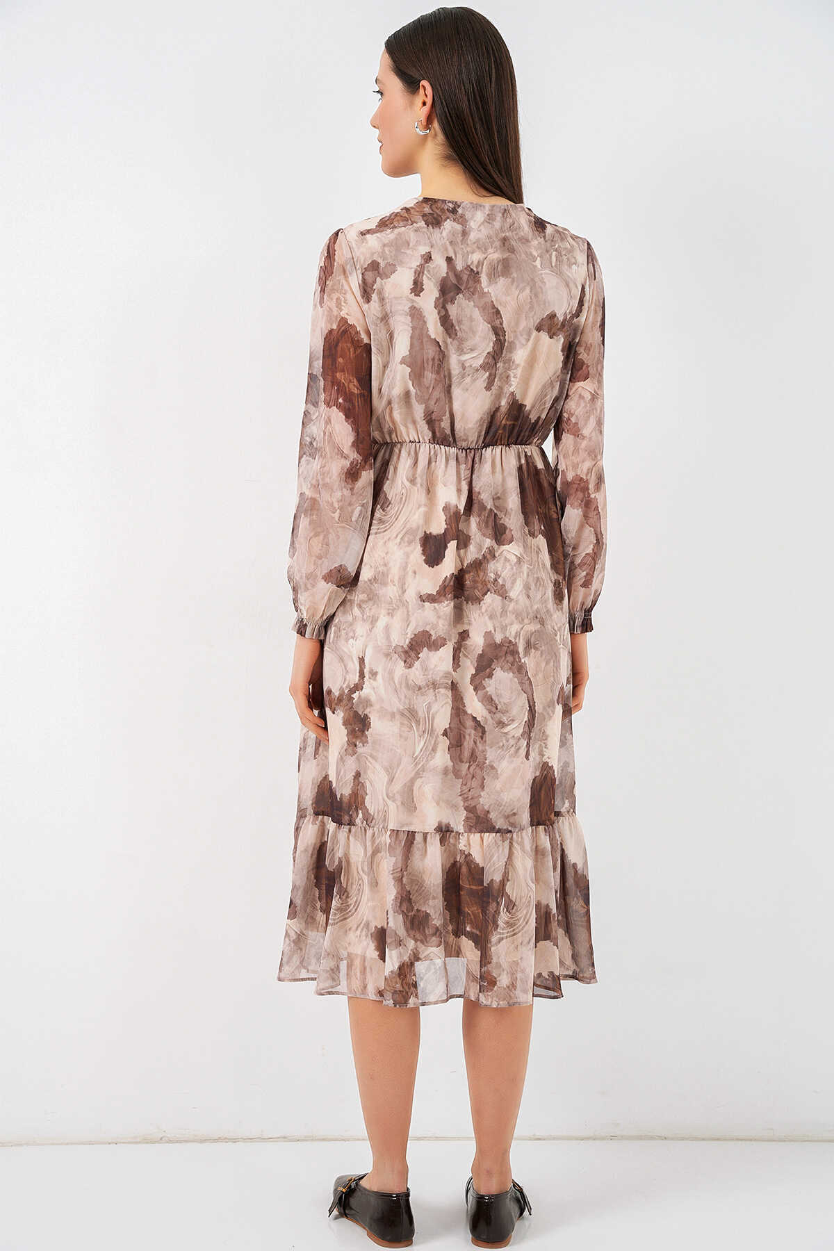 2137 Desenli Şifon Elbise - K. Bej