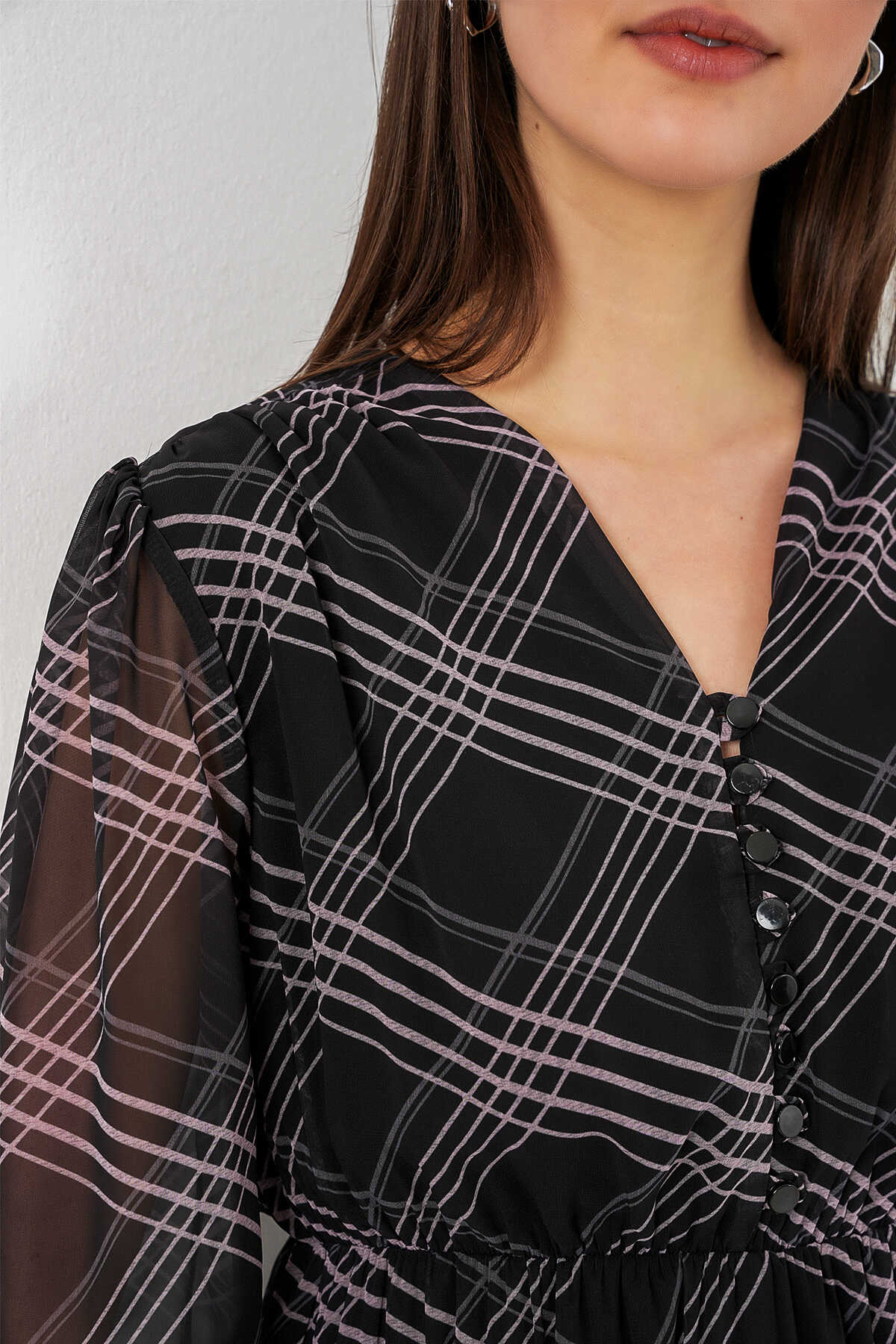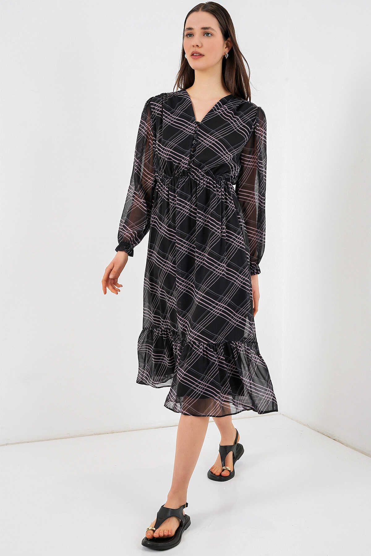 2137 Desenli Şifon Elbise - Siyah1 - Kombin