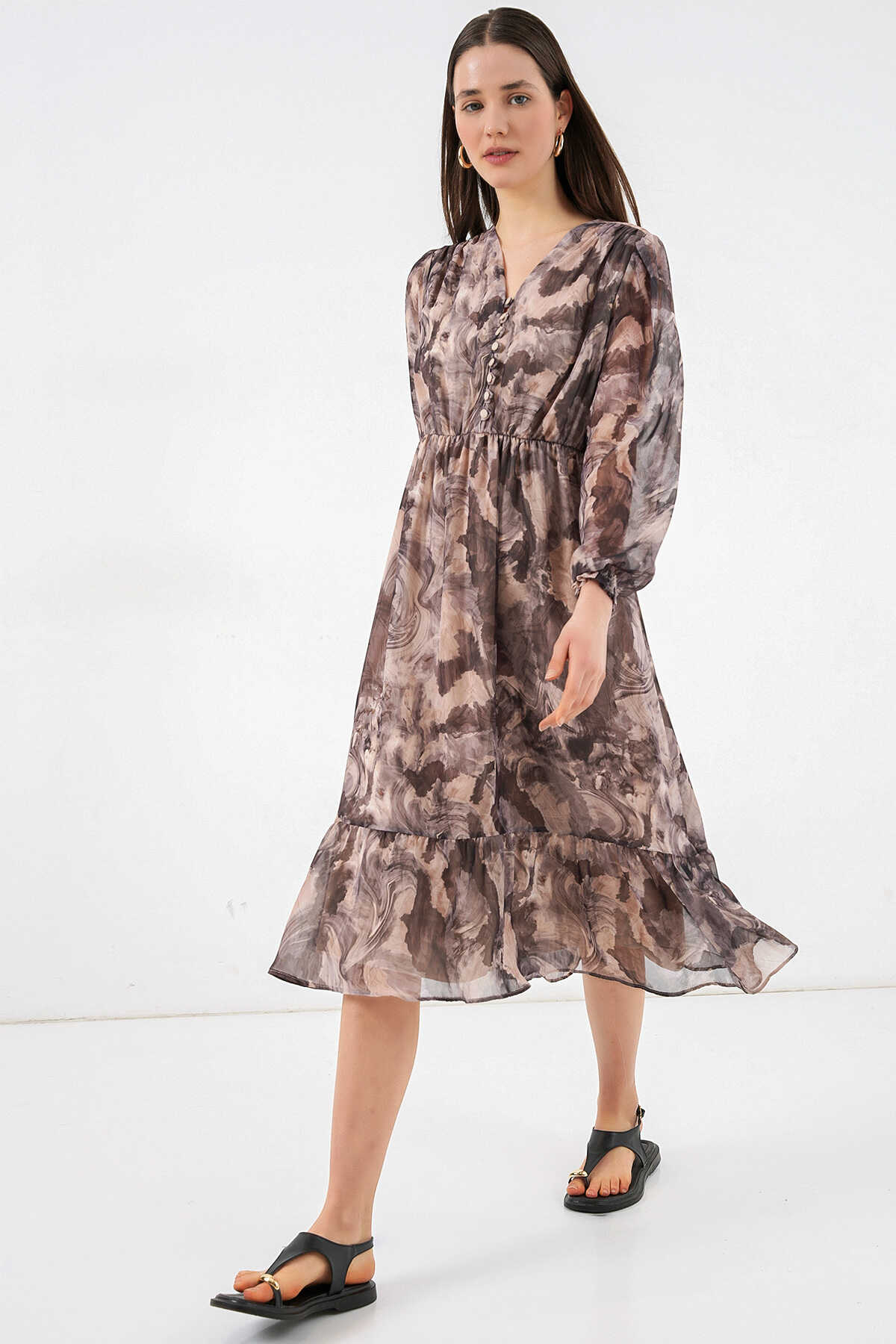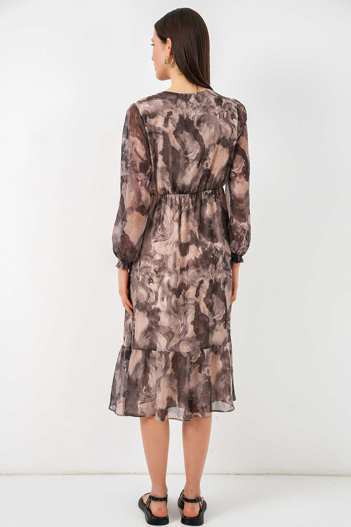 Desenli Sifon Elbise 2137ÜRÜNÜMÜZ MANSETLIDIR.