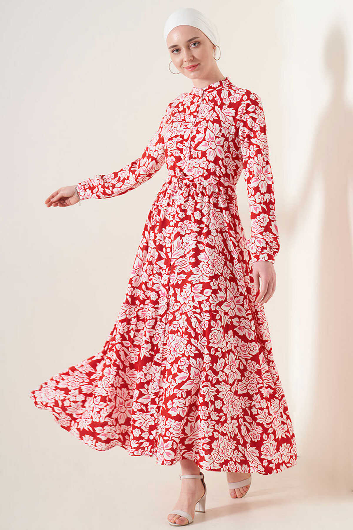 2144 Hakim Yaka Tesettür Elbise - Nar